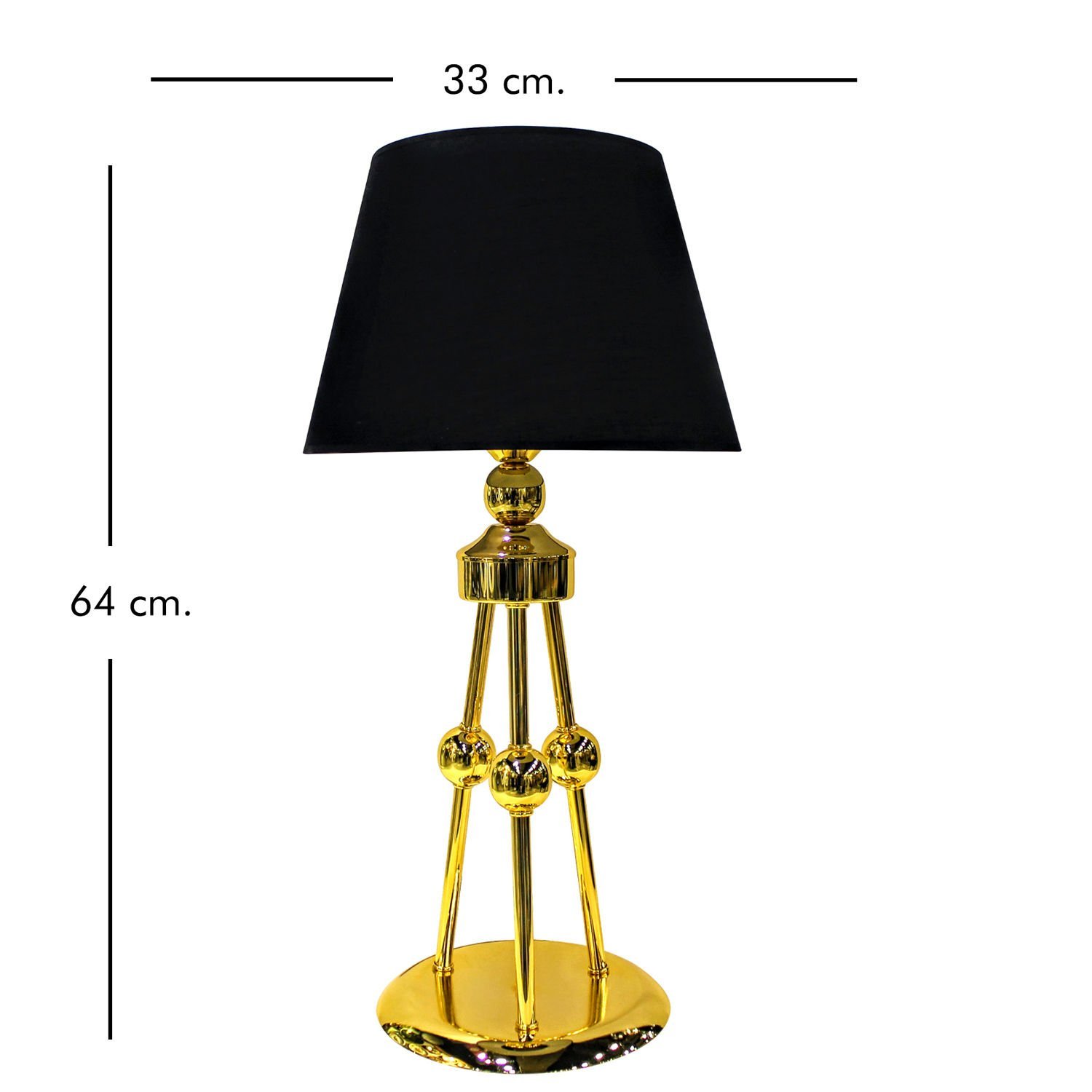 Abajur, Metal Toplu 3 Ayaklı, Altın - Siyah Şapkalı, 33x64 cm