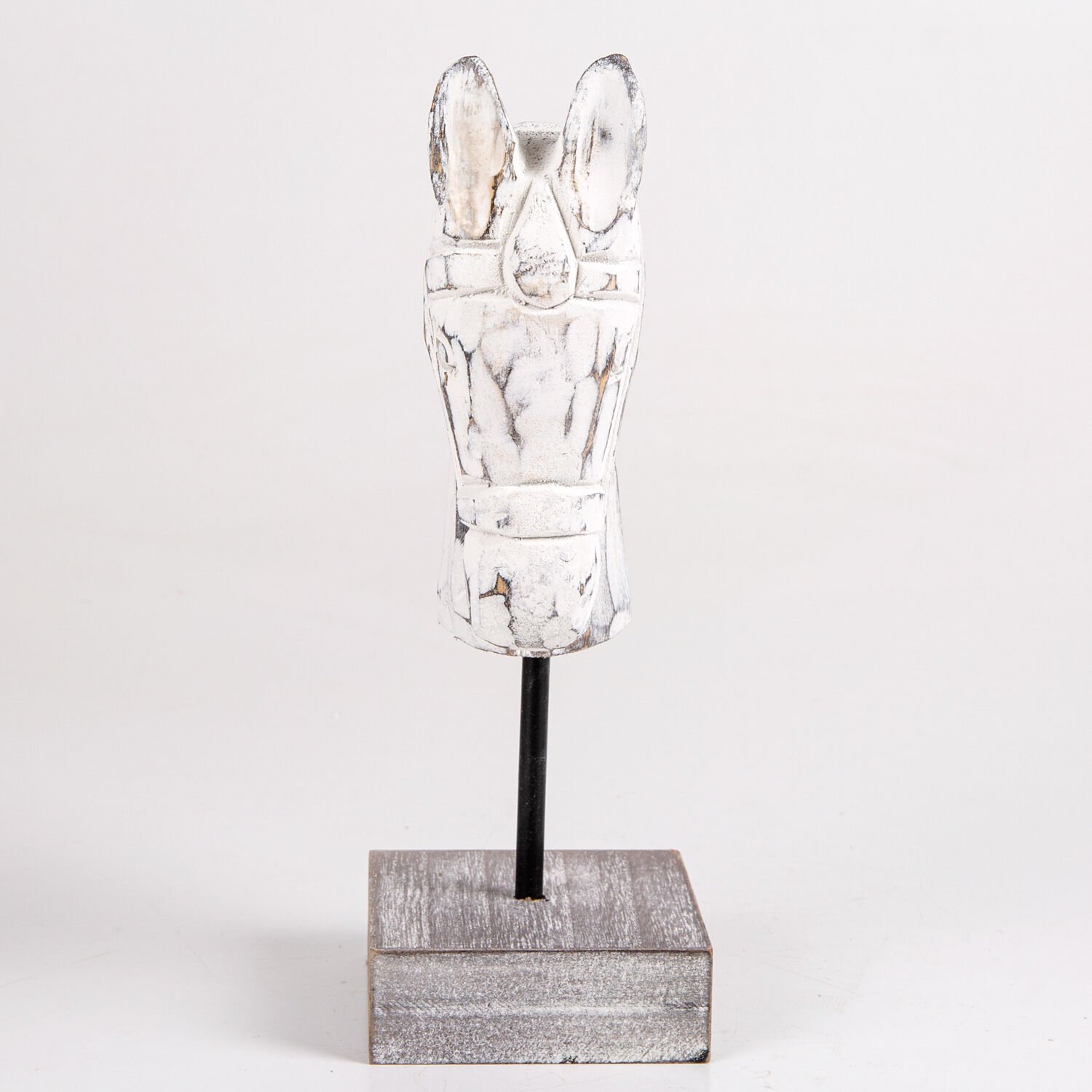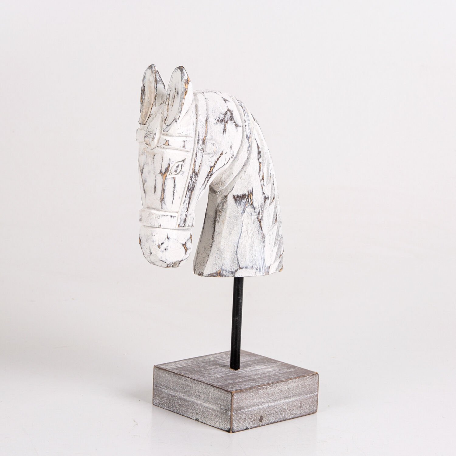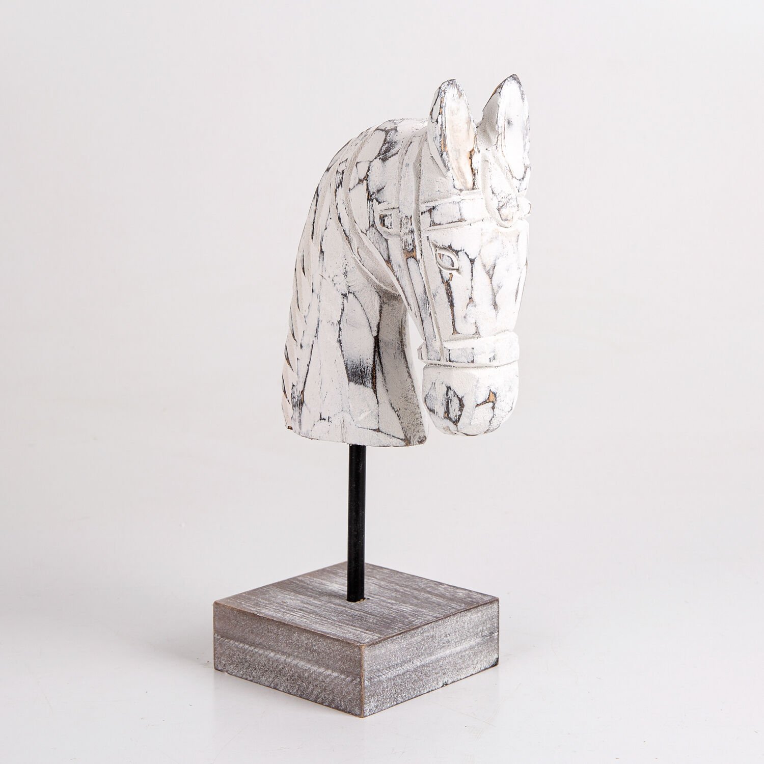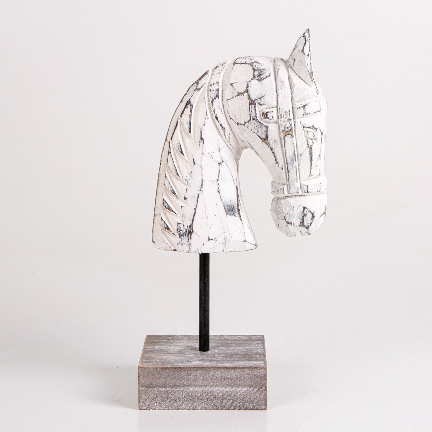 Ahşap Biblo, At Kafası Büstü, Beyaz - 9x27x14 cm