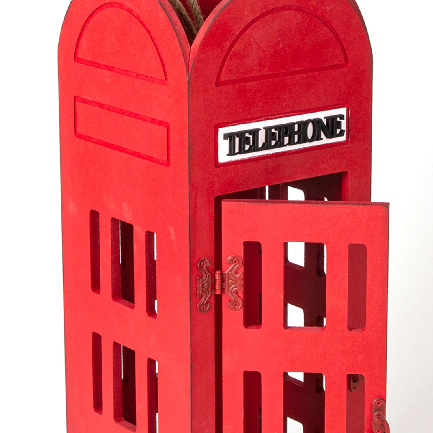 Ahşap Telefon Kulübesi, London, Açılır Kapılı, İpli, Kırmızı - 17x50x17 cm