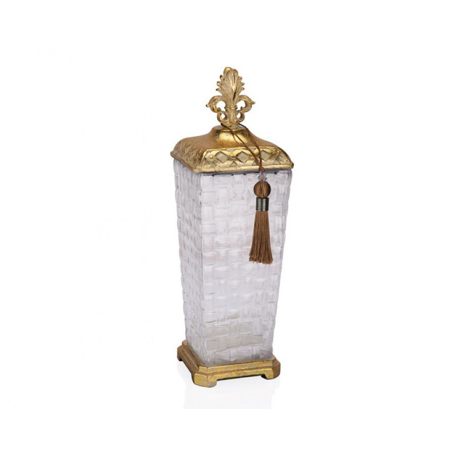 Altın Eskitme Cam Kare Dekoratif Kavanoz 13*13*40