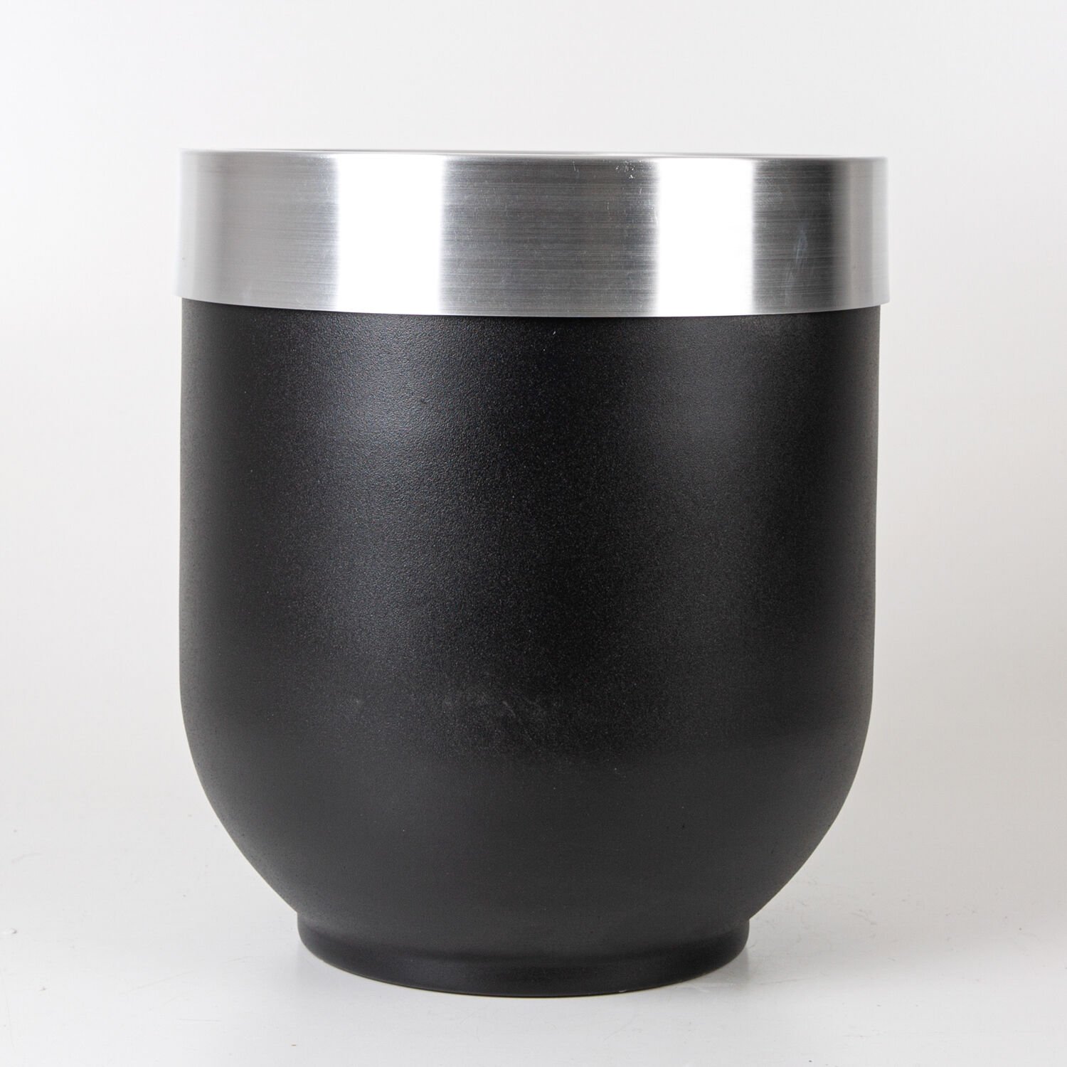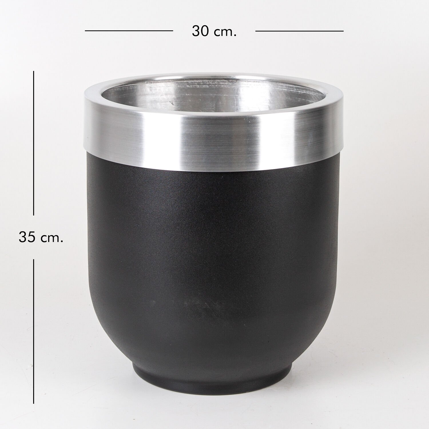 Alüminyum Çemberli Davul Saksı Siyah-Gümüş 30X35 Cm.