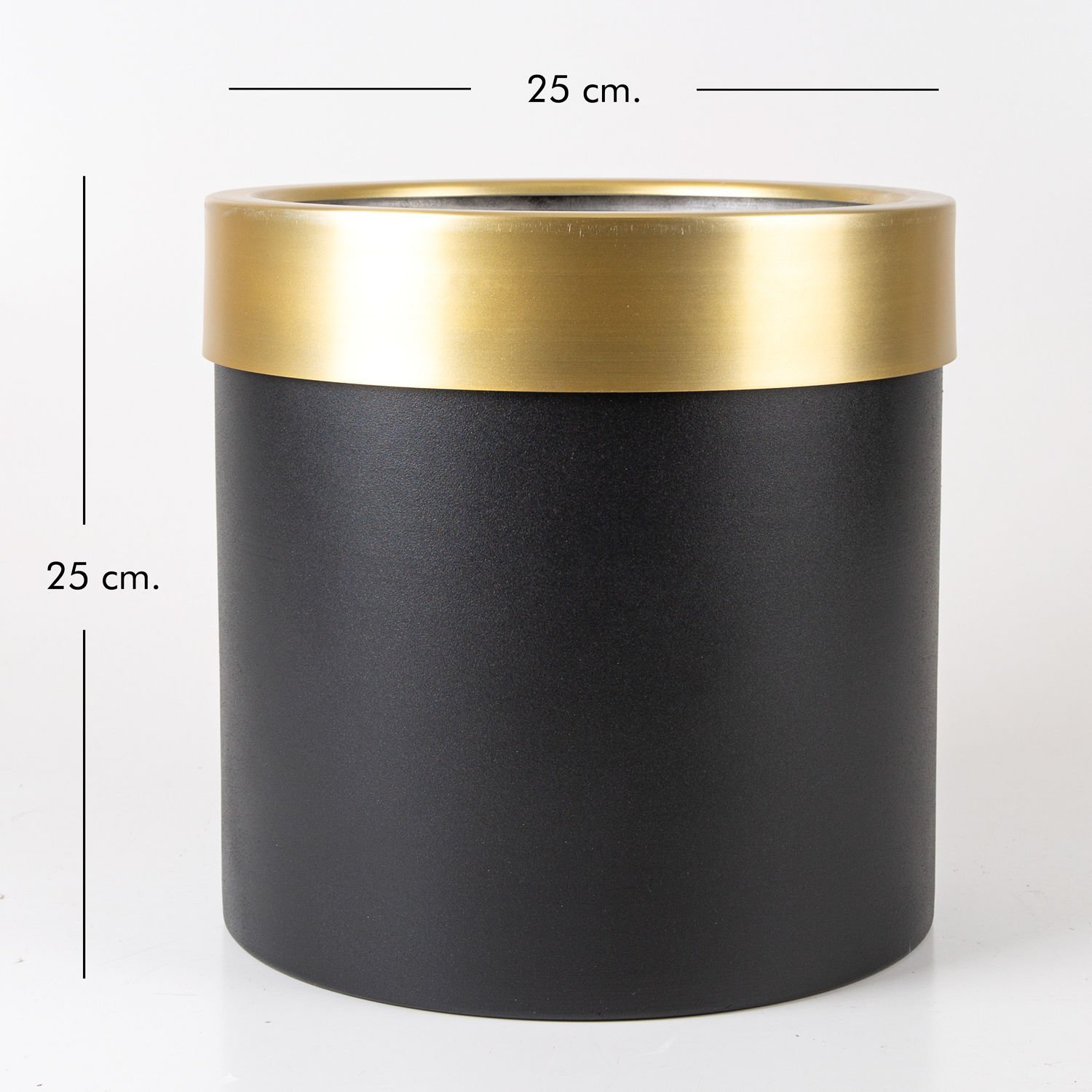 Alüminyum Saksı, Silindir, Çemberli, Siyah-Gold - 25x25 cm