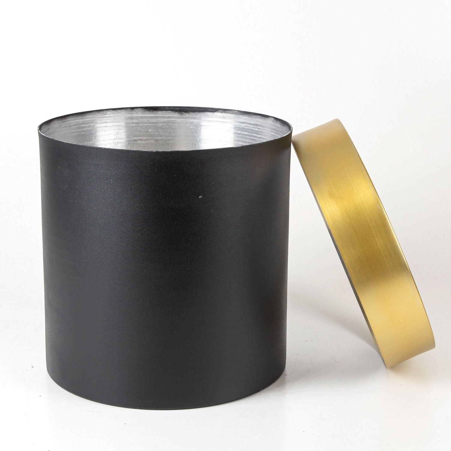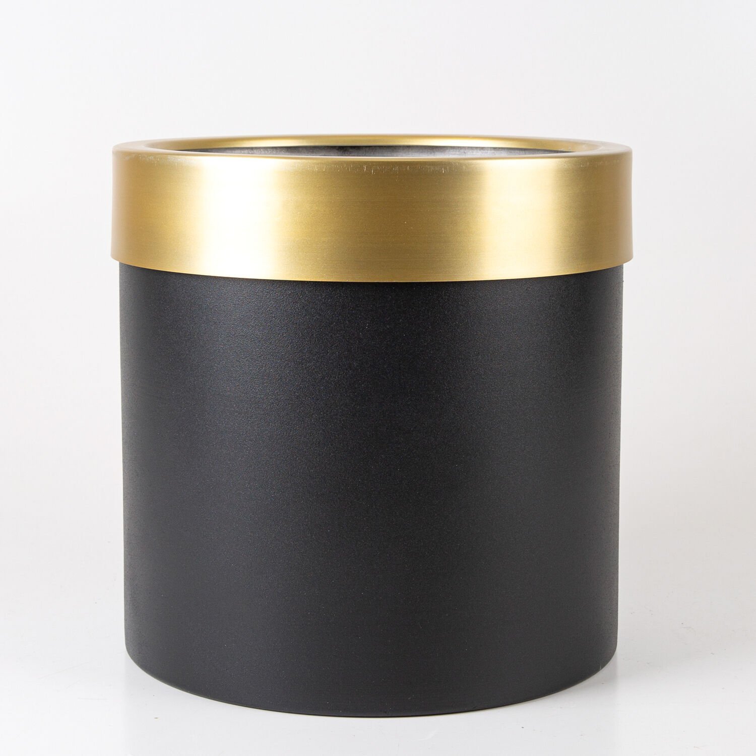 Alüminyum Saksı, Silindir, Çemberli, Siyah-Gold - 30x30 cm