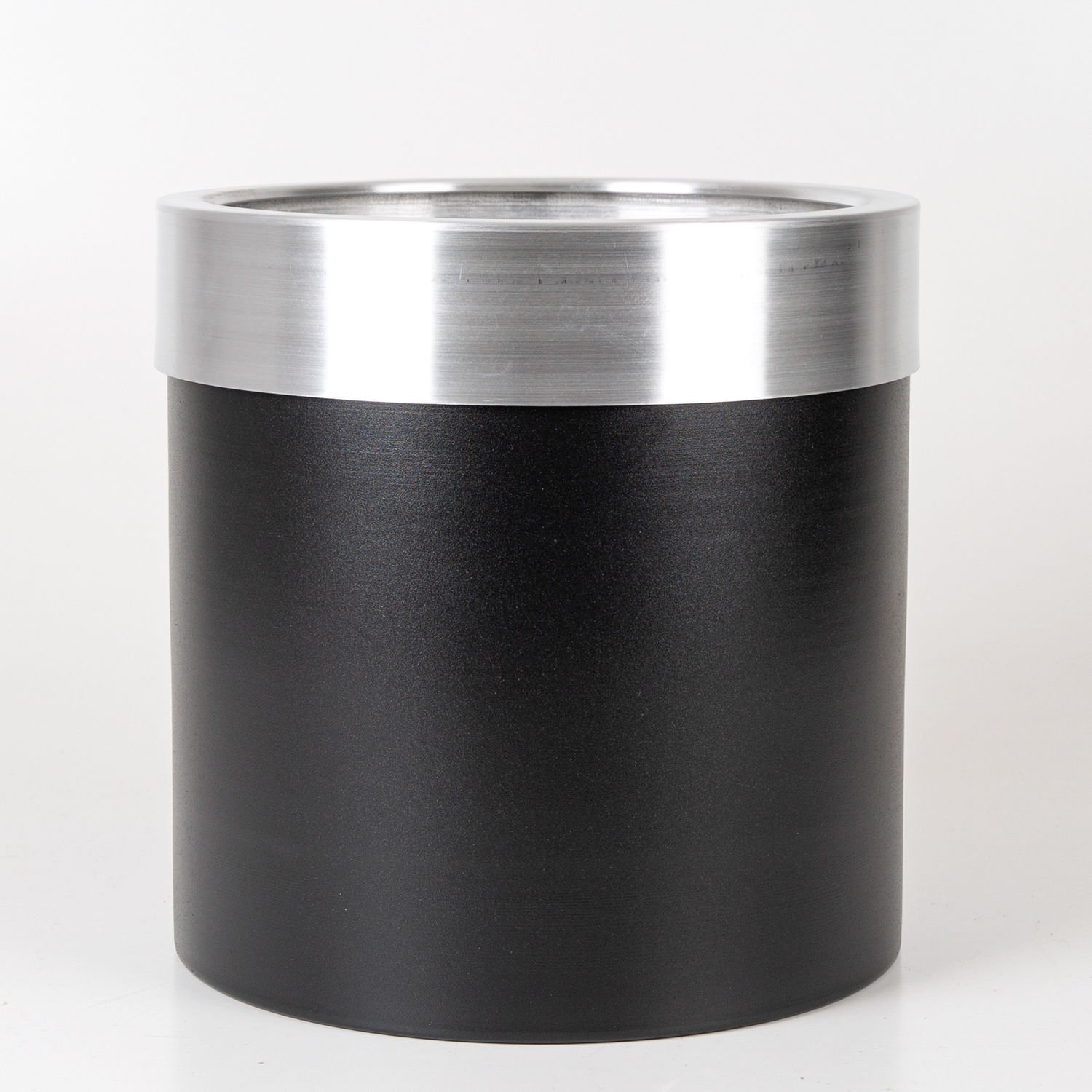 Silindir Alüminyum Saksı Çemberli Siyah-Gümüş 25X25 Cm.
