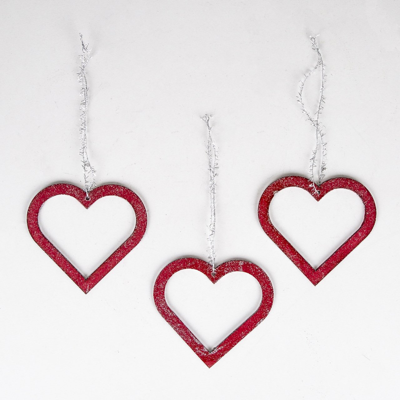 Askılı Ahşap 3 Lü Kırmızı Yılbaşı Süsü Kalp 11 Cm