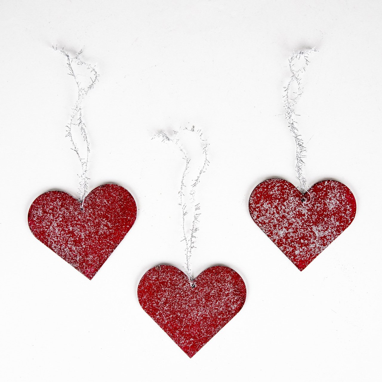 Askılı Ahşap 3 Lü Yılbaşı Süsü Kırmızı Kalp 9 Cm