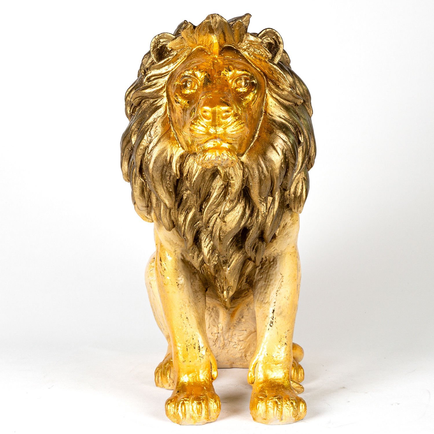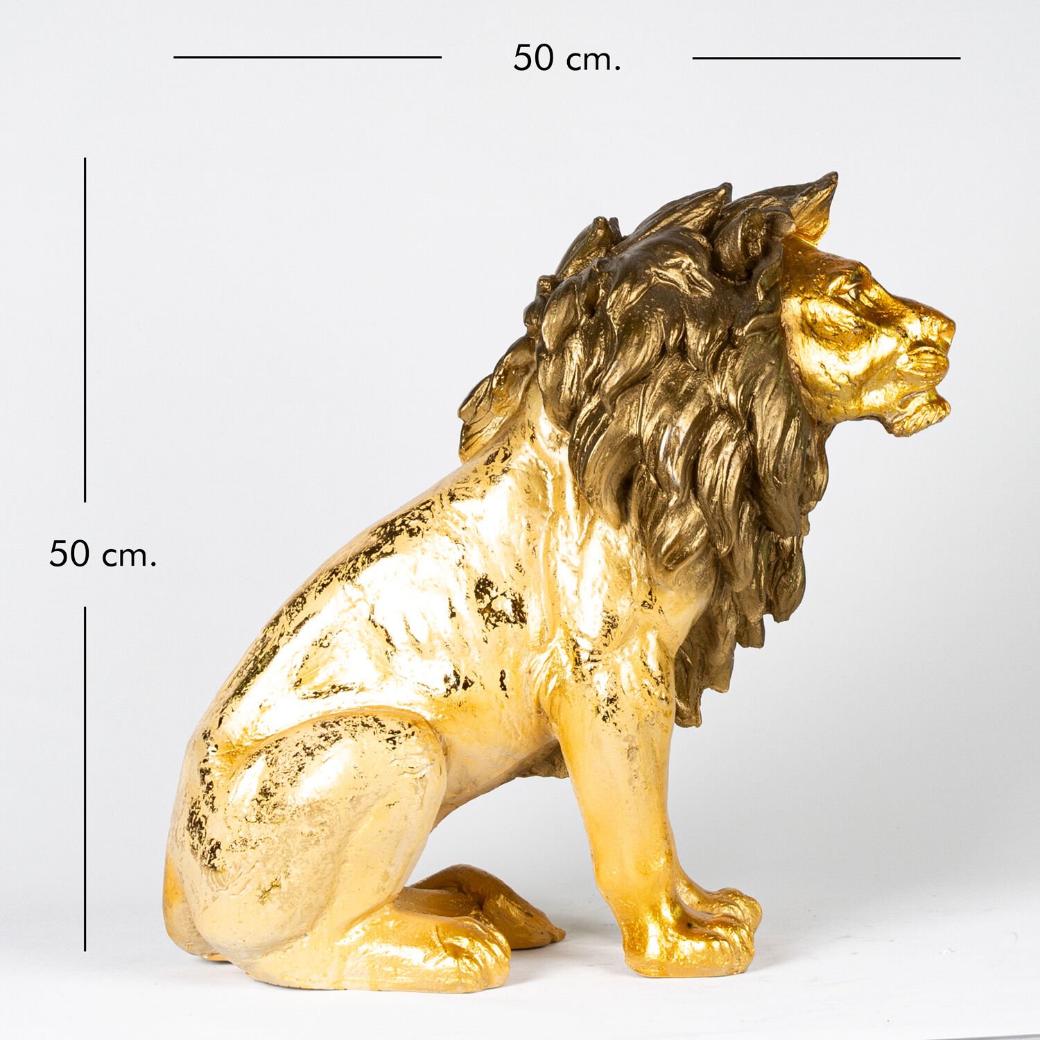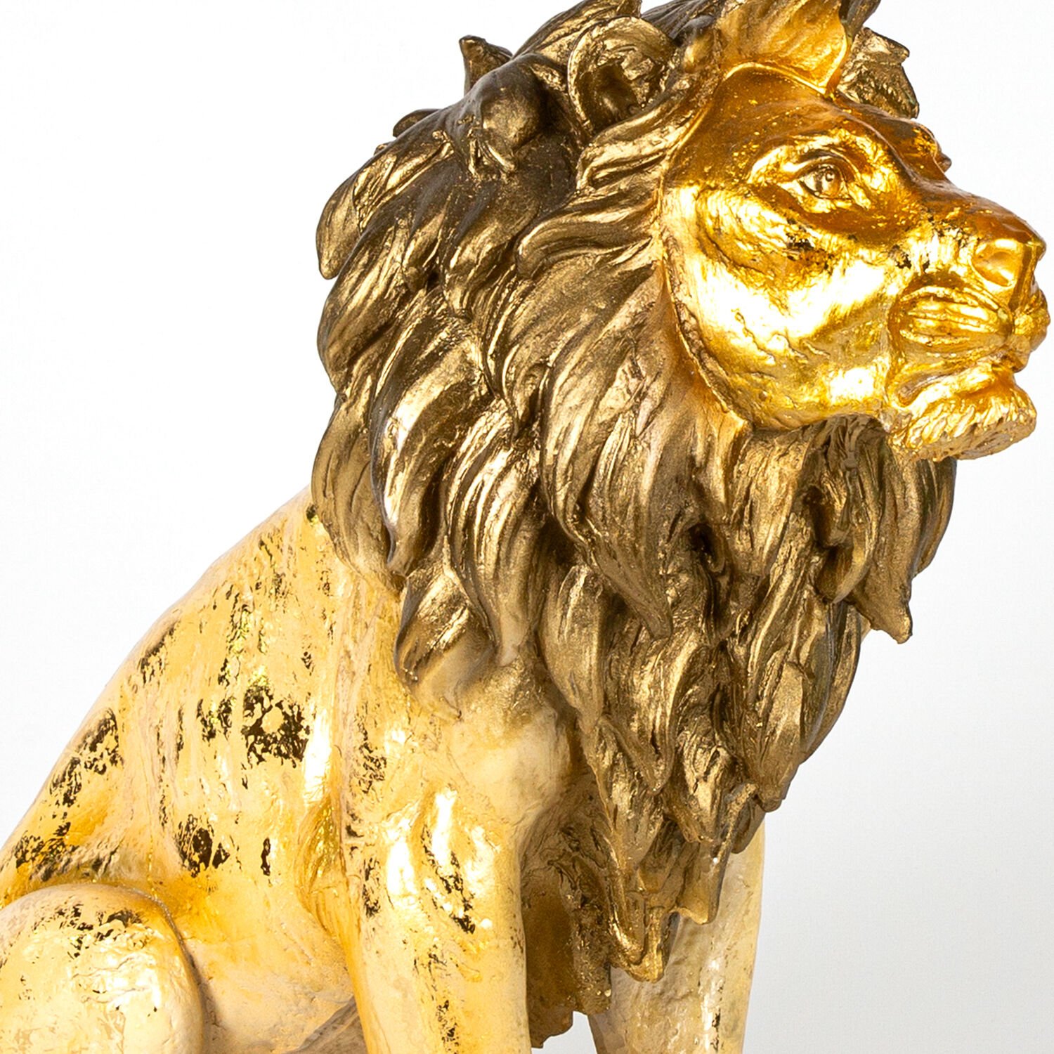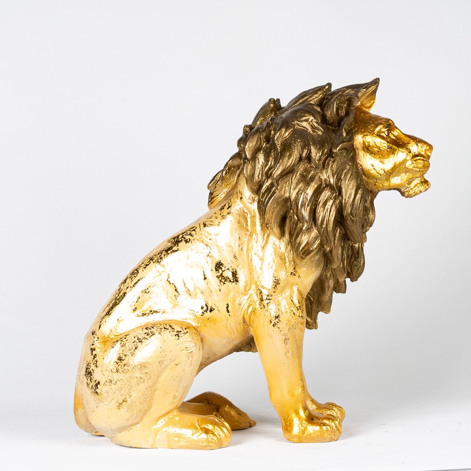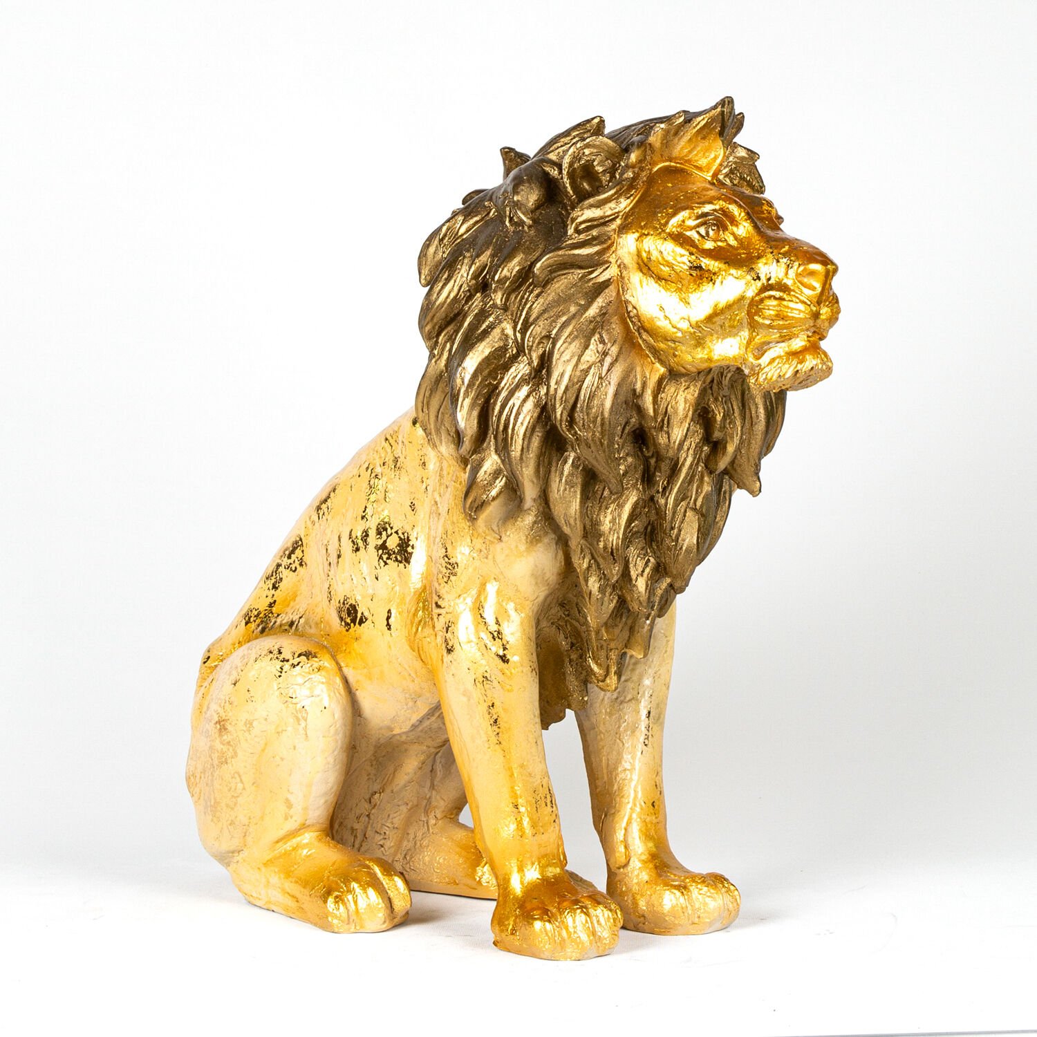 Aslan Biblo, Altın Varaklı Kahverengi Yeleli, Gold - 50x50x24 cm