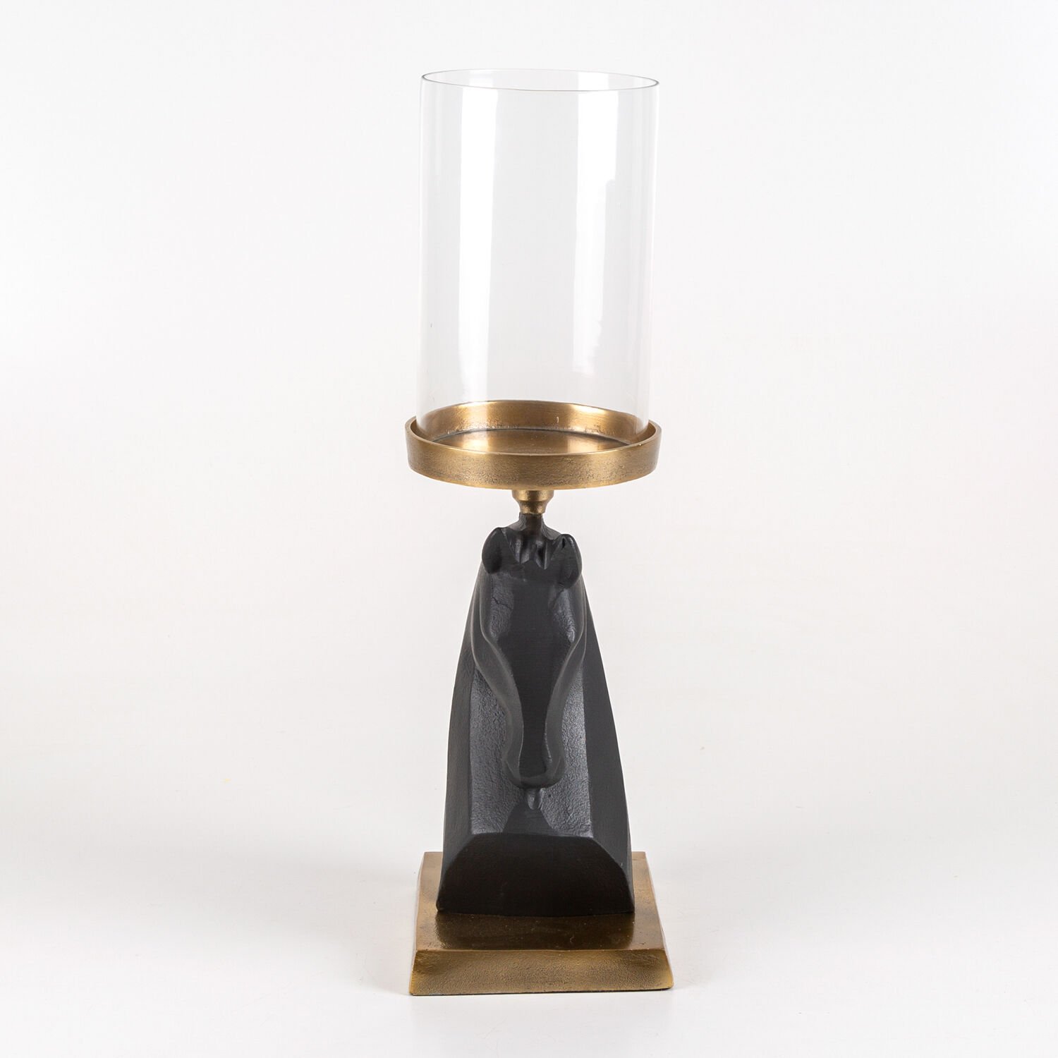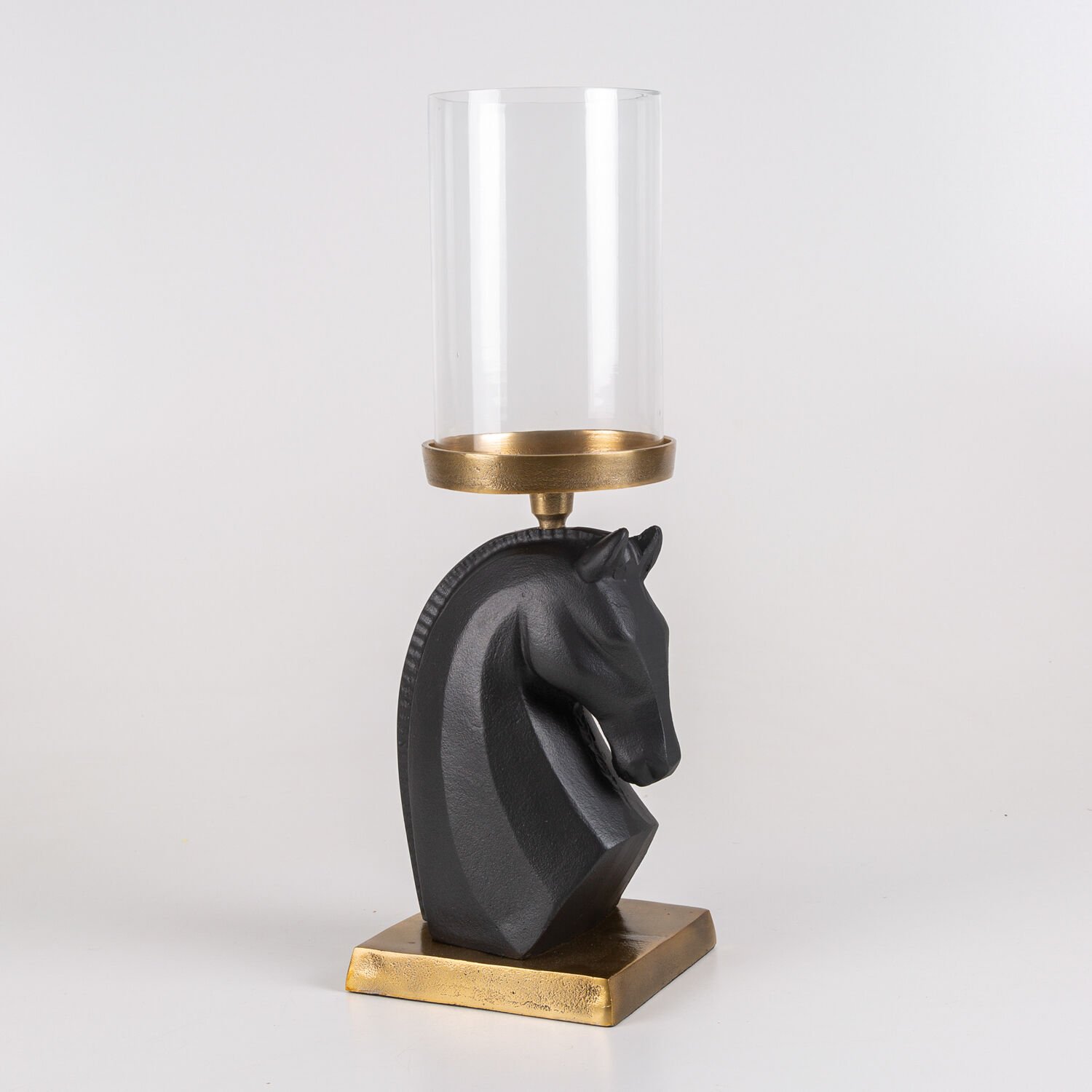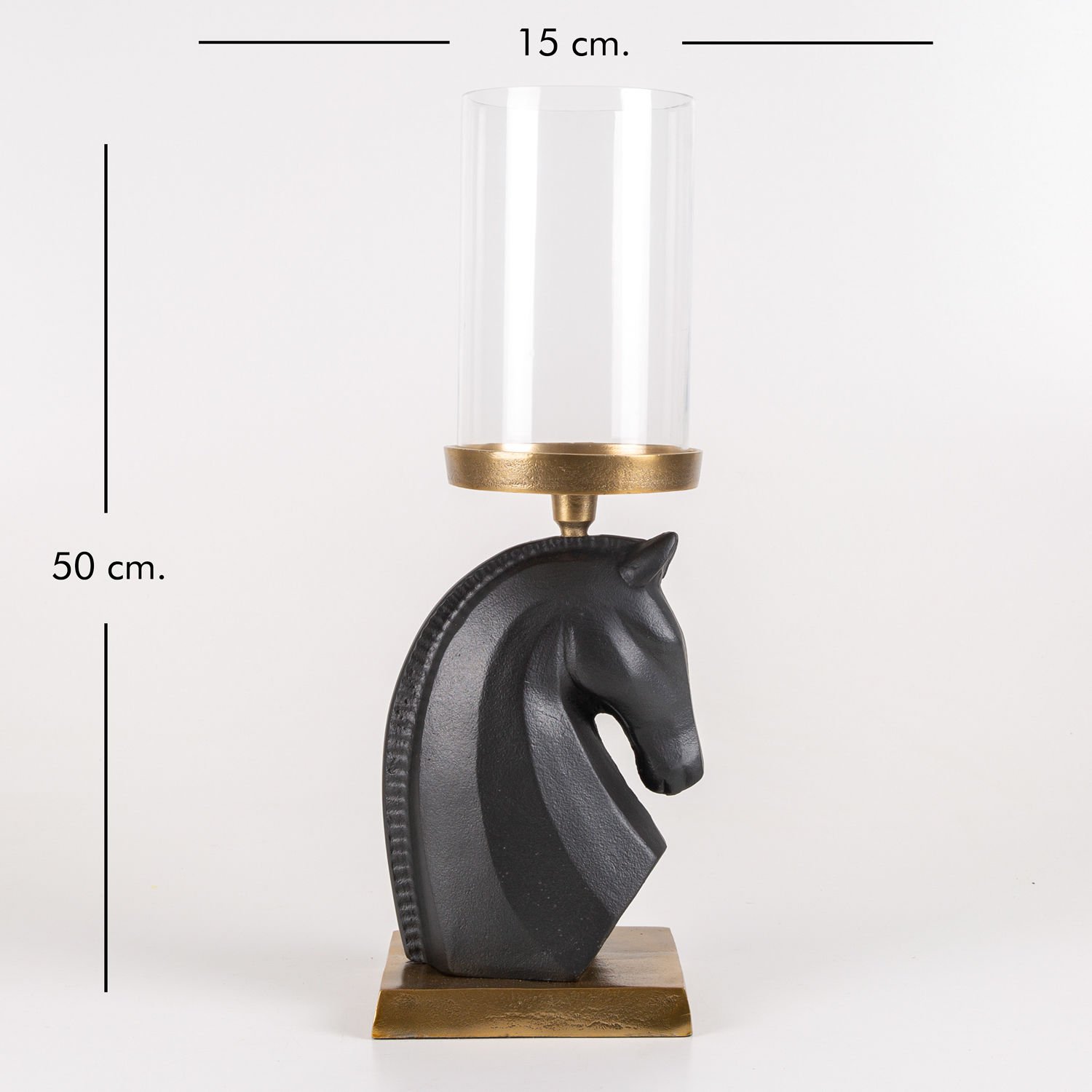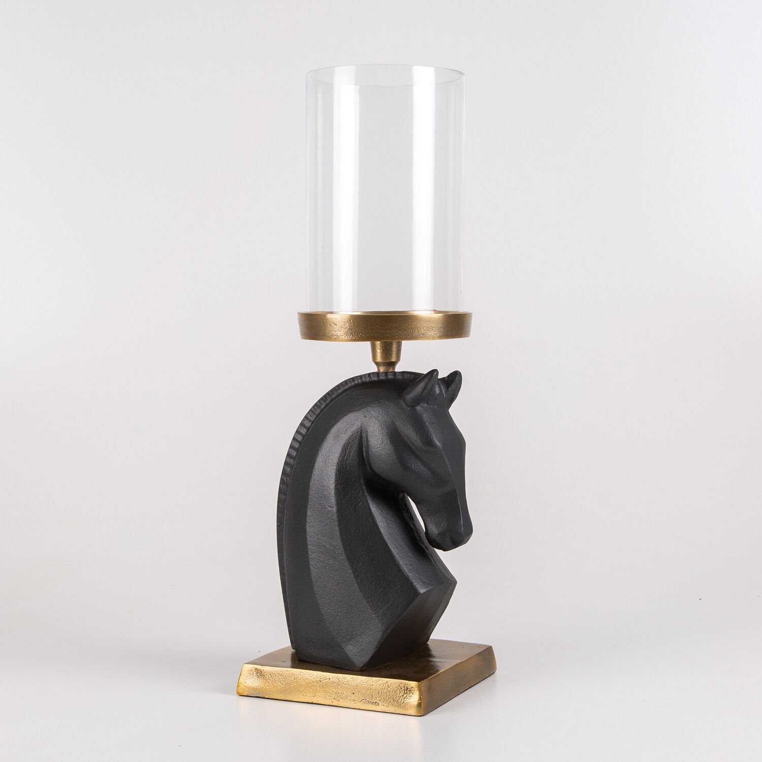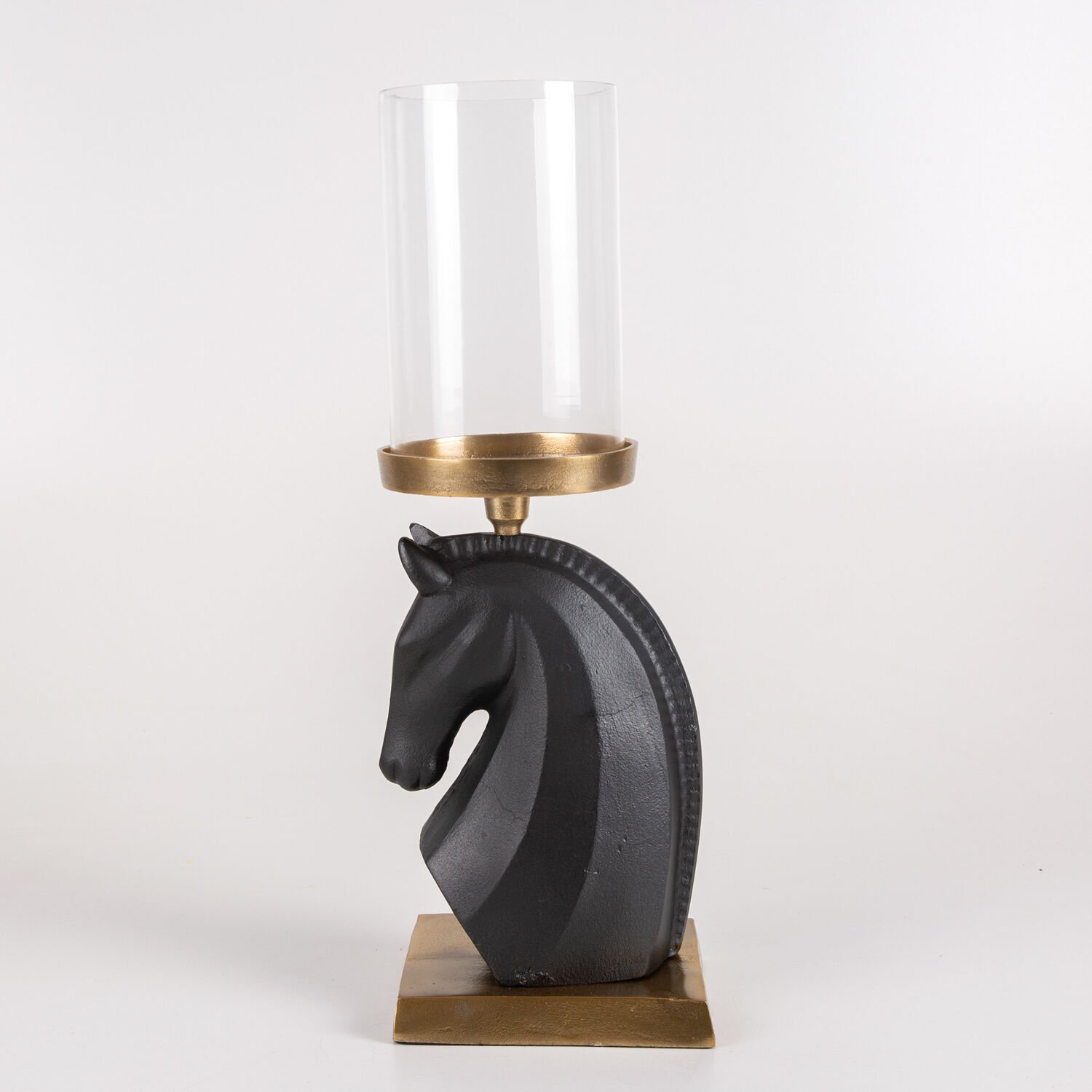 Dekoratif Metal Altın Kaideli Üstten Tepsili At Başı Figür Siyah-Altın Eskitme 14 x 31 Cm.