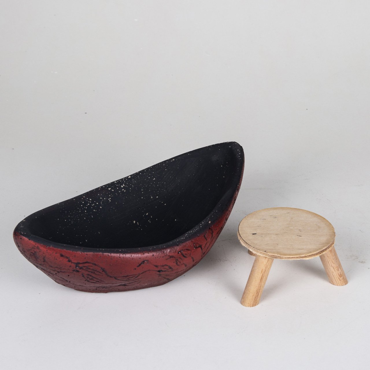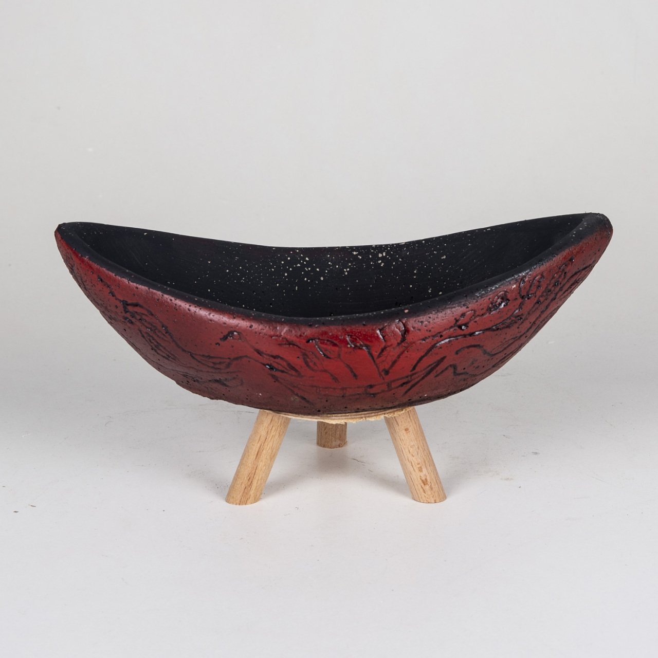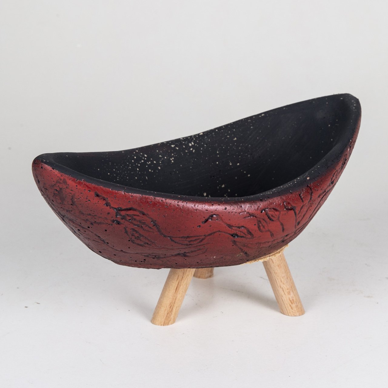 Ayaklı Bitki Desen Kayık Beton Saksı Bordo Siyah 30x15 Cm