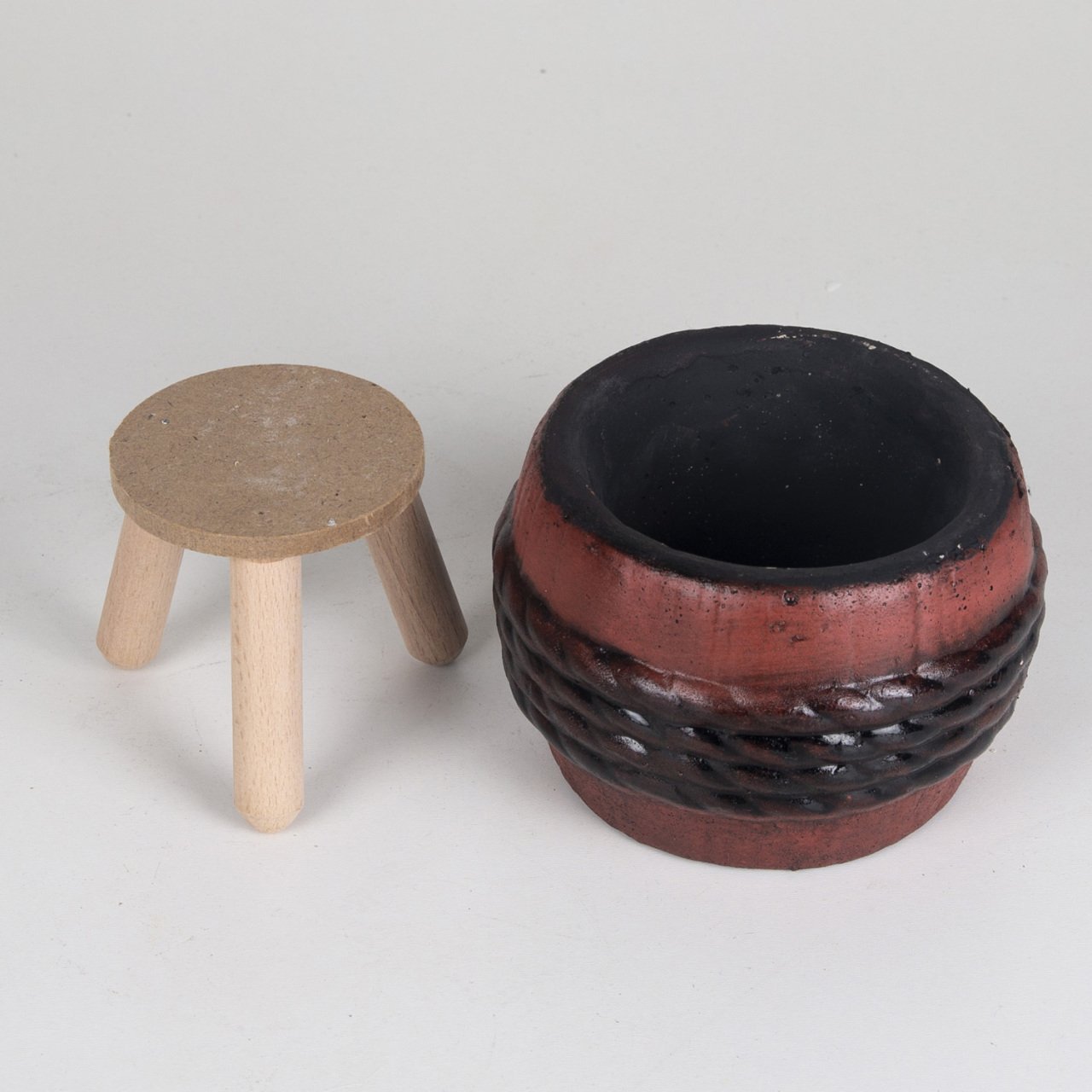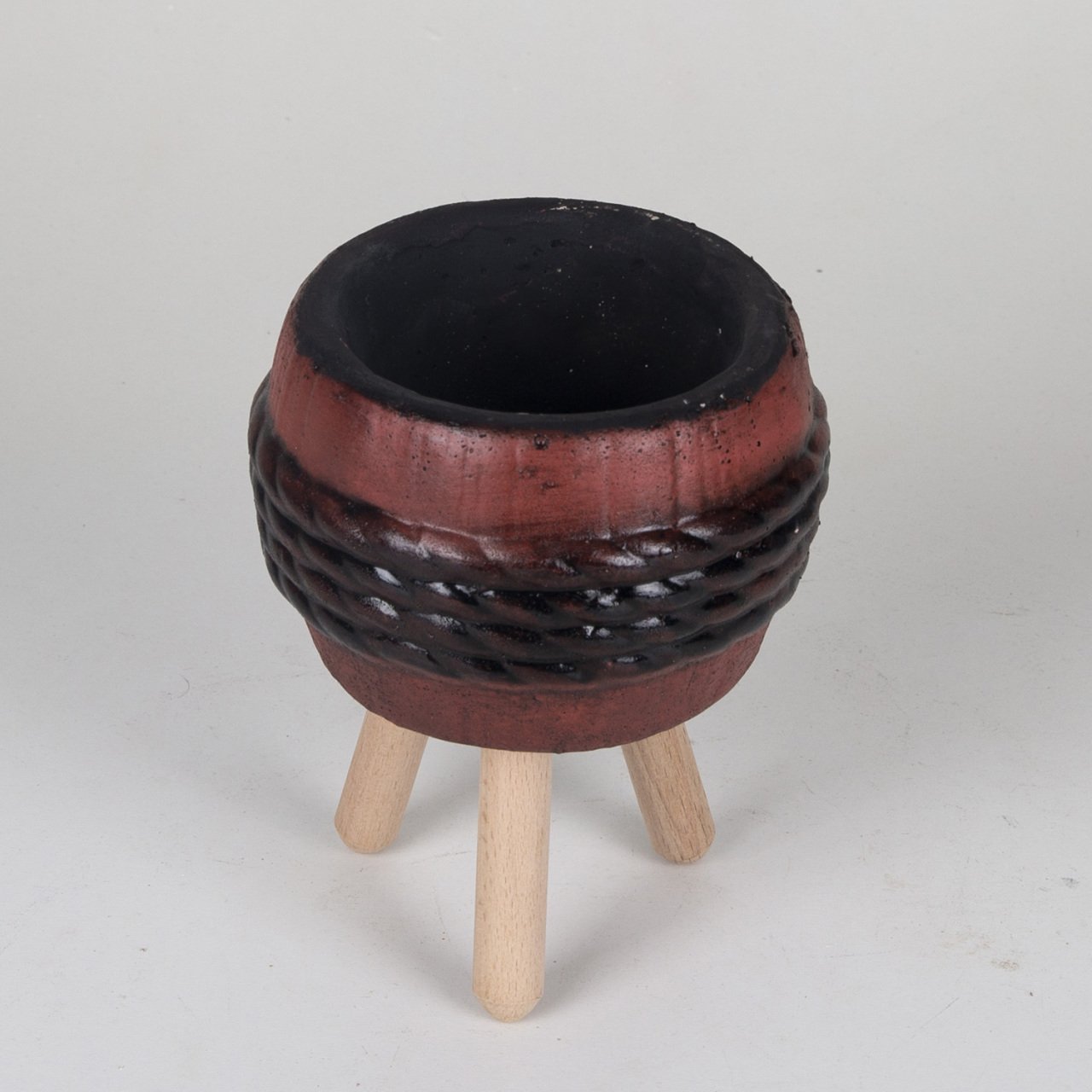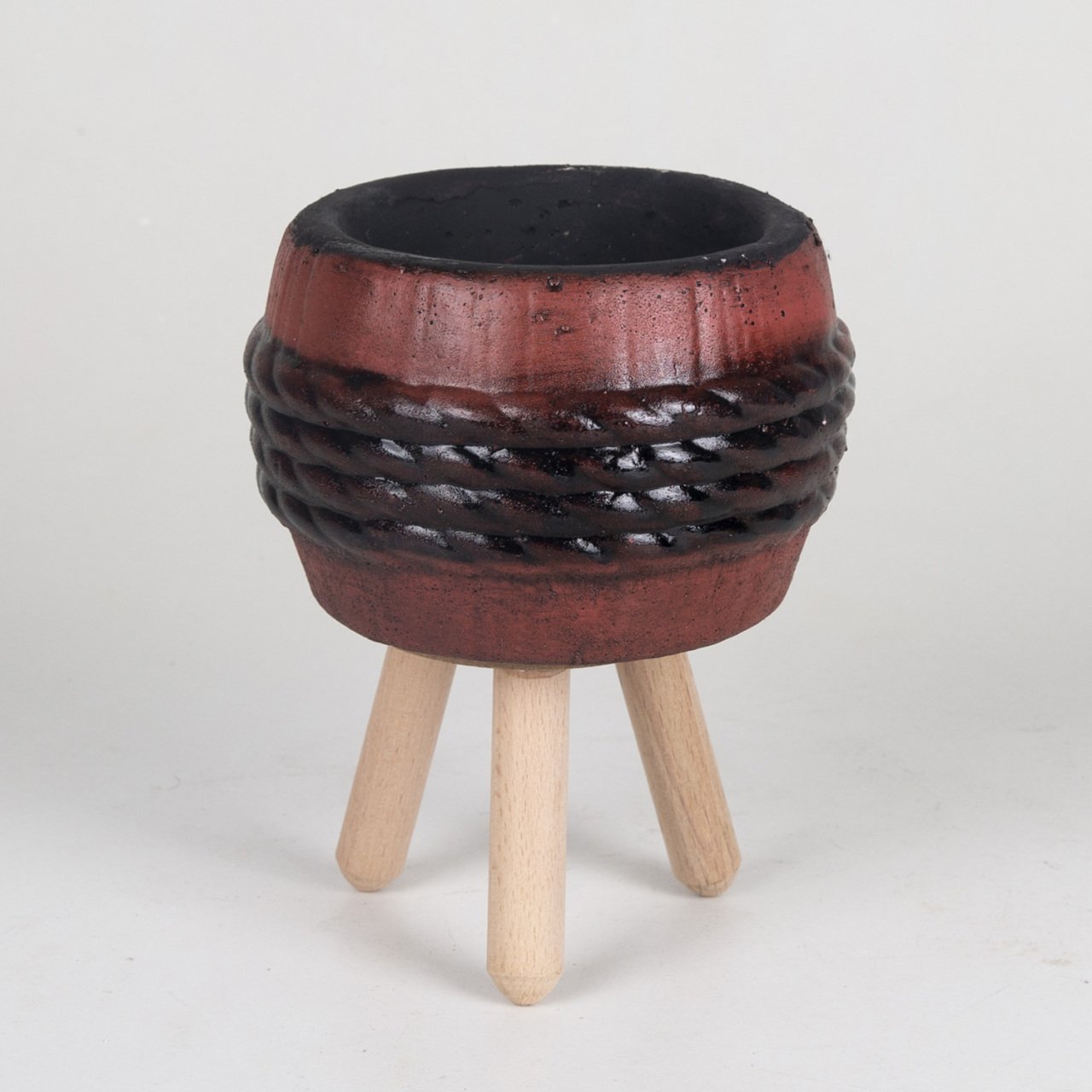 Ayaklı Halat Desenli Küçük Boy Bordo Saksı 0,5 LT