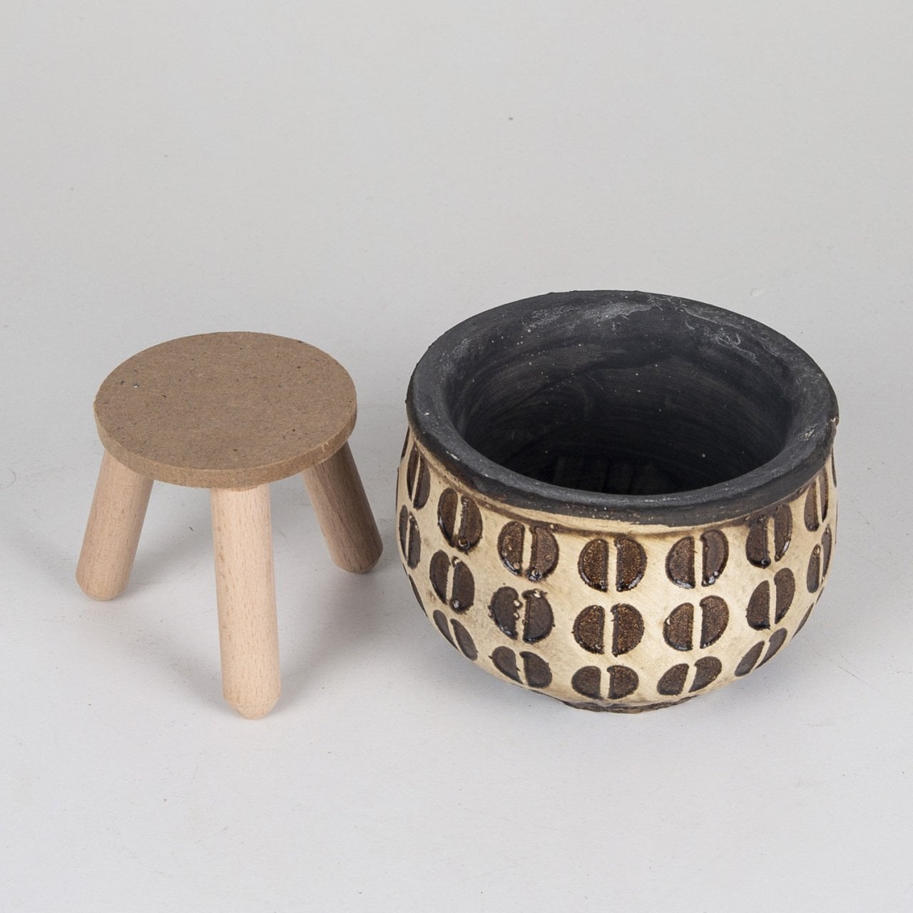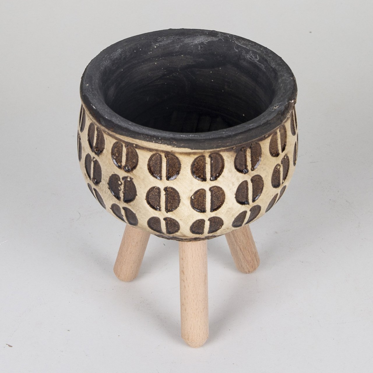 Ayaklı Kahve Çekirdeği Desenli Küçük Boy Kahverengi Beton Saksı 0,5 Lt