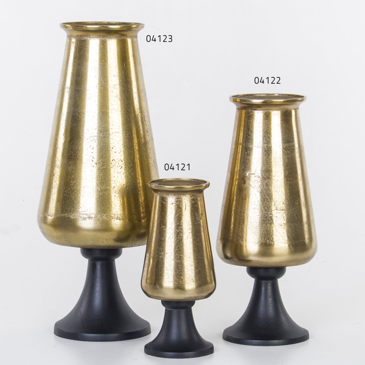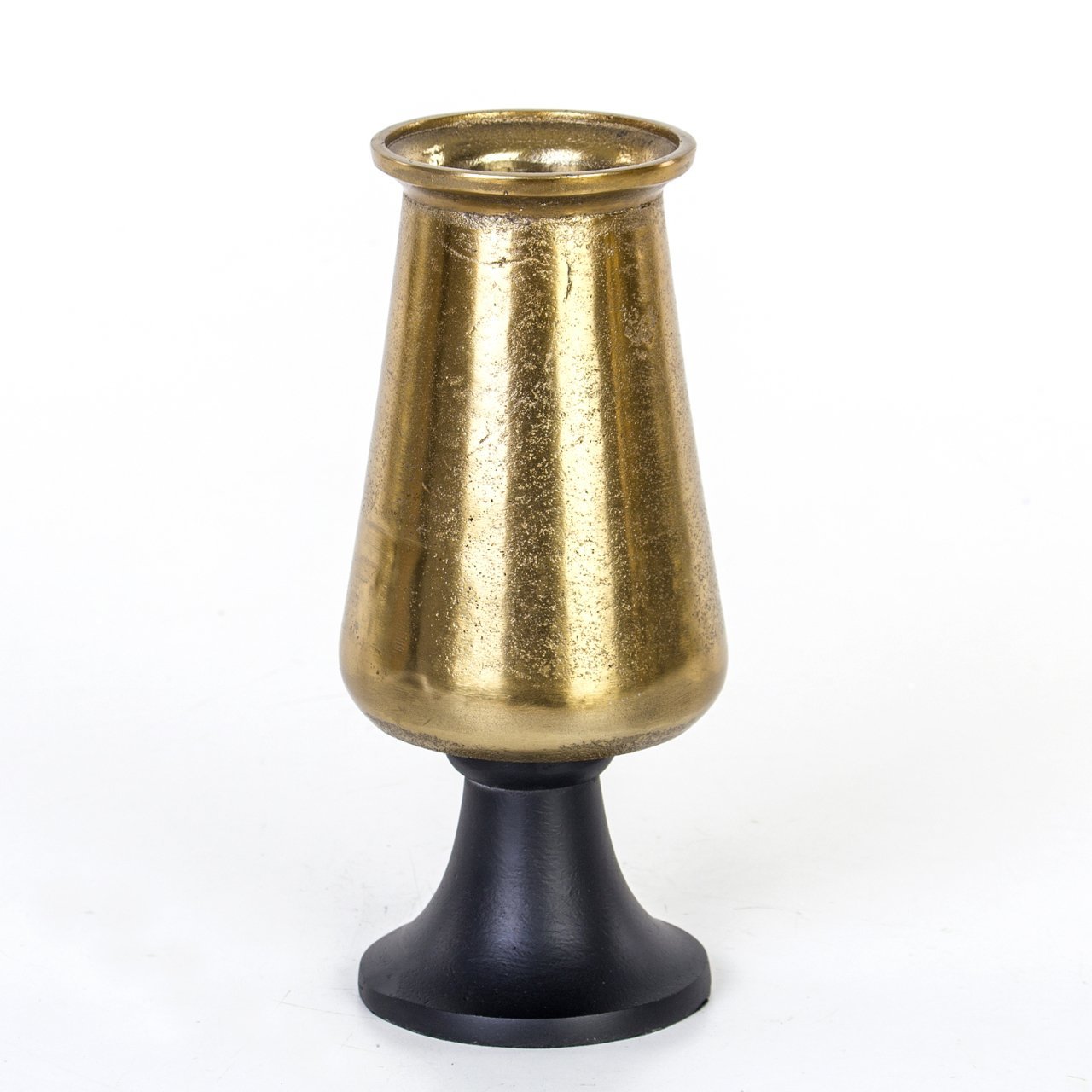 Şık tasarımlı metal vazo; siyah ayaklı ve altın rengi ile mekanların havasını değiştirin. Aynı modelin farklı boylarını yan yana getirerek de kullanabilirsiniz. Malzeme: Metal. Ölçüler: Üst Çap: 8 cm. - Taban Çapı: 10.5 cm. - Yüks.: 26 cm.