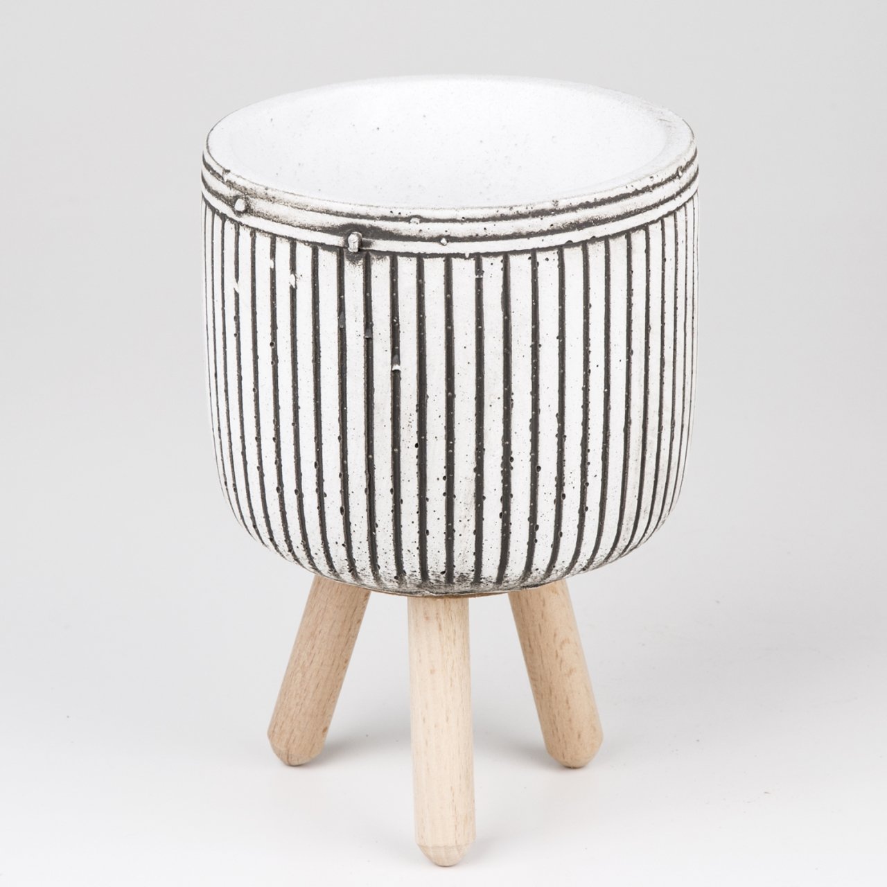 Bambu Desenli Beton Beyaz Saksı Ayaklı