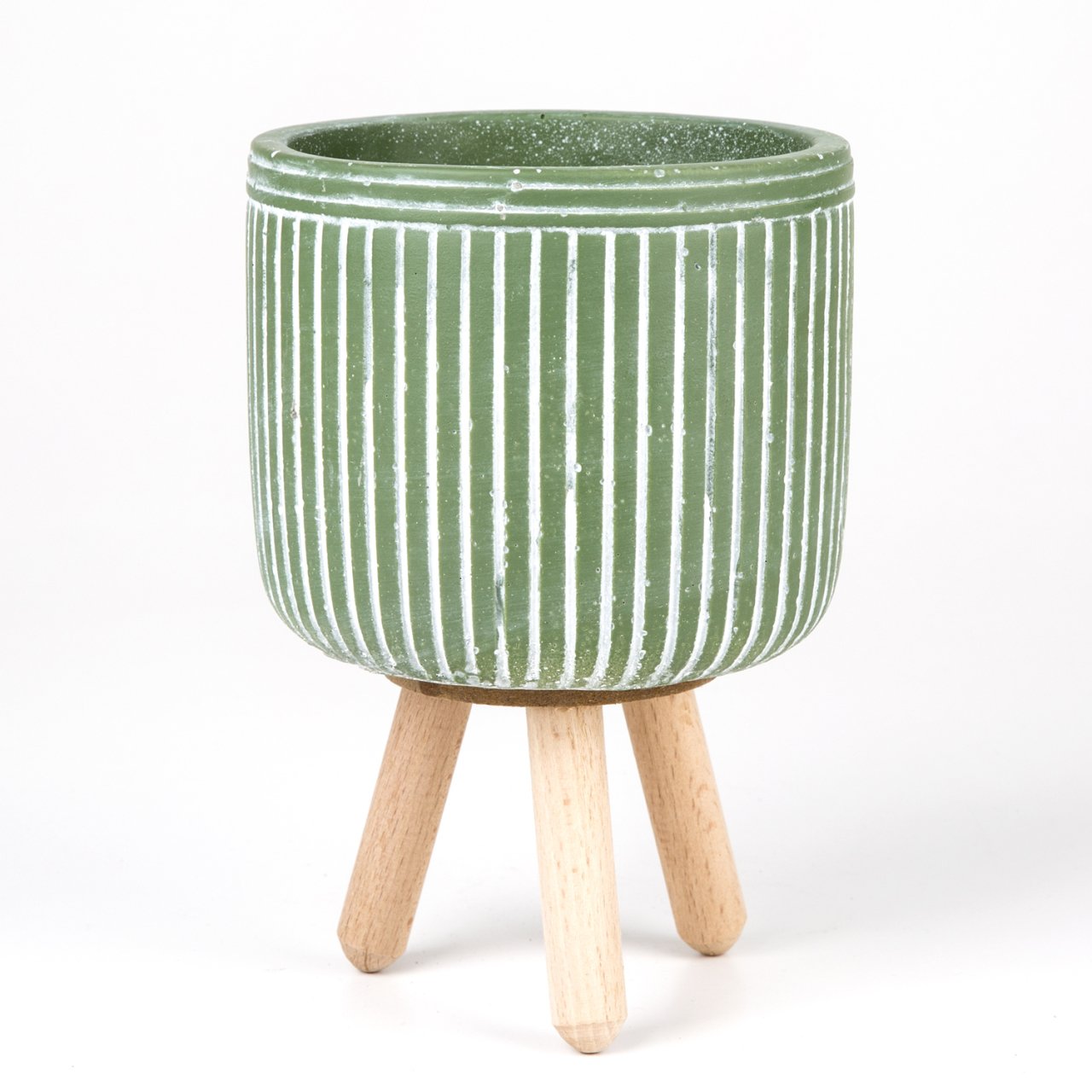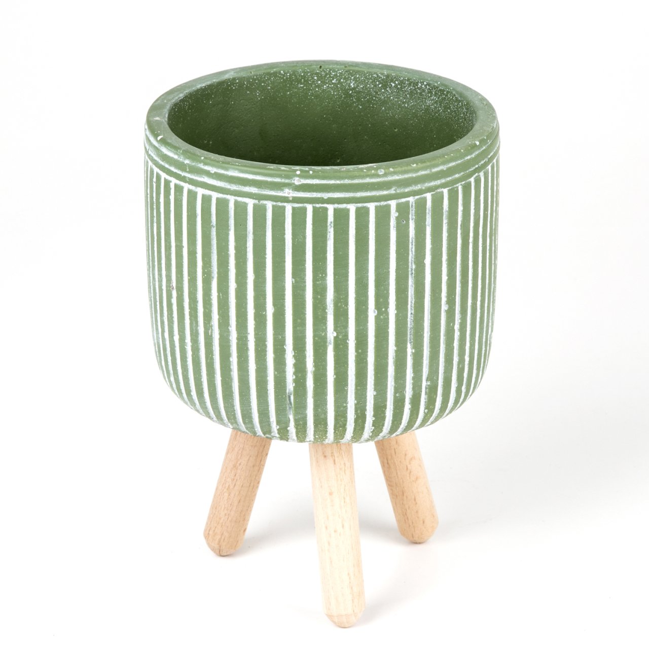 Bambu Desenli Beton Yeşil Saksı Ayaklı