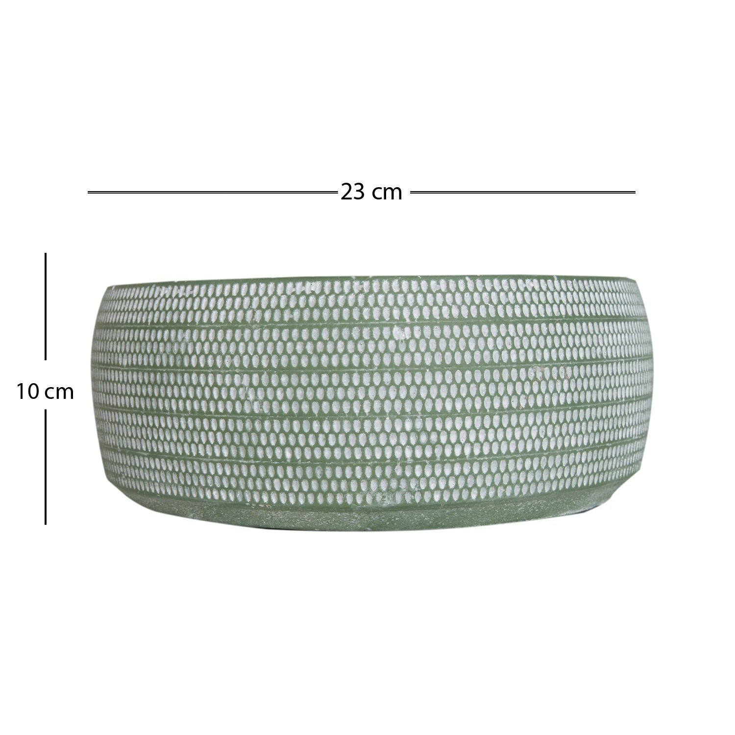 Beton Saksı, Aranjman, Damla Şerit Desen, Yeşil - 23x10 cm