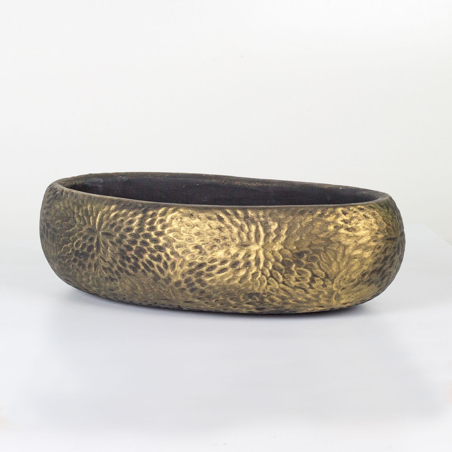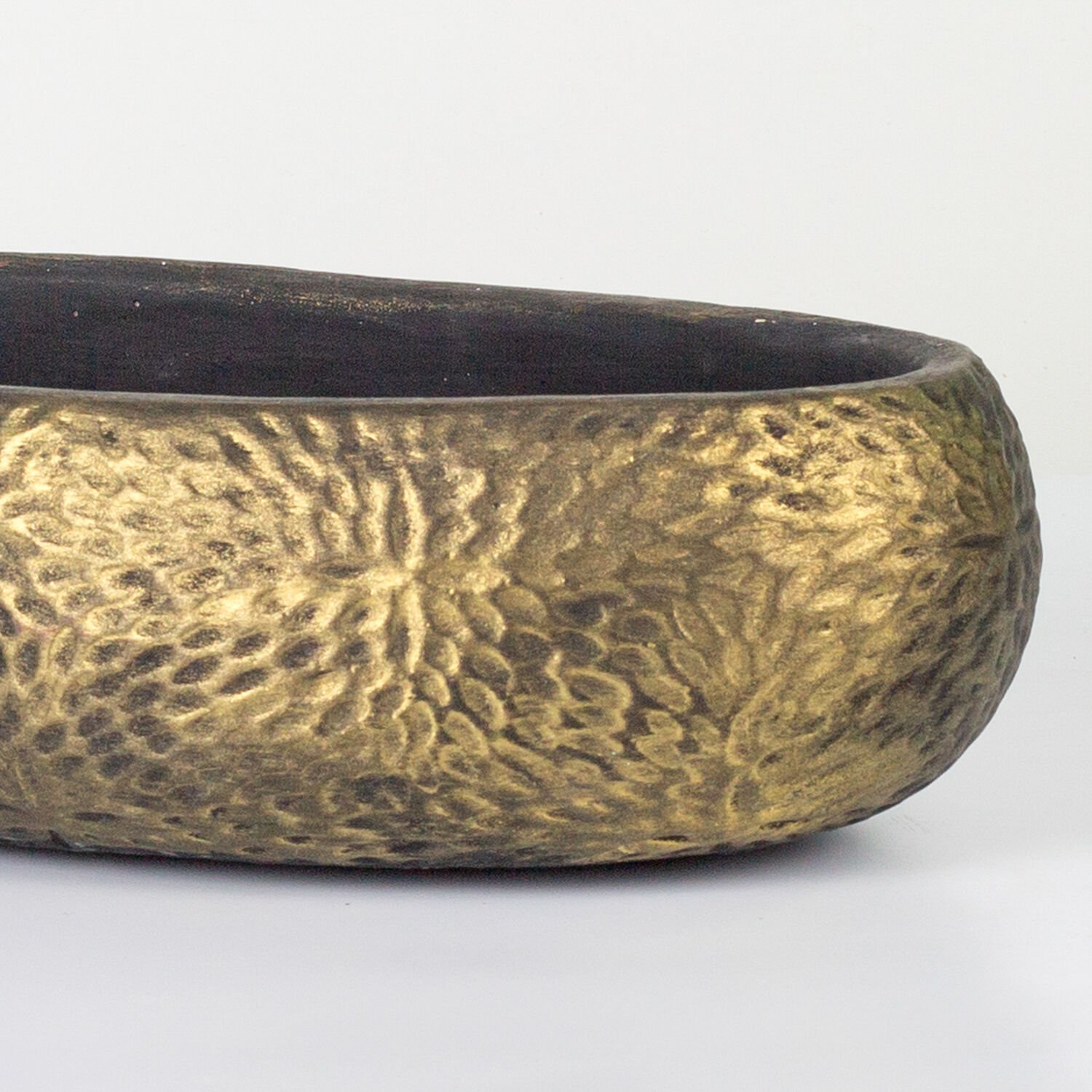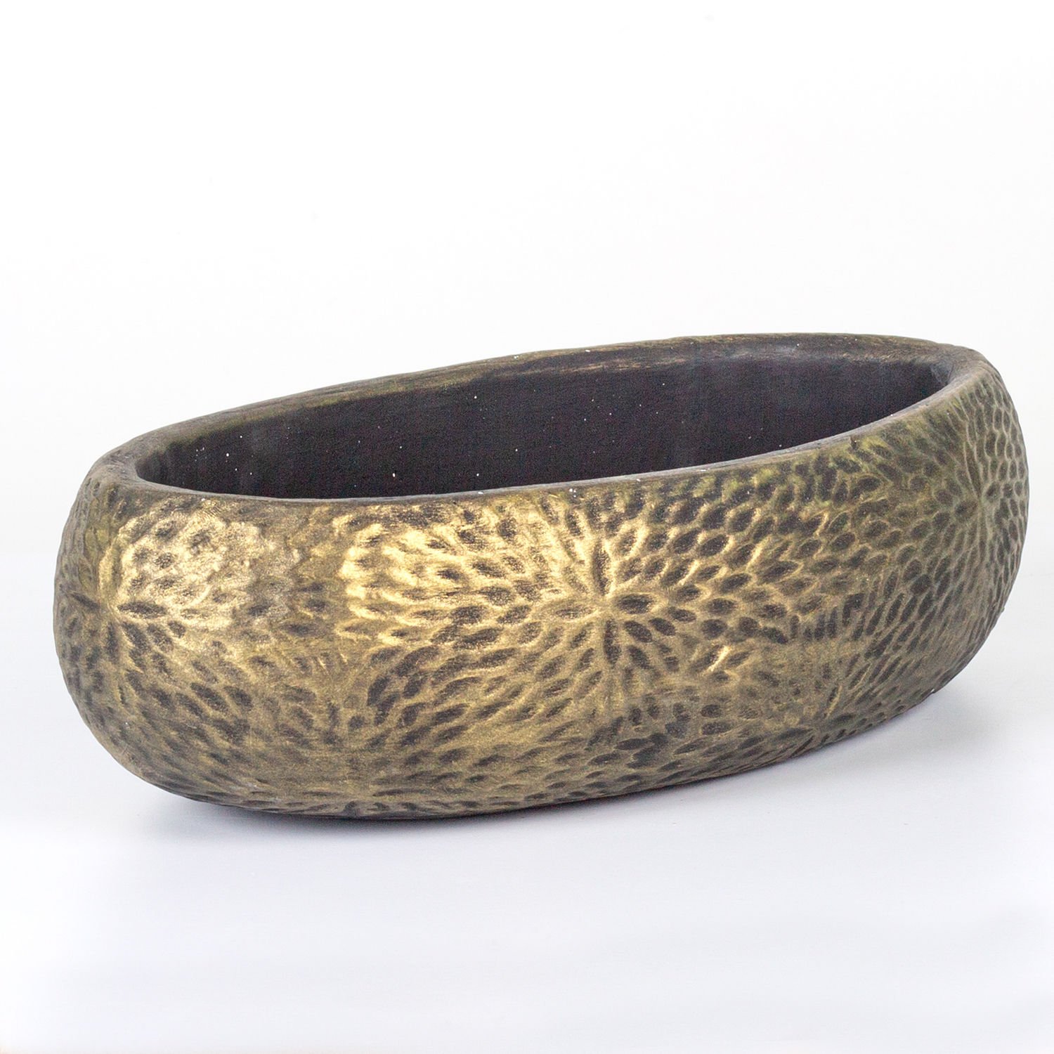 Beton Saksı Çiçek Motifli Oval Gold Eskitme 33x17x10 Cm.