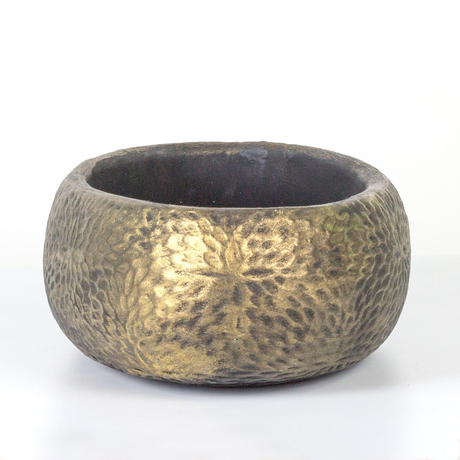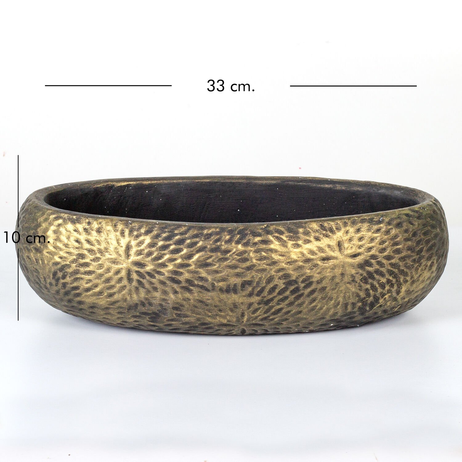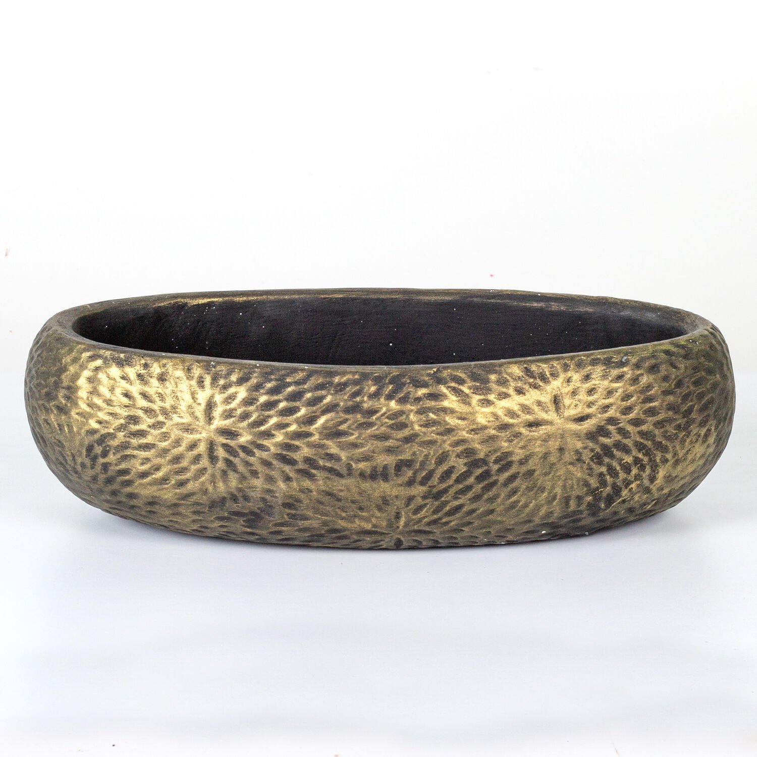 Beton Saksı Çiçek Motifli Oval Gold Eskitme 33x17x10 Cm.