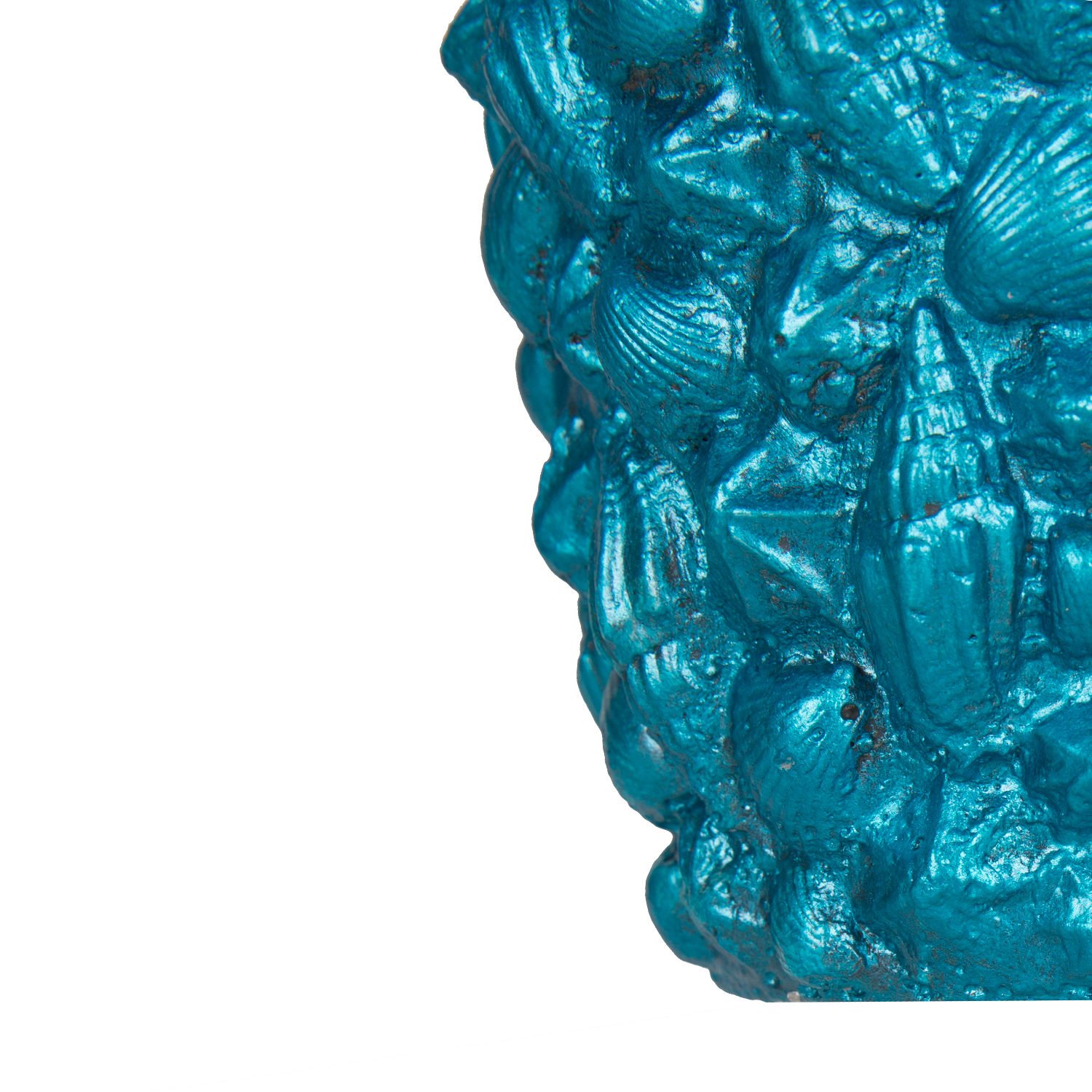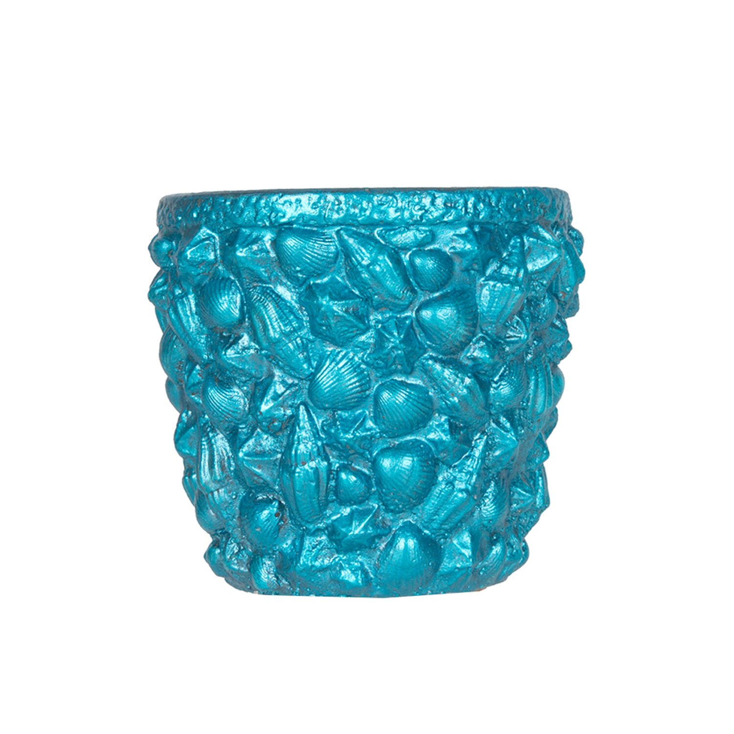 Beton Saksı, Deniz Kabuğu Desenli, Sedef Mavi - 13x13 cm