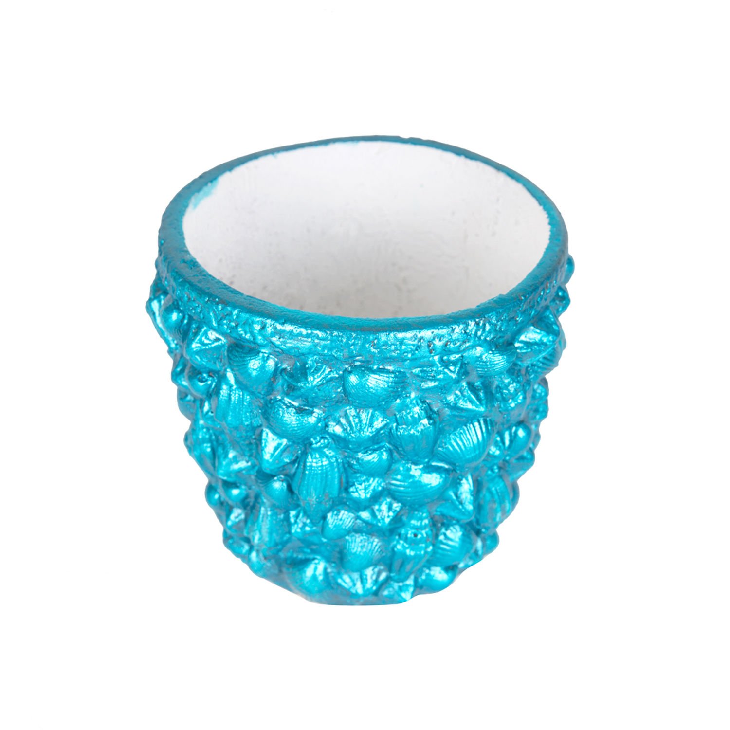 Deniz Kabuğu Desenli Beton Saksı Sedef Mavi 13 x 13 Cm.