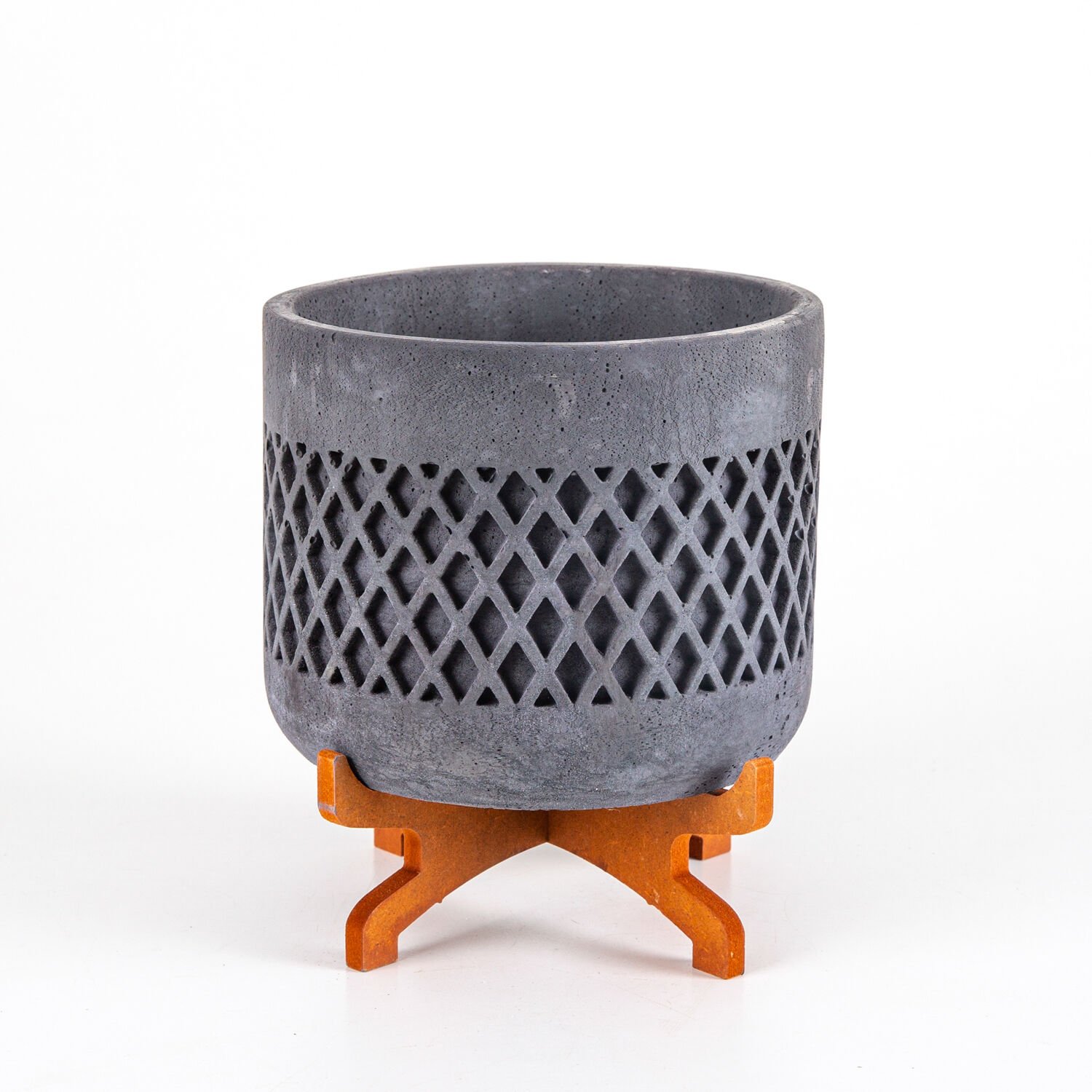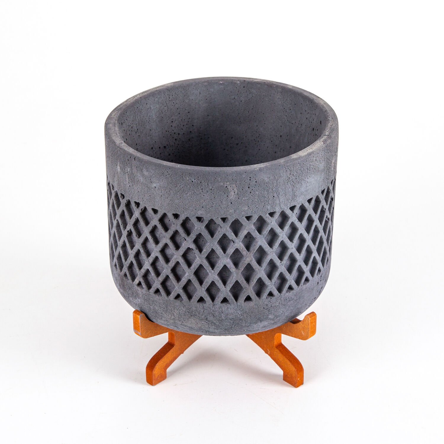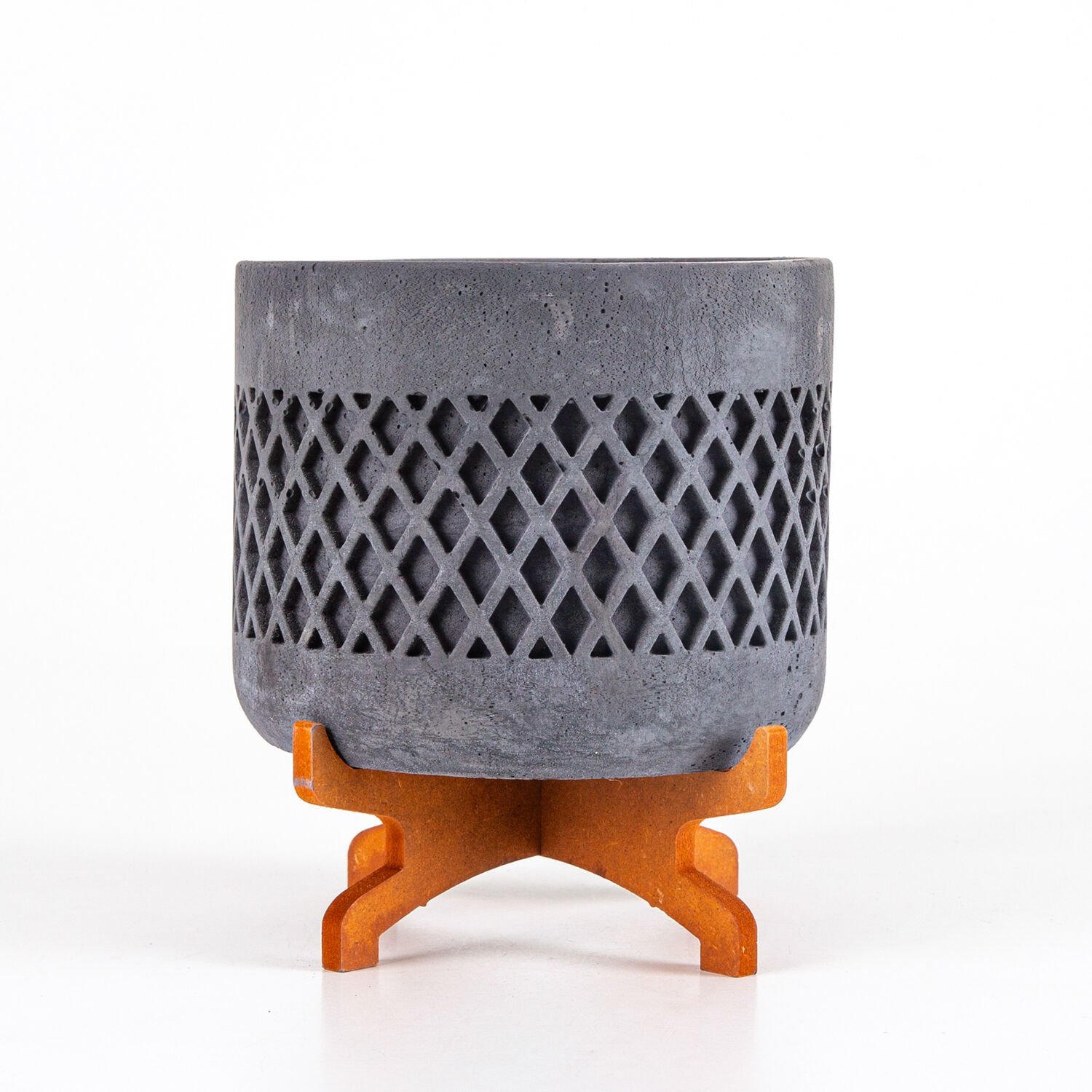 Beton Saksı, Hasır Desen, Stand Ayaklı, Büyük Boy, Siyah - 18x21 cm