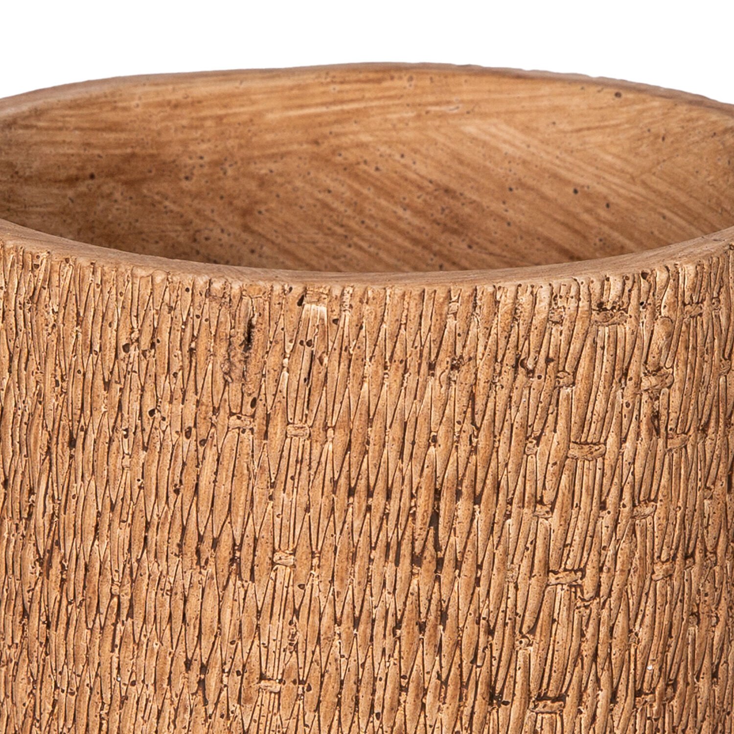 Beton Saksı, Hasır Desenli, Kahverengi - 14,5x14,5x13 cm