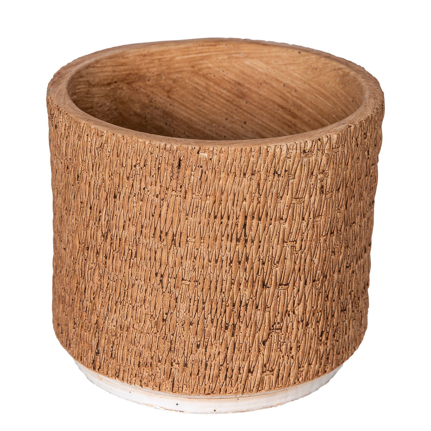 Seramik Saksı Hasır Görünümlü Kahverengi 14,5x13 Cm.