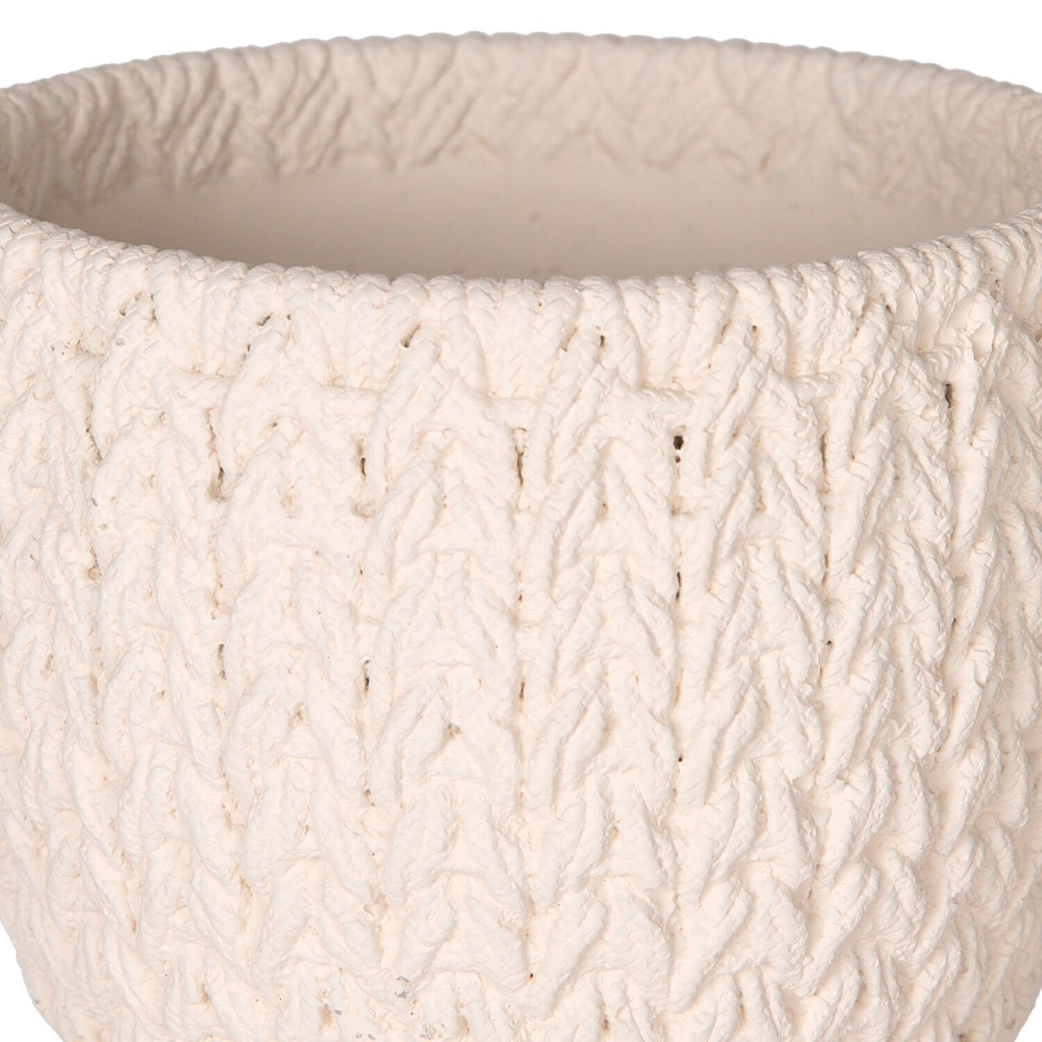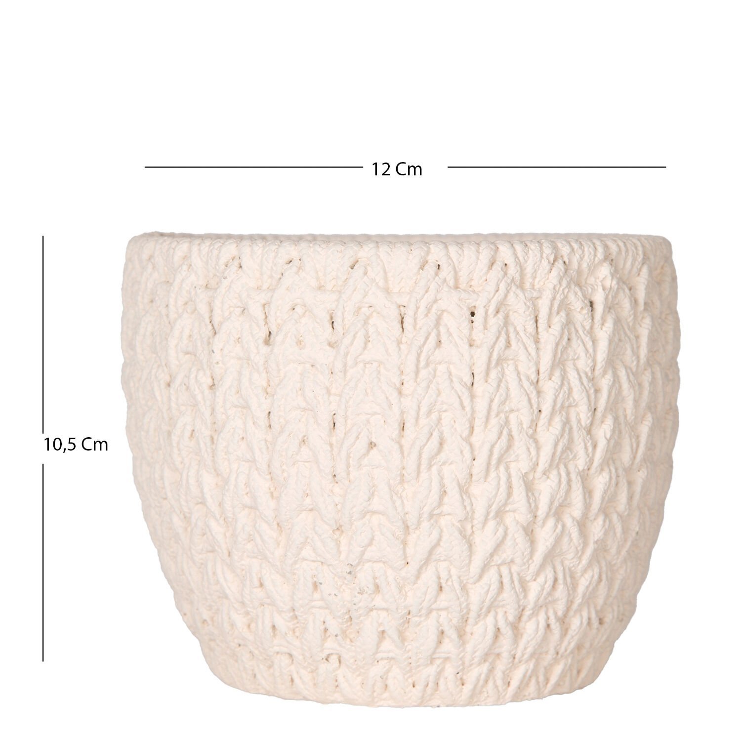 Beton Saksı, Örgü Desenli, Beyaz - 12x10,5 cm