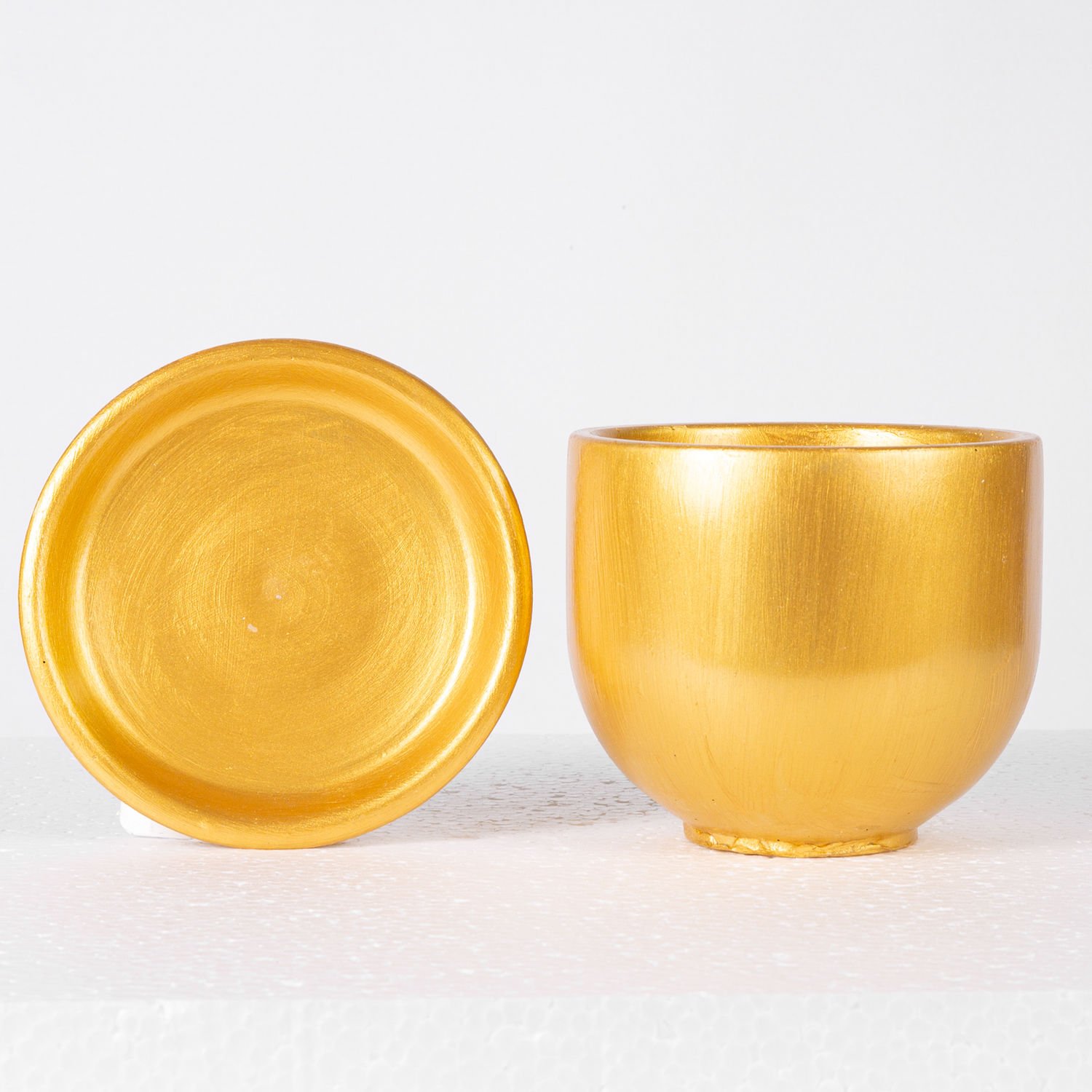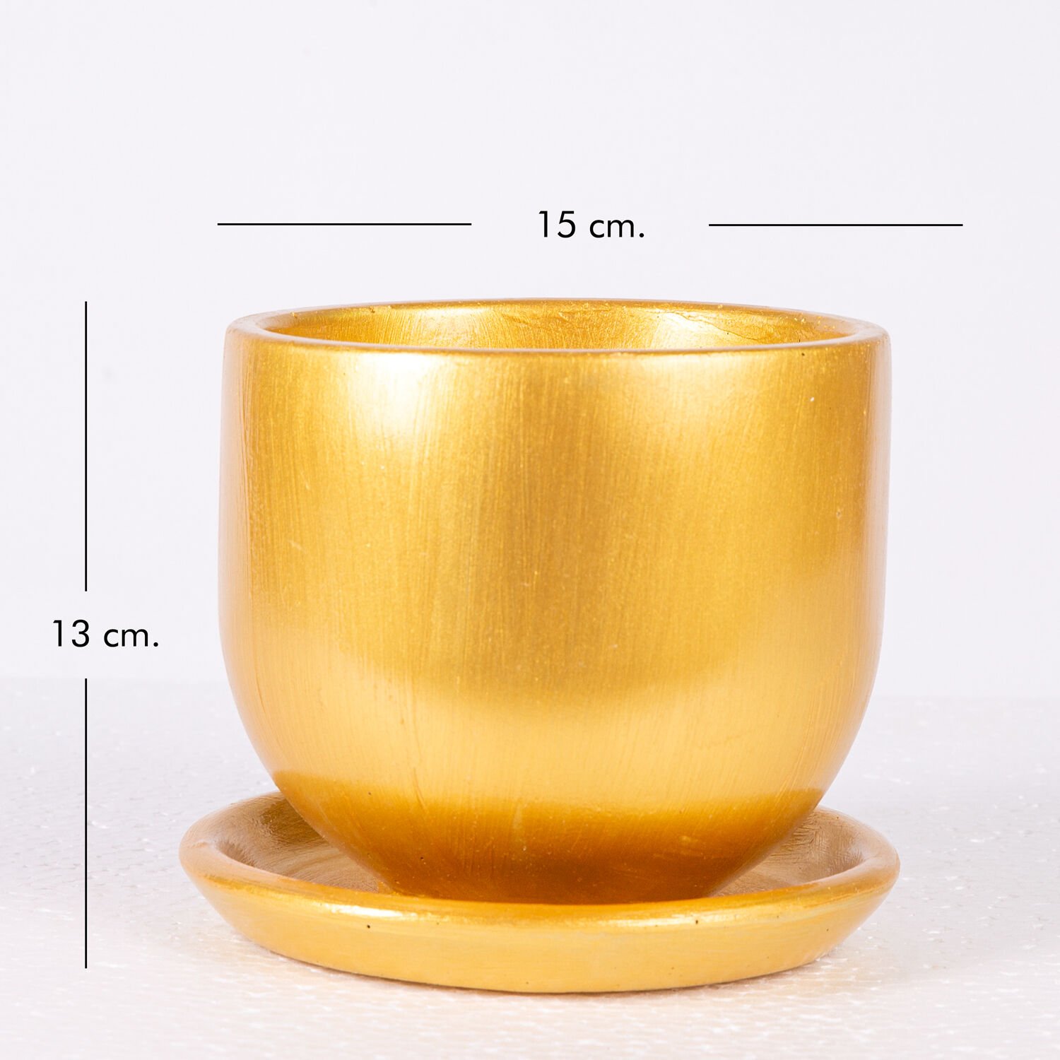 Beton Saksı, Tabaklı, Dore - El yapımı, 13x15 cm