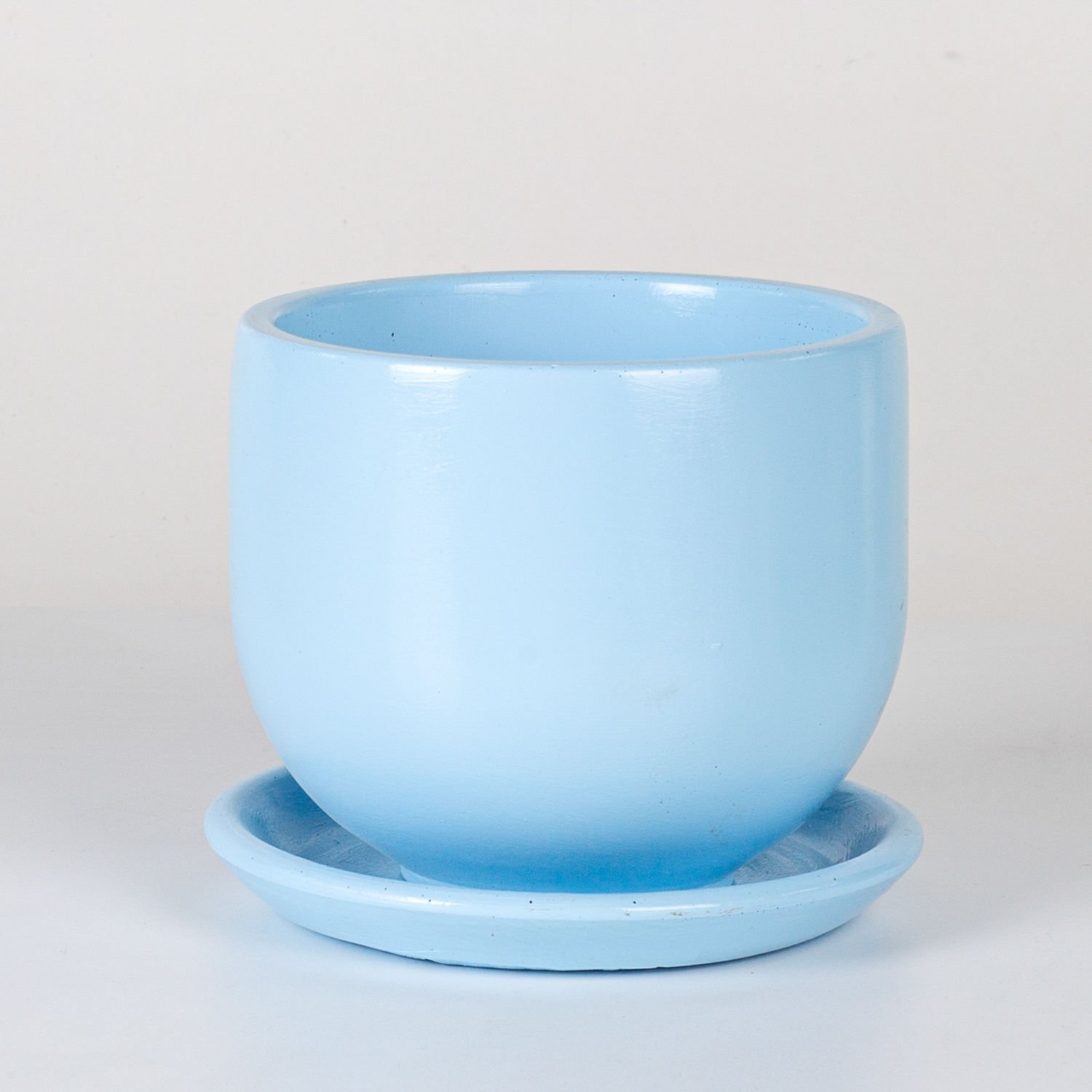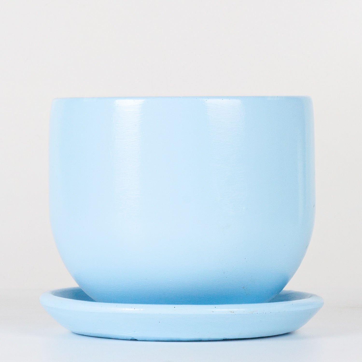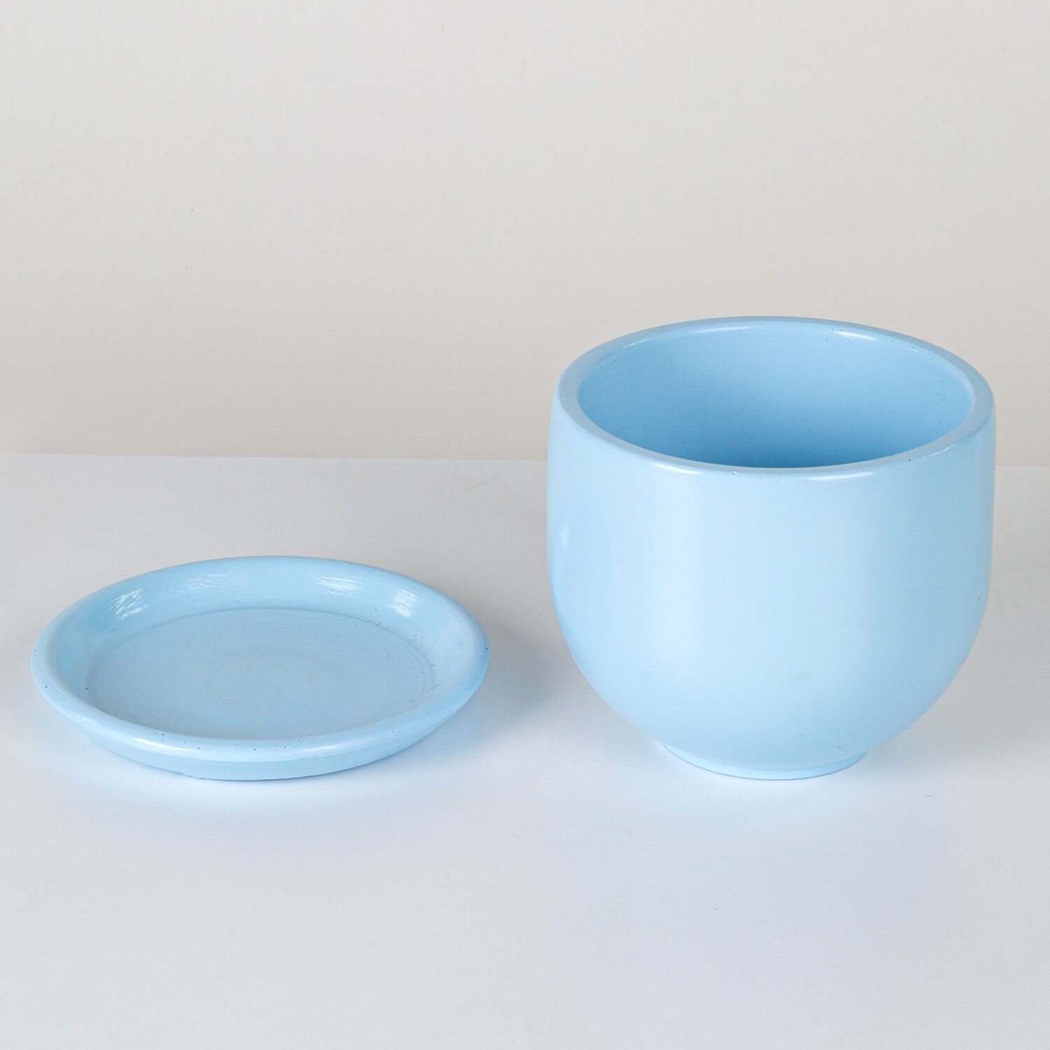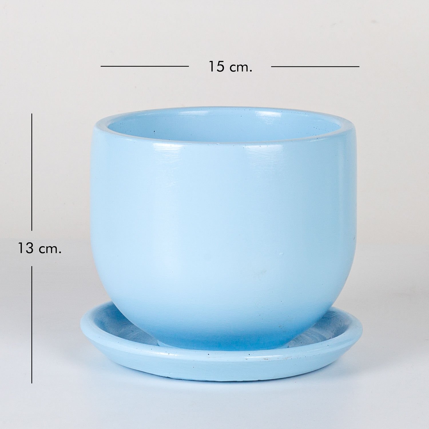 Beton Saksı Tabaklı Mavi 15x13 Cm.