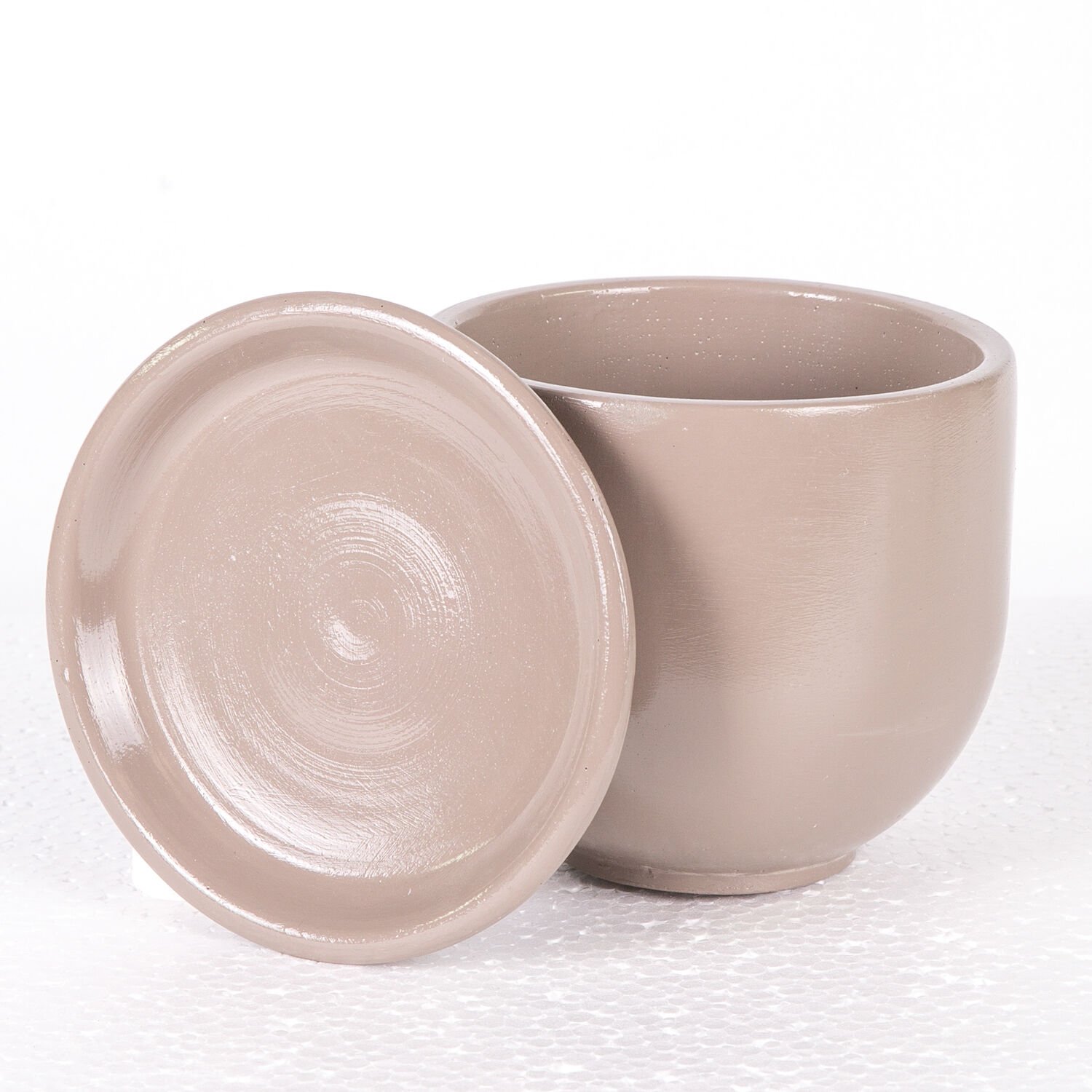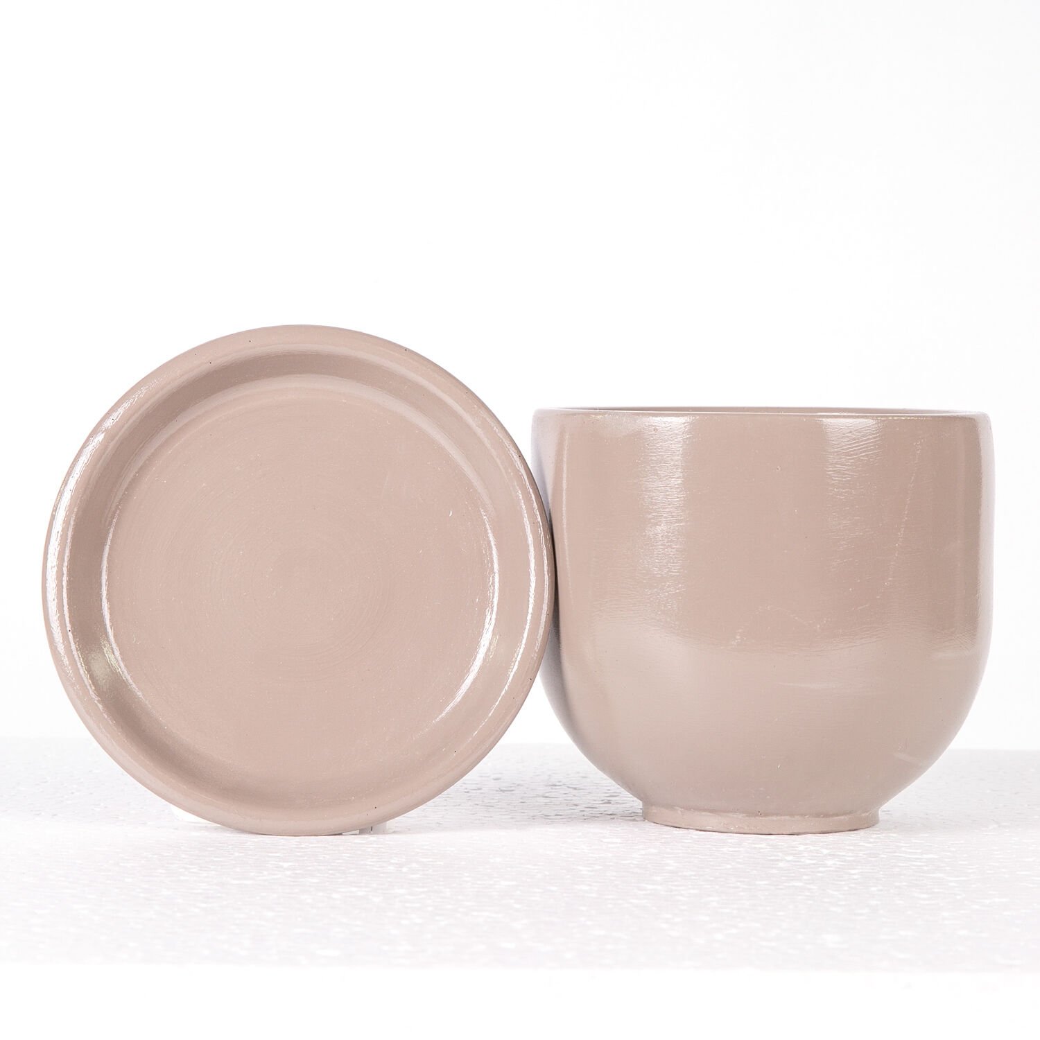 Beton Saksı, Tabaklı, Vizon - El yapımı, 13x15 cm