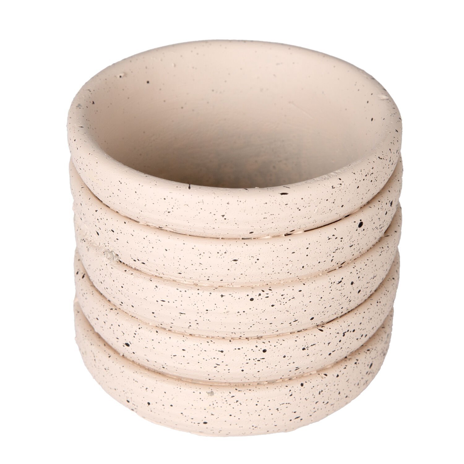 Beton Saksı, Yatay Kabartma Çizgili, Krem - 7,5x7 cm
