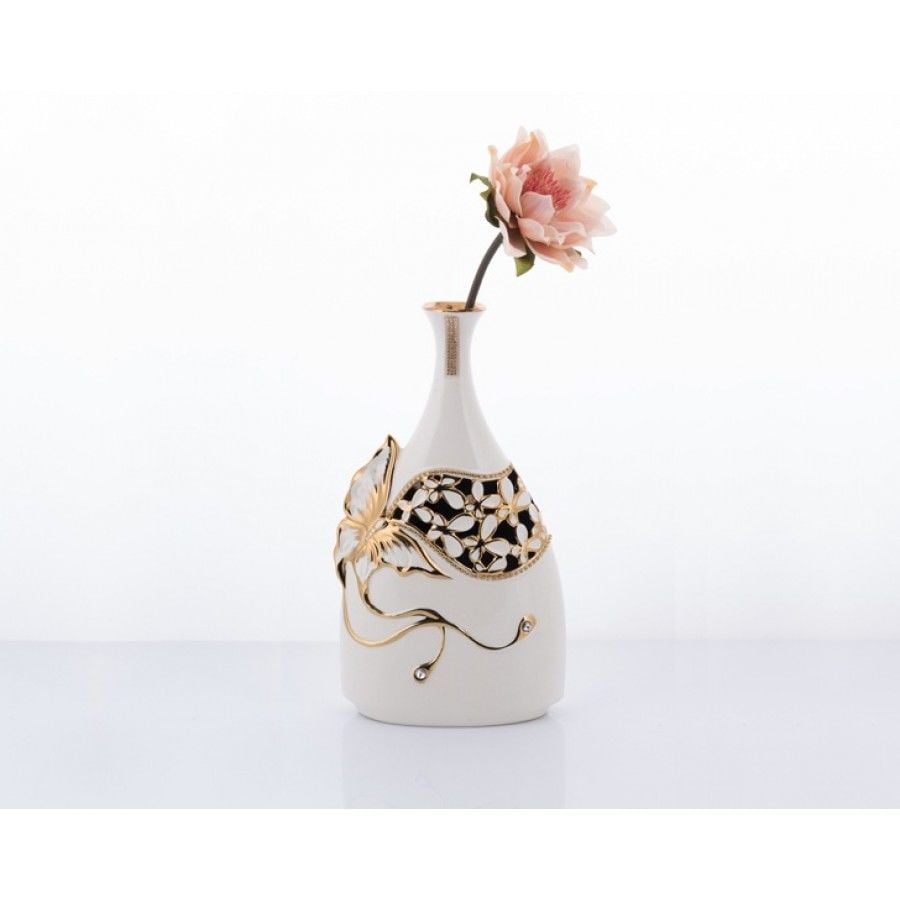 Beyaz-altın Kelebekli Vazo Uzun 44x23