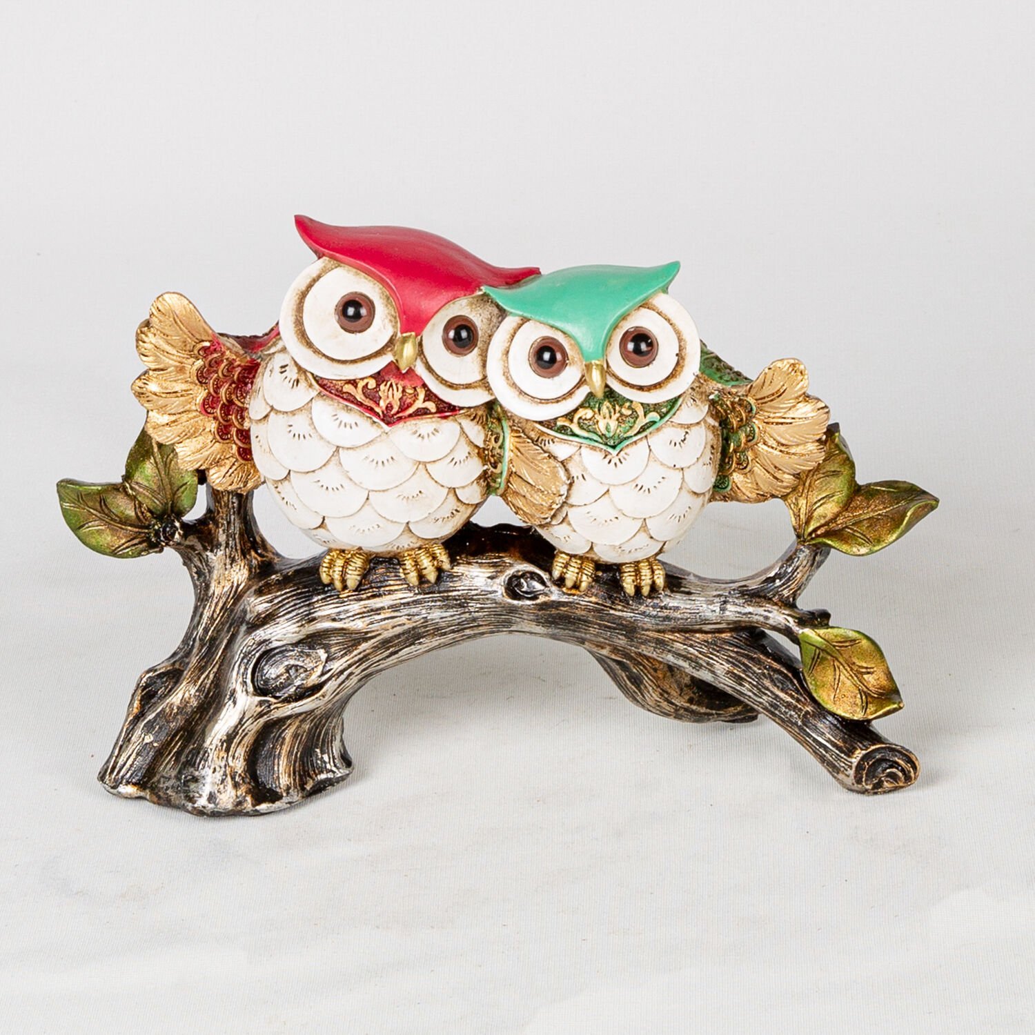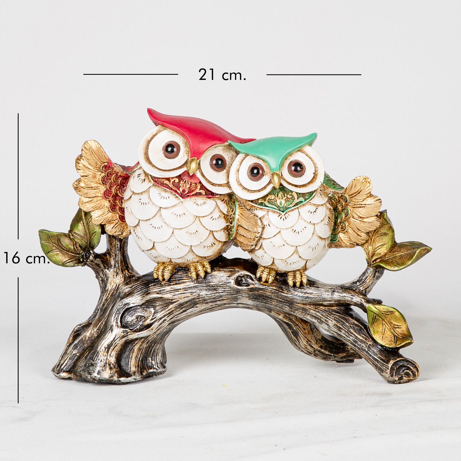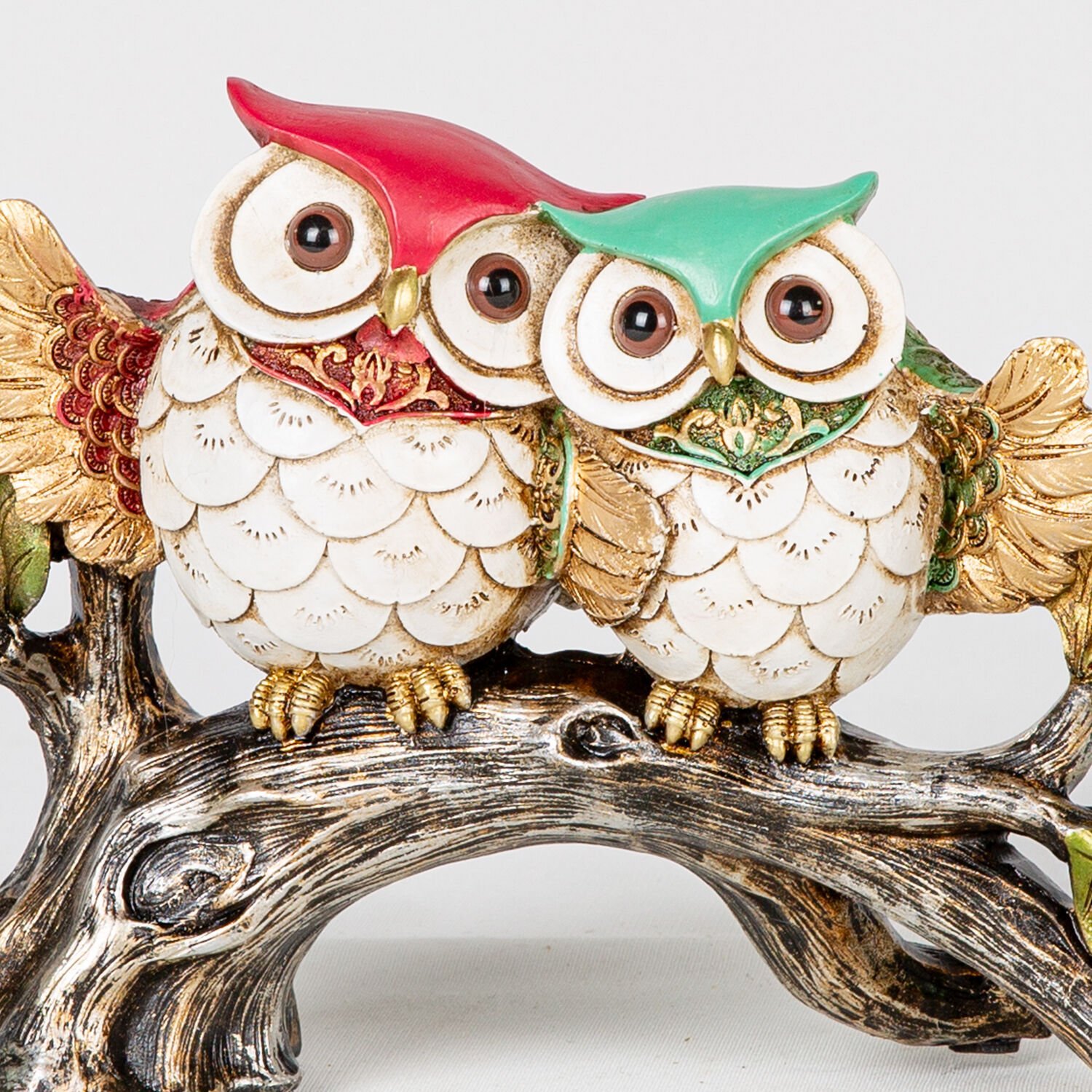 Biblo, Ağaç Dalında Oturan Baykuşlar, Gold-Beyaz - 21x16x7 cm