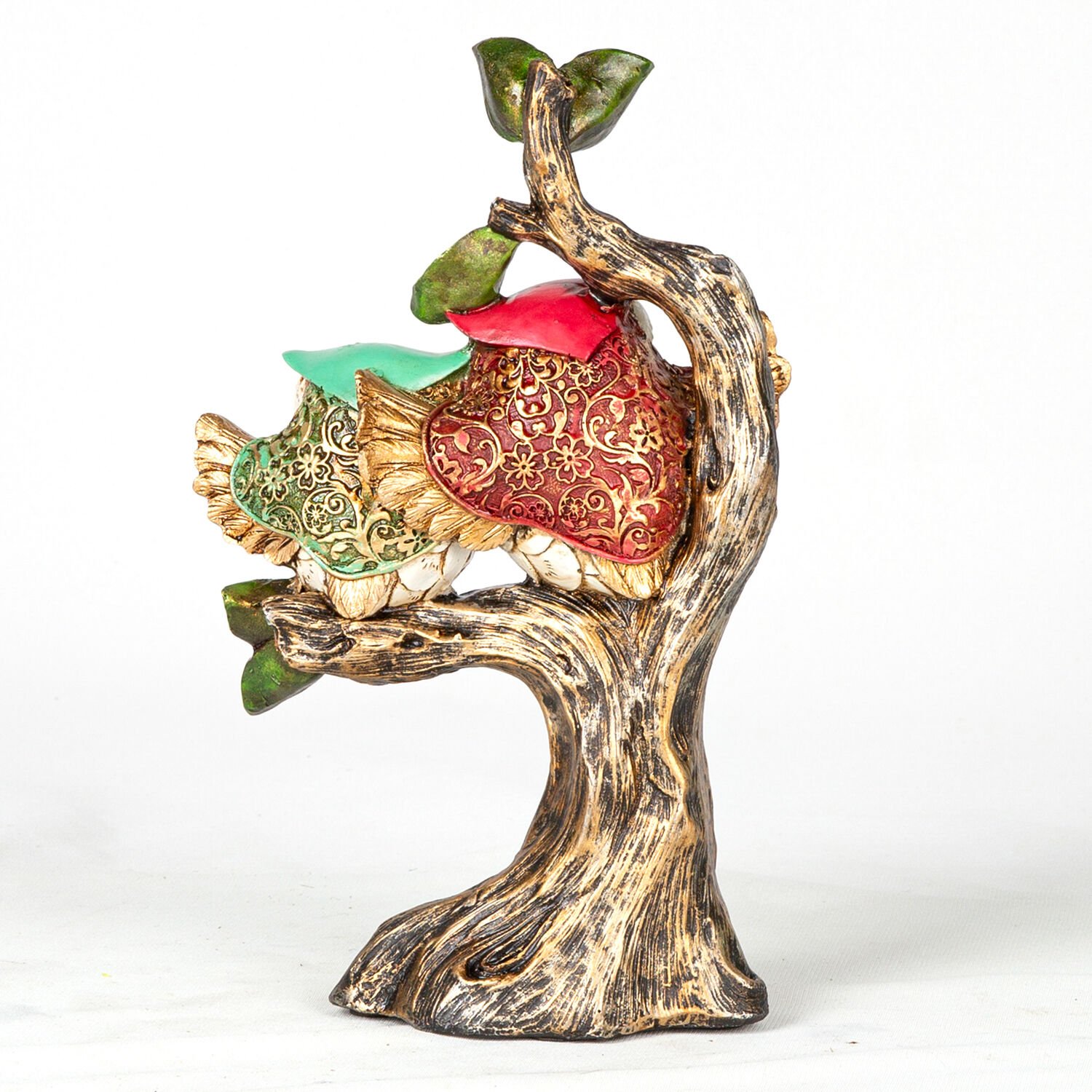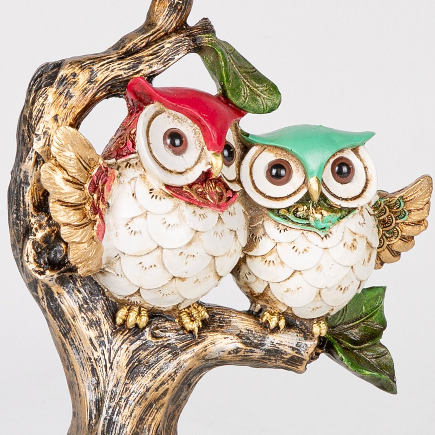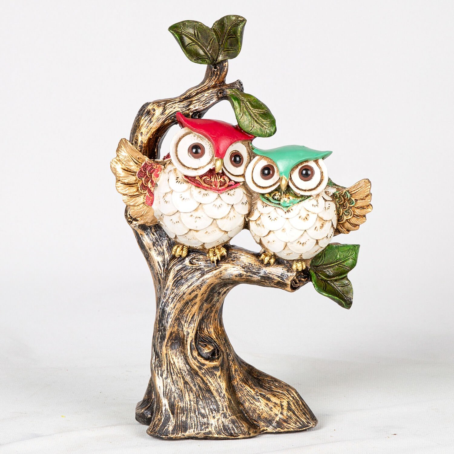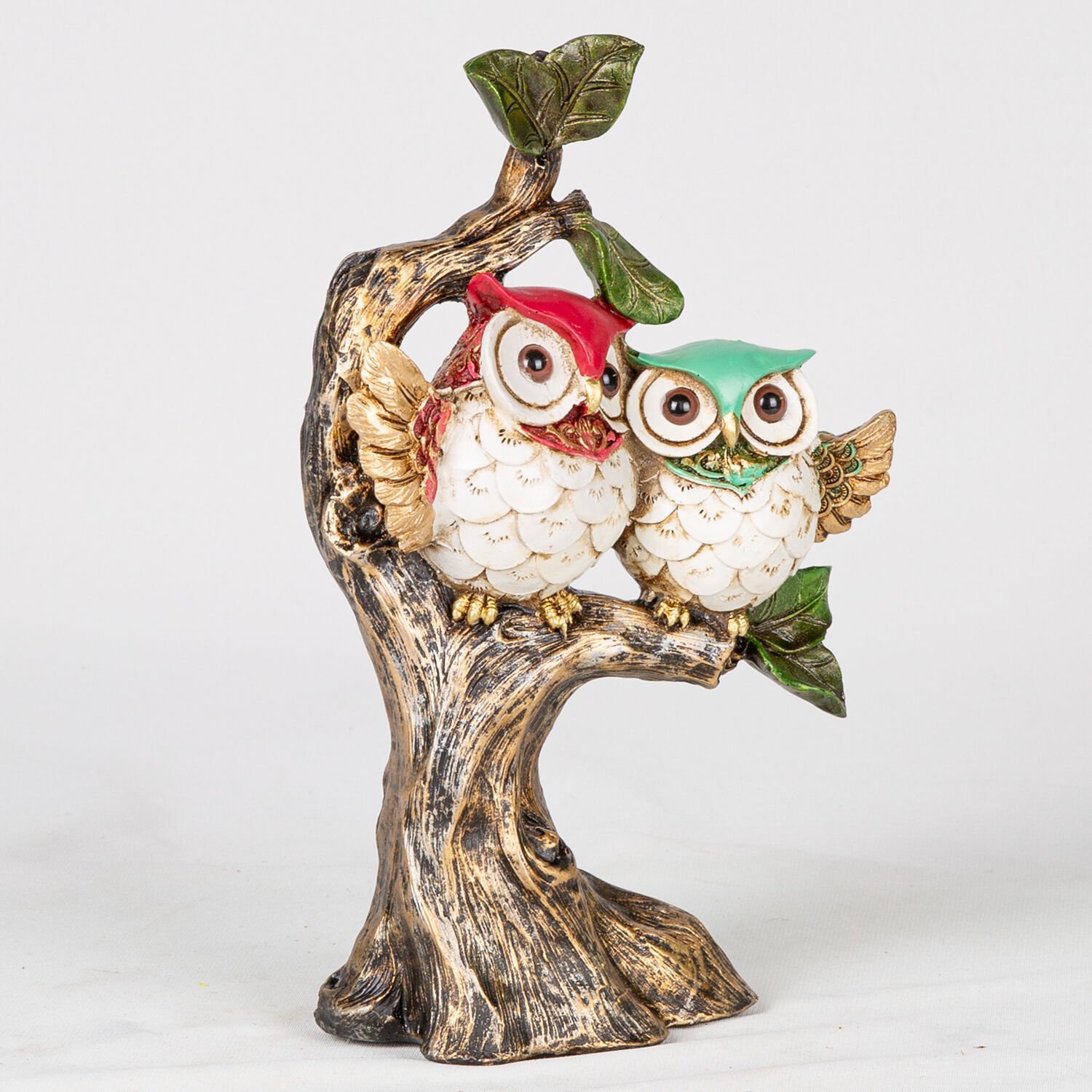 Biblo, Ağaçta Oturan Baykuşlar, Altın Eskitme-Beyaz - 16x26x7 cm
