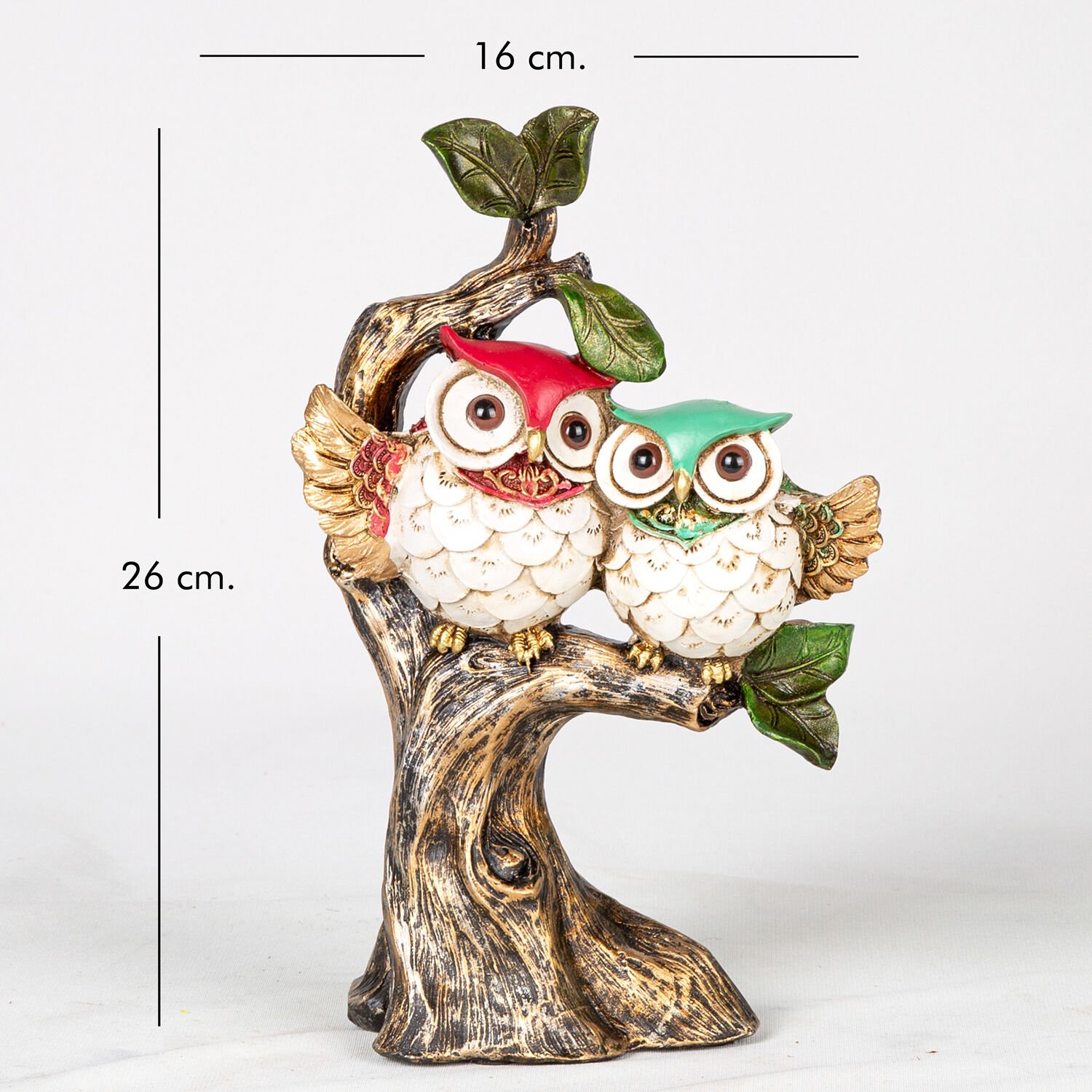 Biblo Ağaçta Oturan Baykuşlar Altın Eskitme-Beyaz 16x26x7 Cm.
