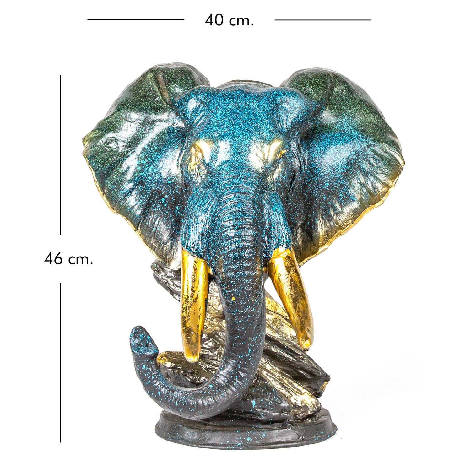 Biblo, Büyük Dişli Afrika Fil Büst, Mavi - 40x46x34 cm