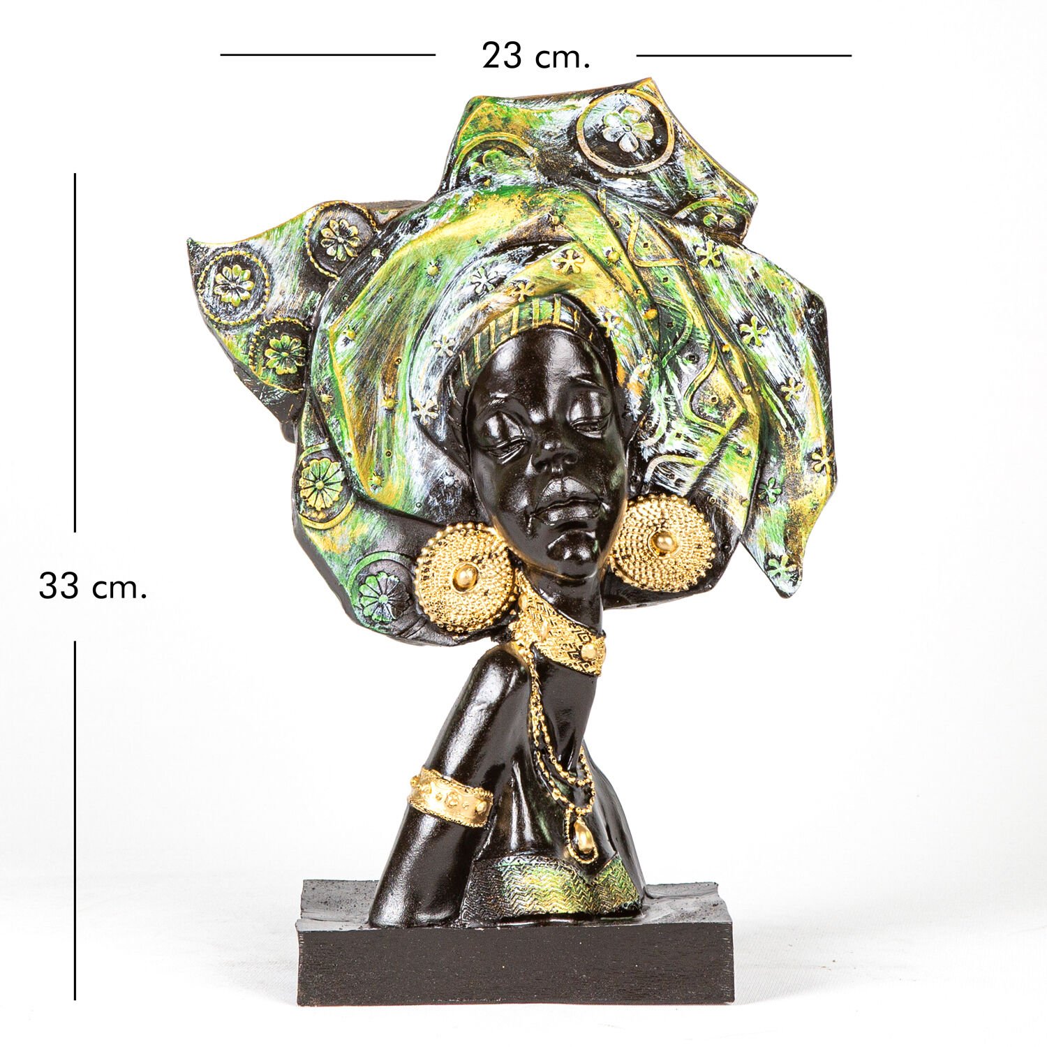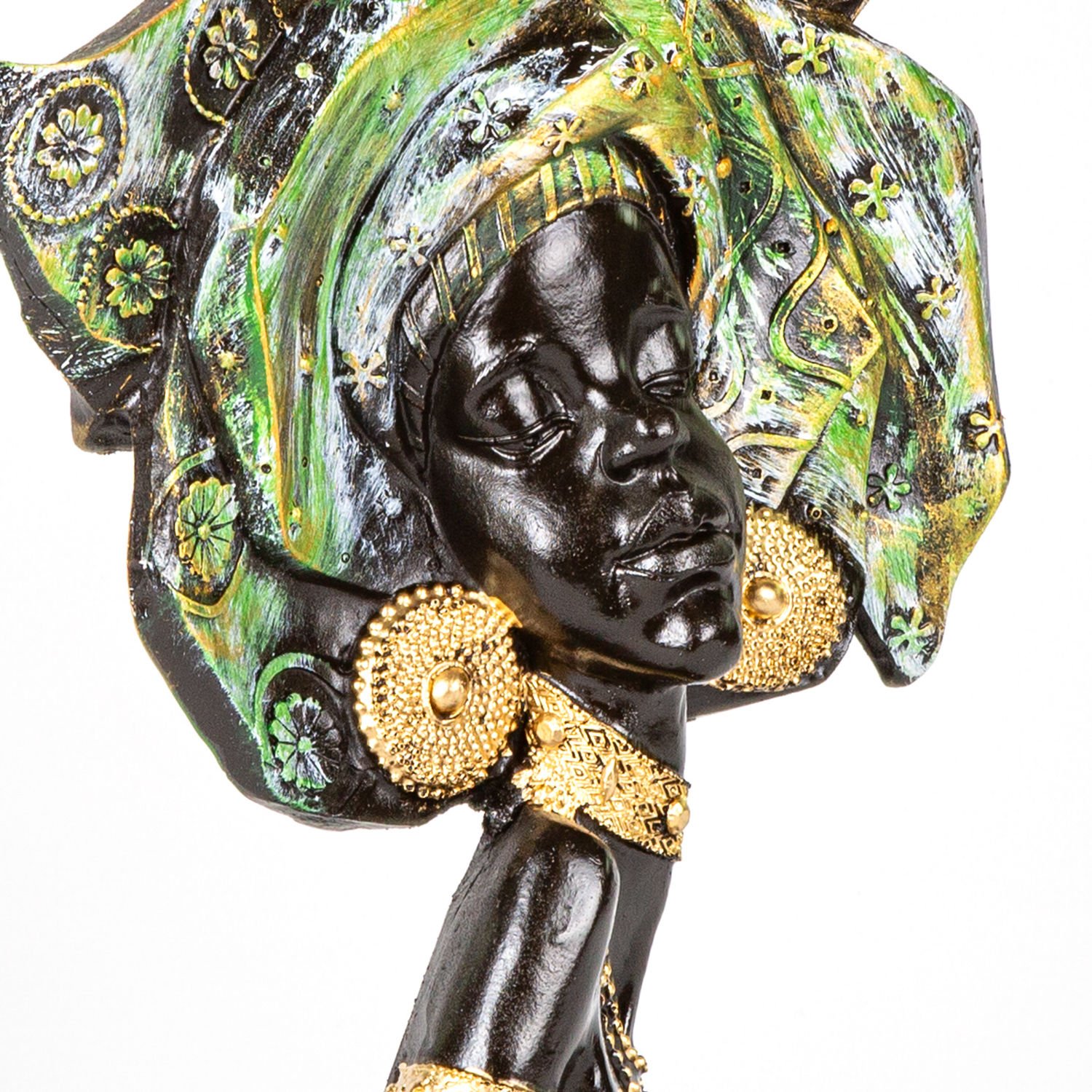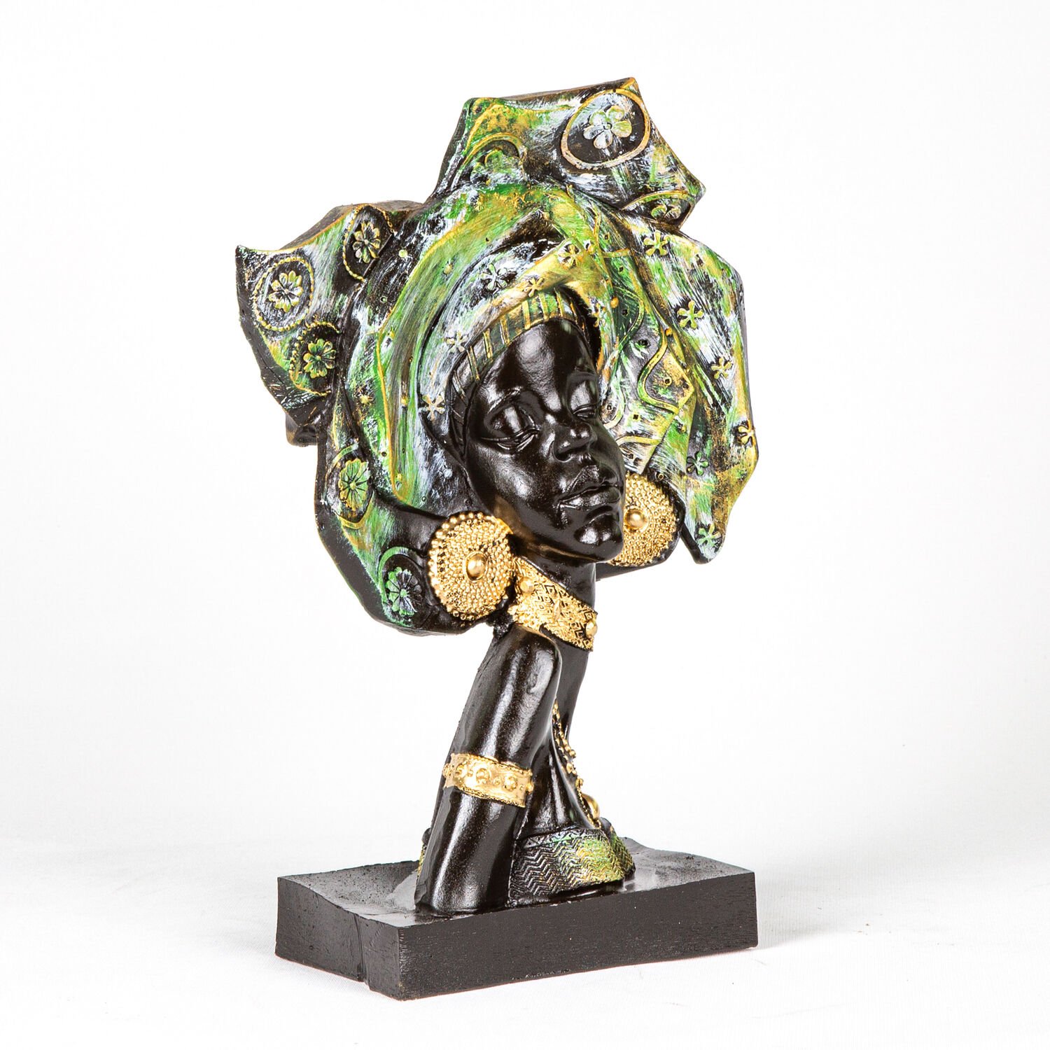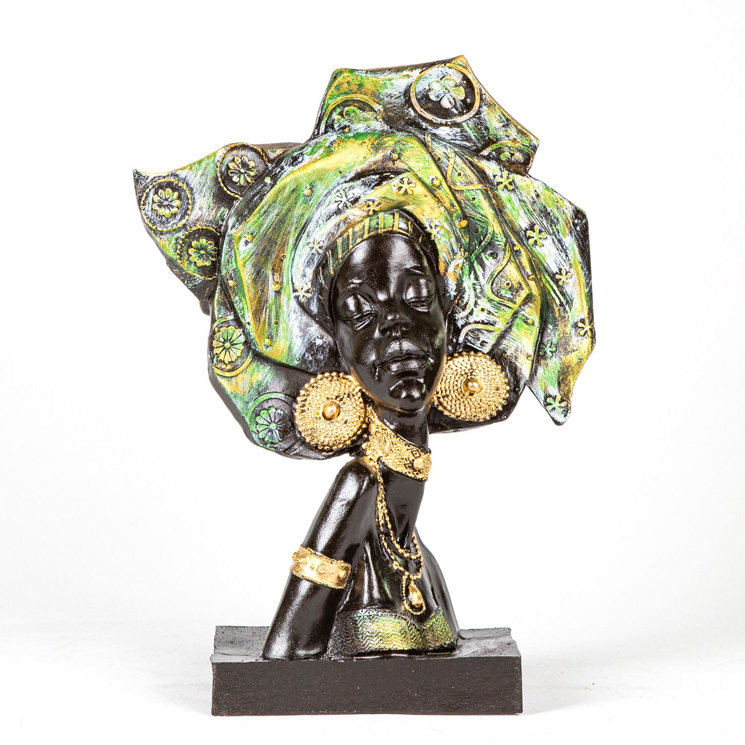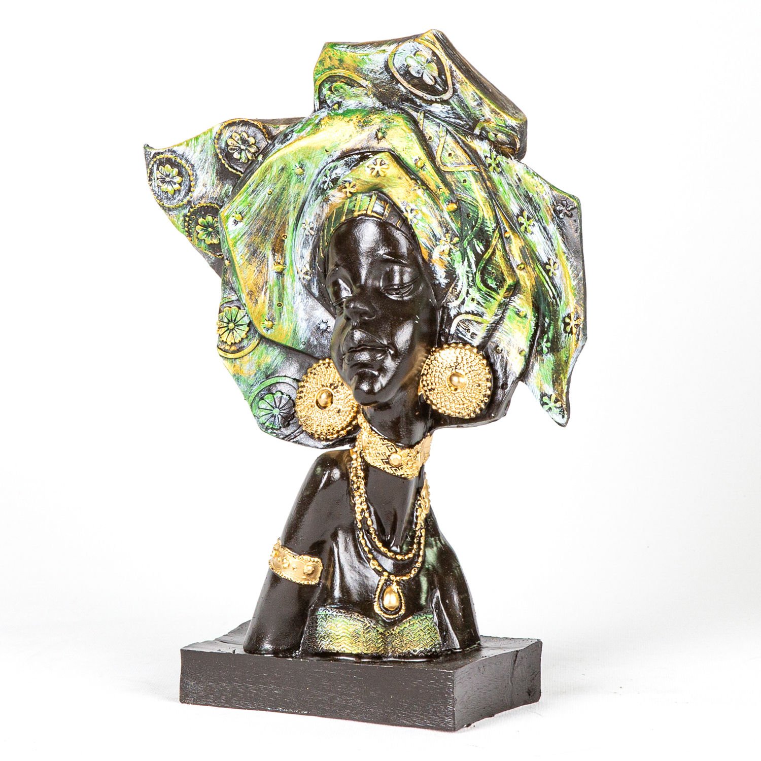 Biblo, Düz Bakan Otantik Afrikalı Kız, Yeşil - 23x33x9 cm
