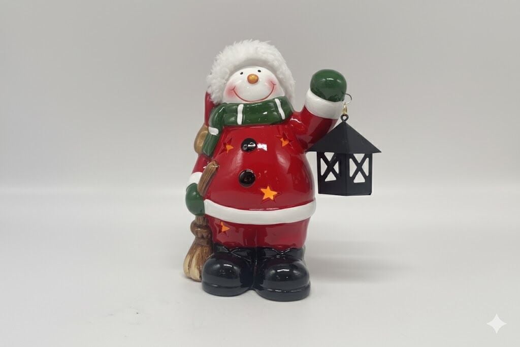 Biblo, Kardan Adam - Işıklı, Fenerli, Seramik, Yılbaşı Dekoru