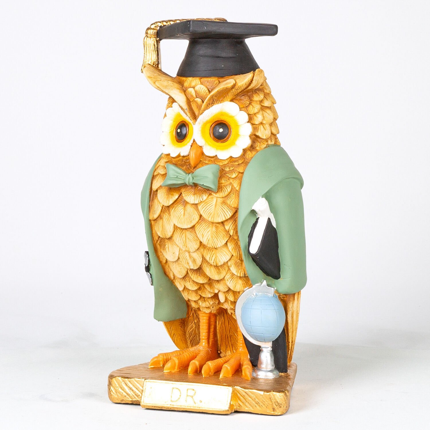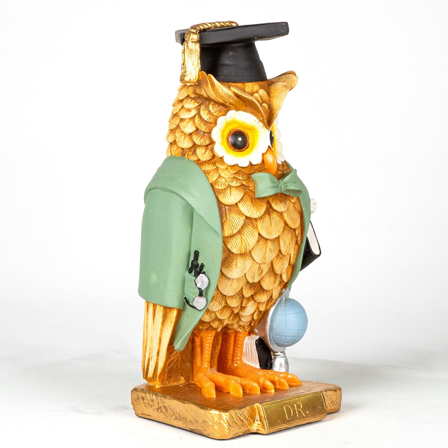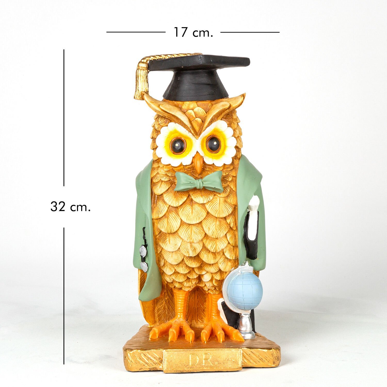 Biblo, Mezun Baykuş, Yeşil Ceketli, Gold - 17x32x14 cm