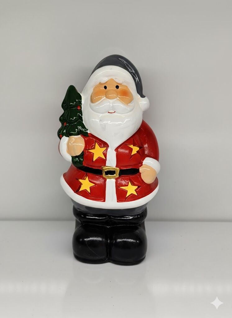 Biblo, Noel Baba, Seramik, Yıldız Delikli Model - Işıklı, Ağaç Figürlü