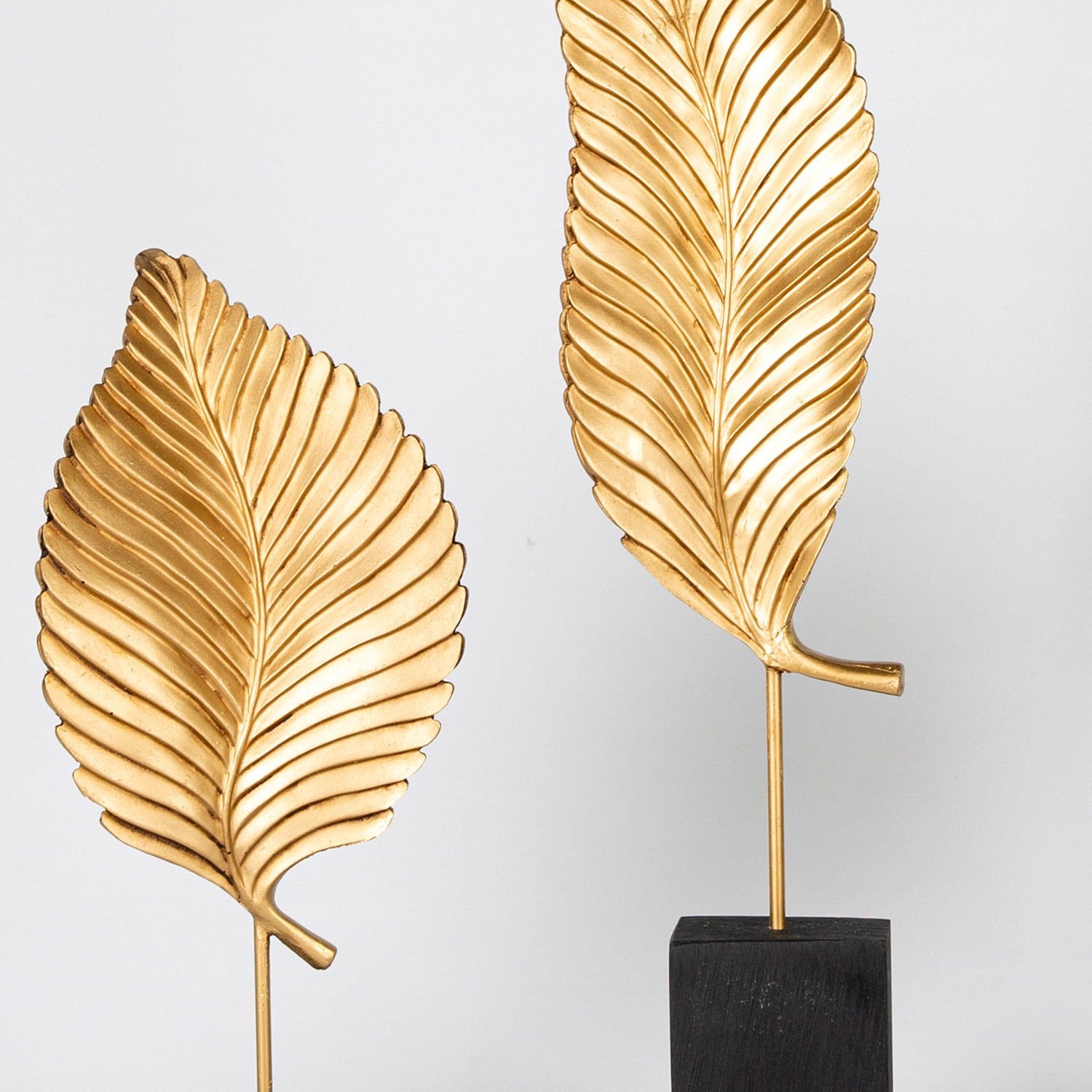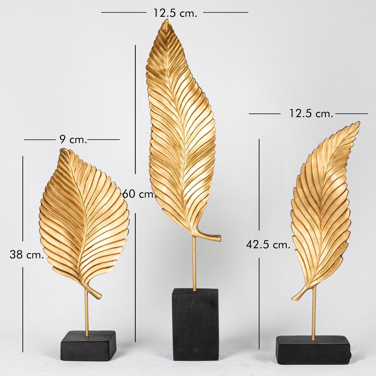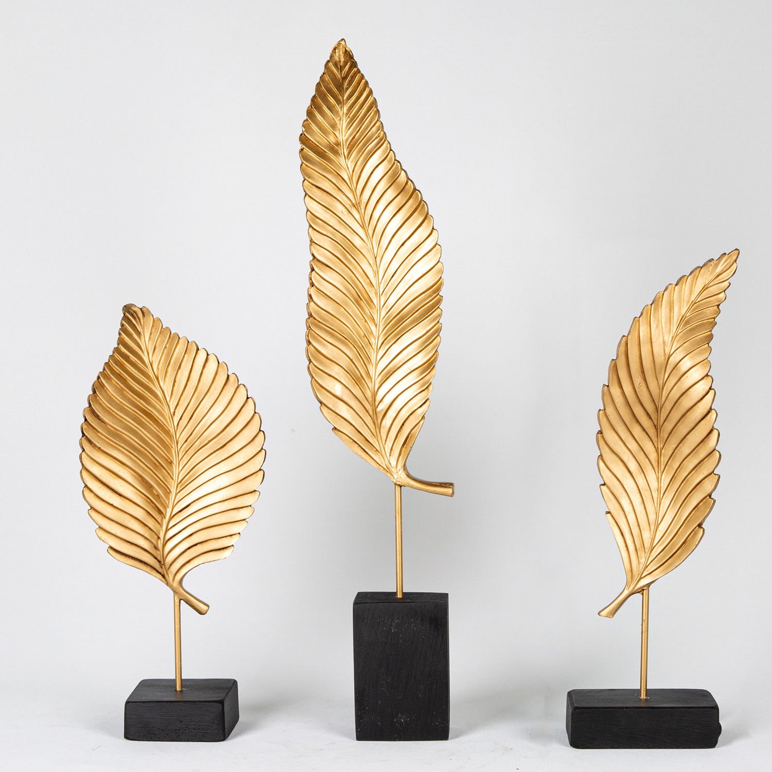 Siyah Kaideli Yaprak Figürlü Varaklı Biblo 3'lü Set Altın