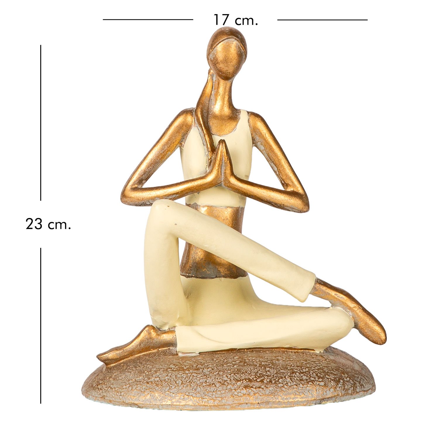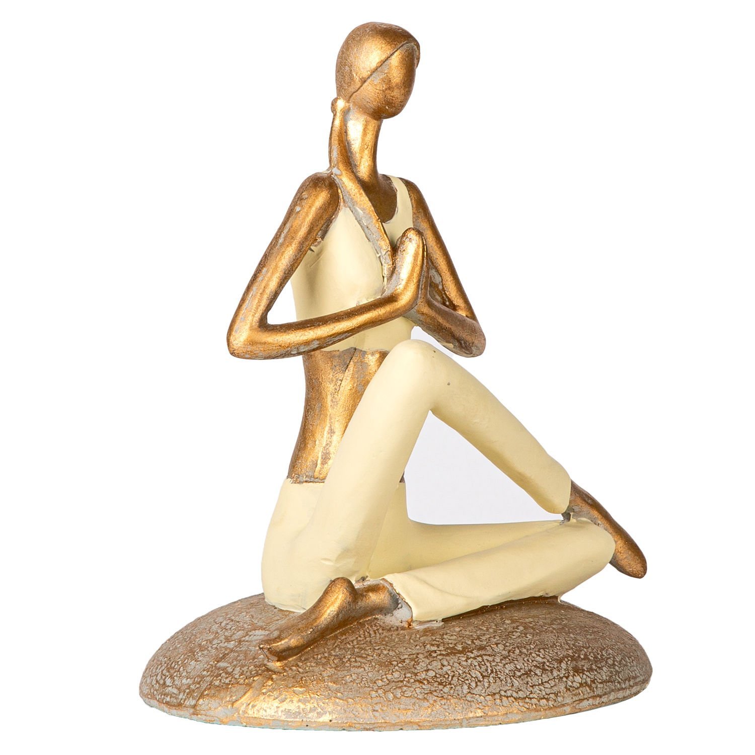 Biblo Taş Zemin Üzerinde Yoga Yapan Kadın Krem-Gold 17x23x15 Cm.