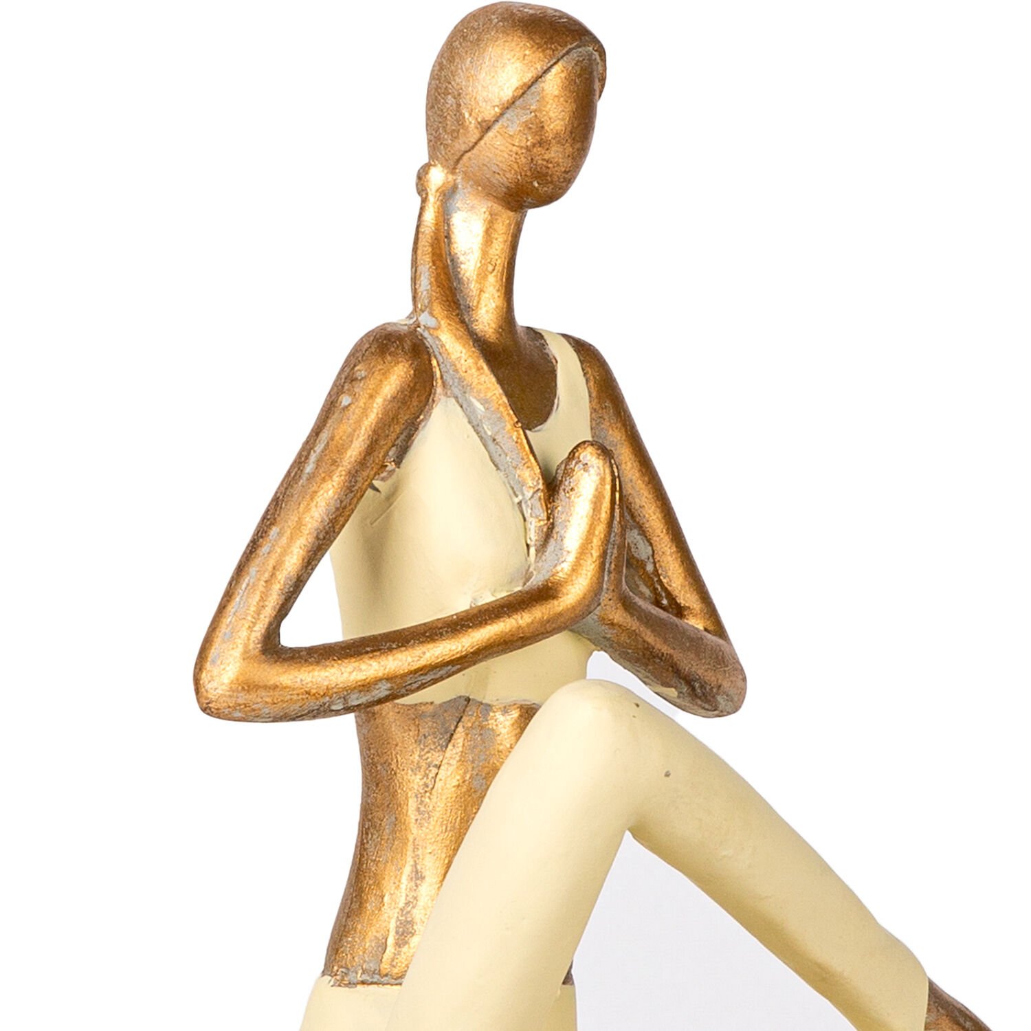 Biblo, Taş Zemin Üzerinde Yoga Yapan Kadın, Krem-Gold - 17x23x15 cm