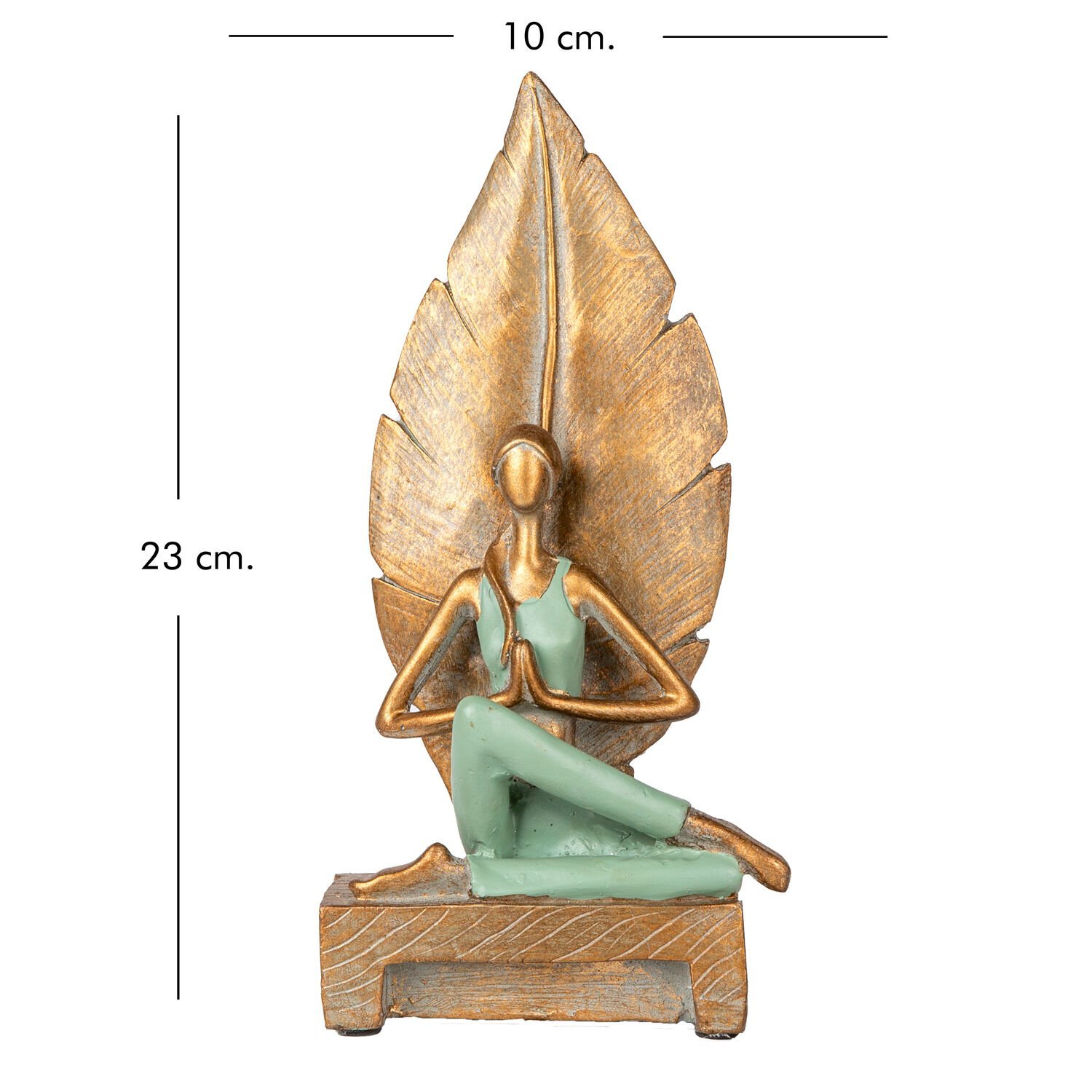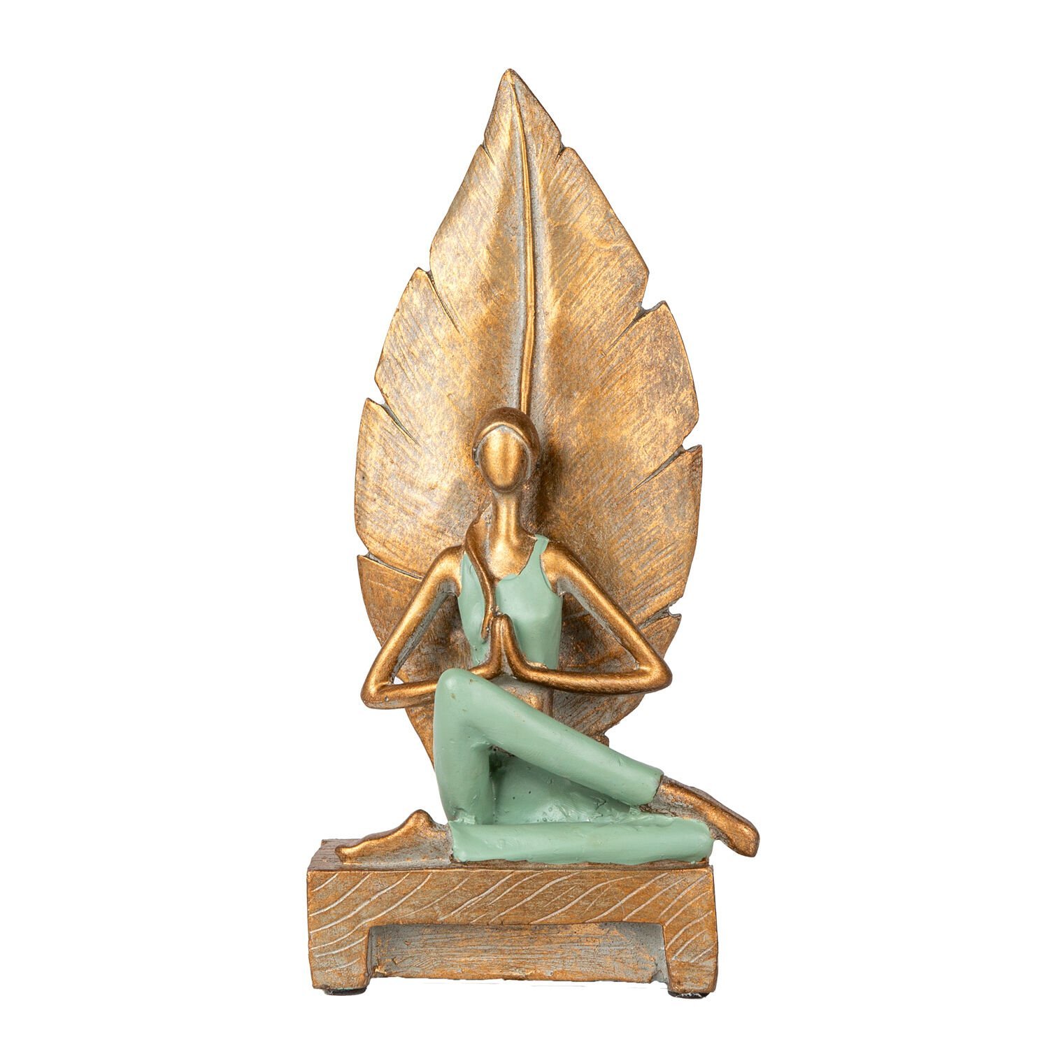 Biblo Yaprak Detaylı Bank Üzerinde Yoga Yapan Kadın Gold-Yeşil 10x23x6,5 Cm.