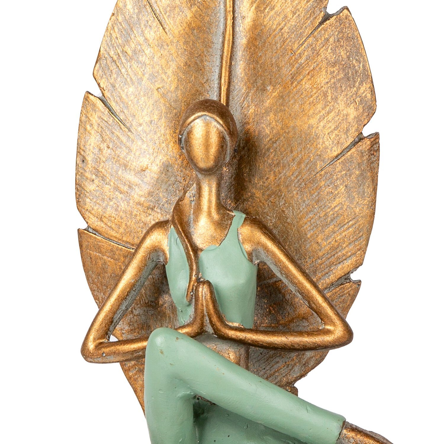 Biblo, Yaprak Detaylı Bank Üzerinde Yoga Yapan Kadın, Gold-Yeşil - 10x23x6,5 cm