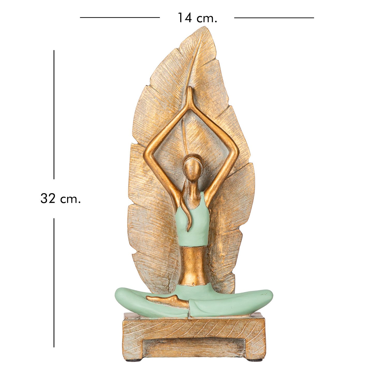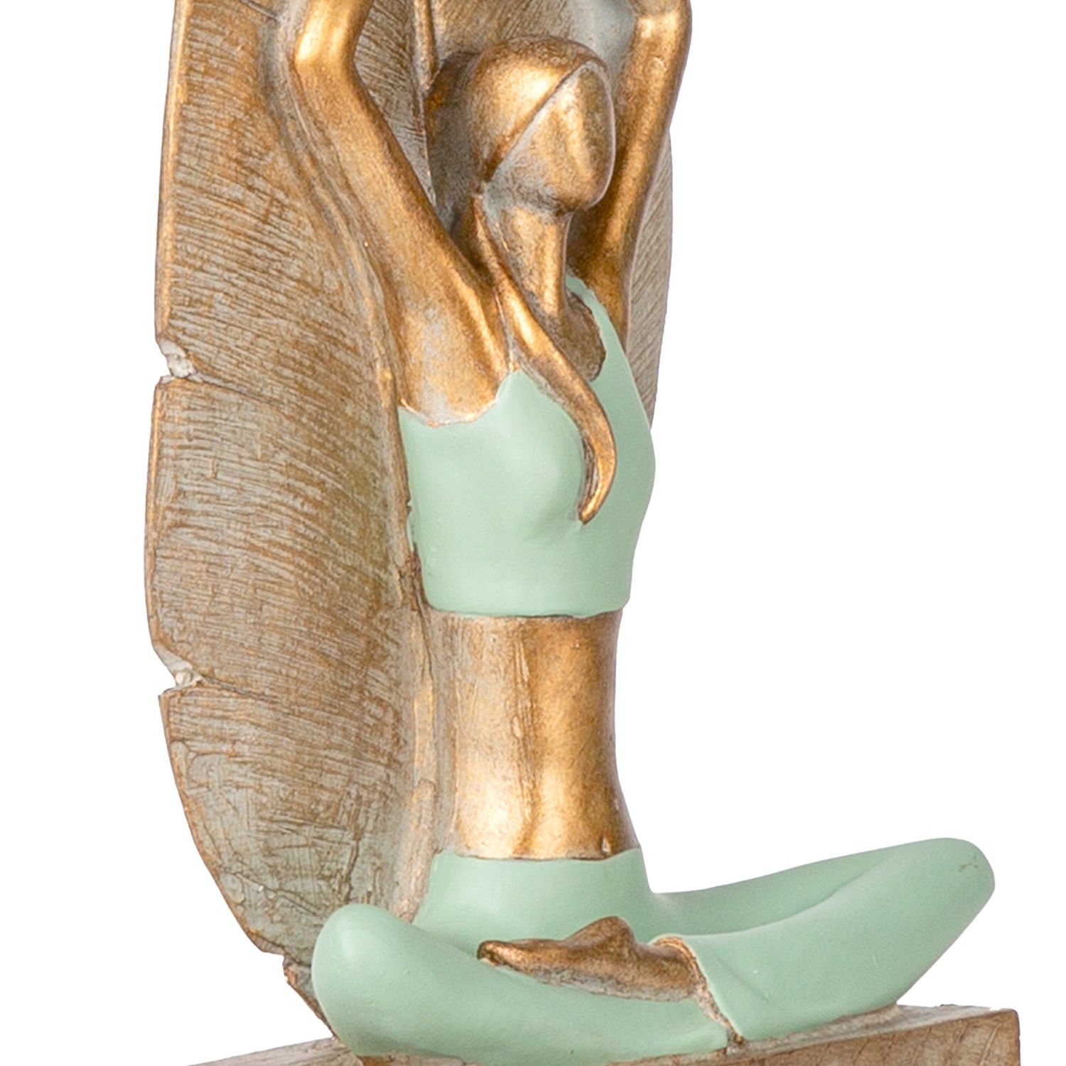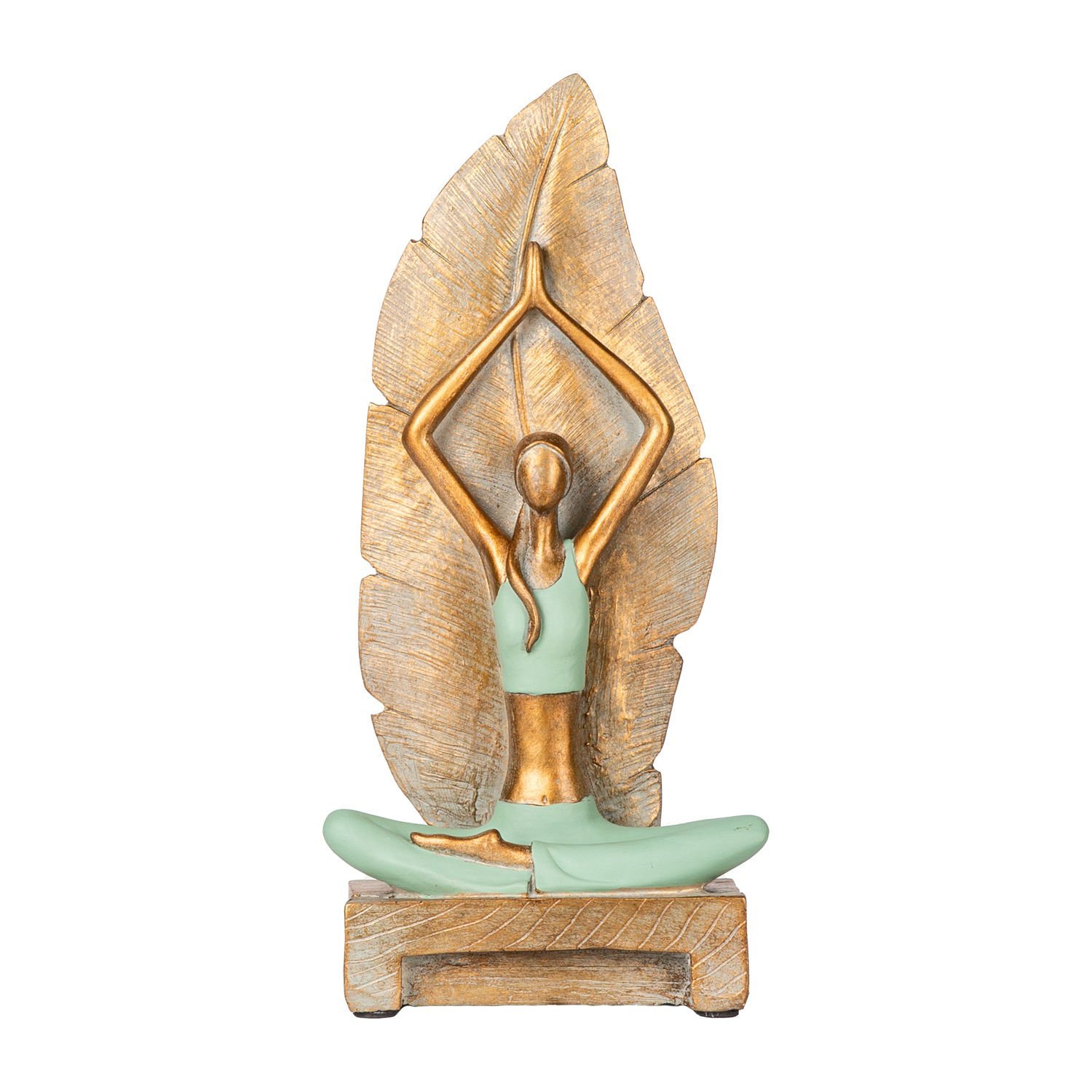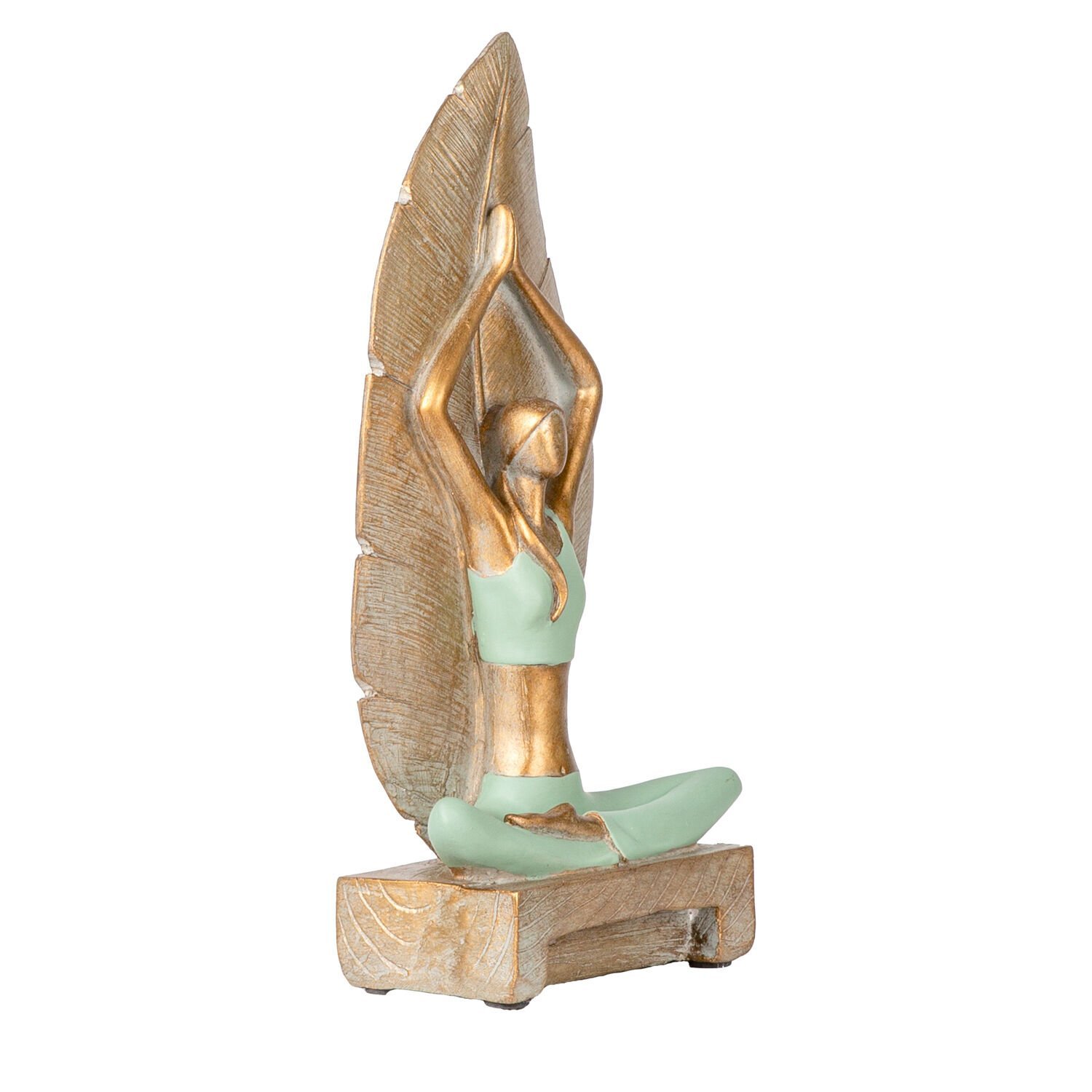 Biblo, Yaprak Detaylı Yoga Yapan Kadın, Gold-Yeşil - 14x32x7 cm