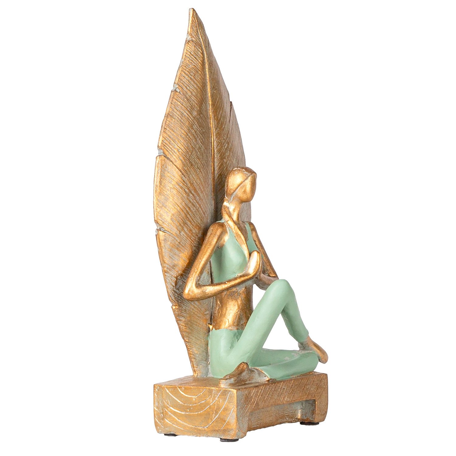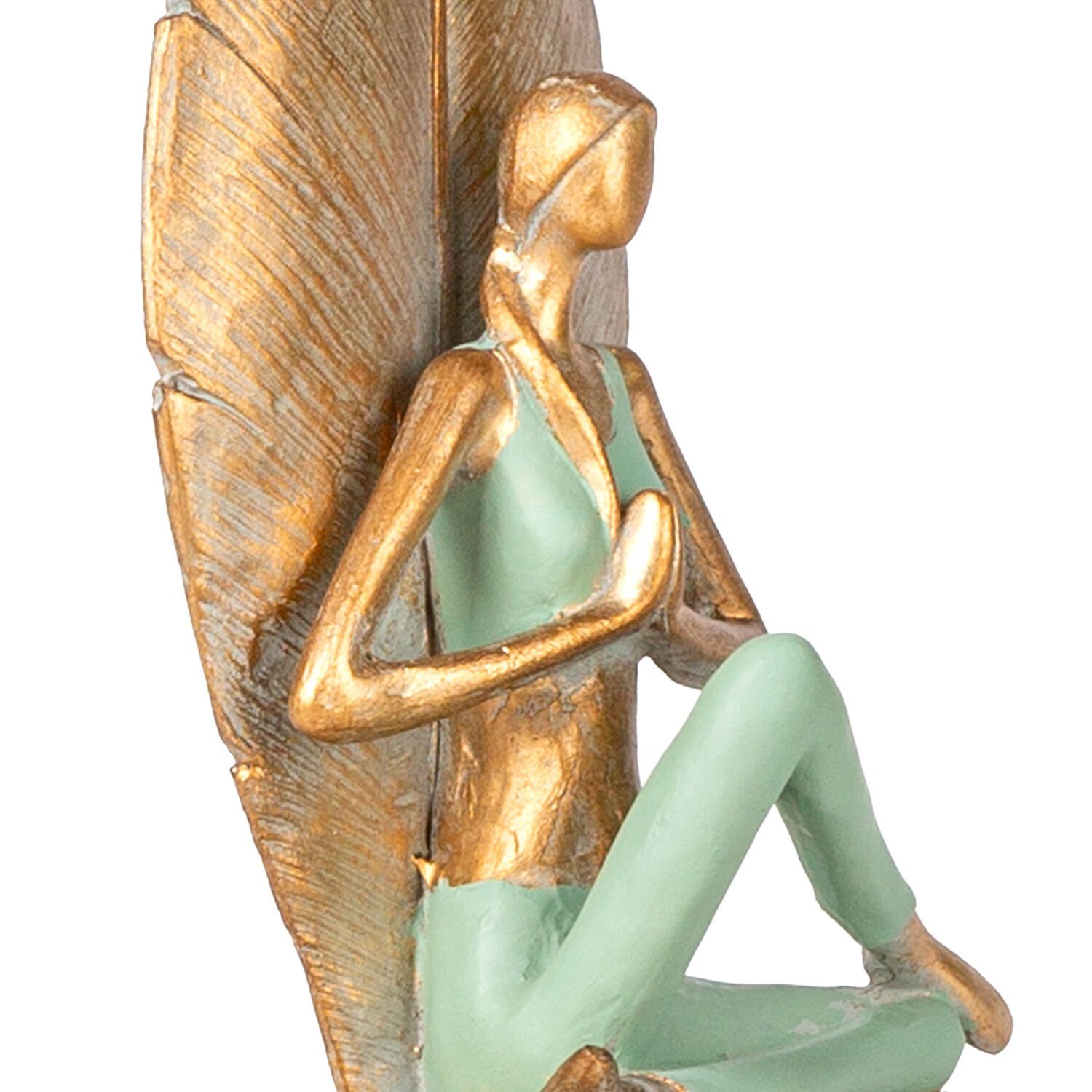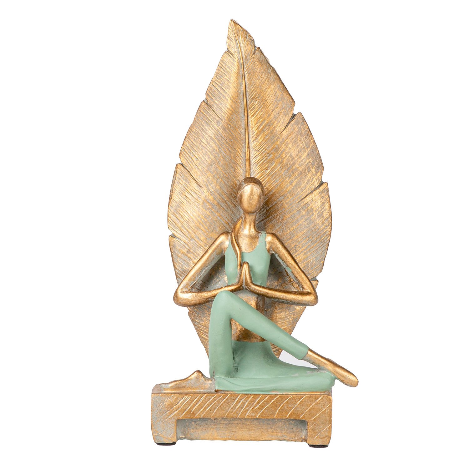 Biblo, Yaprak Detaylı Yoga Yapan Kadın, Yeşil-Gold - 13x31x7 cm