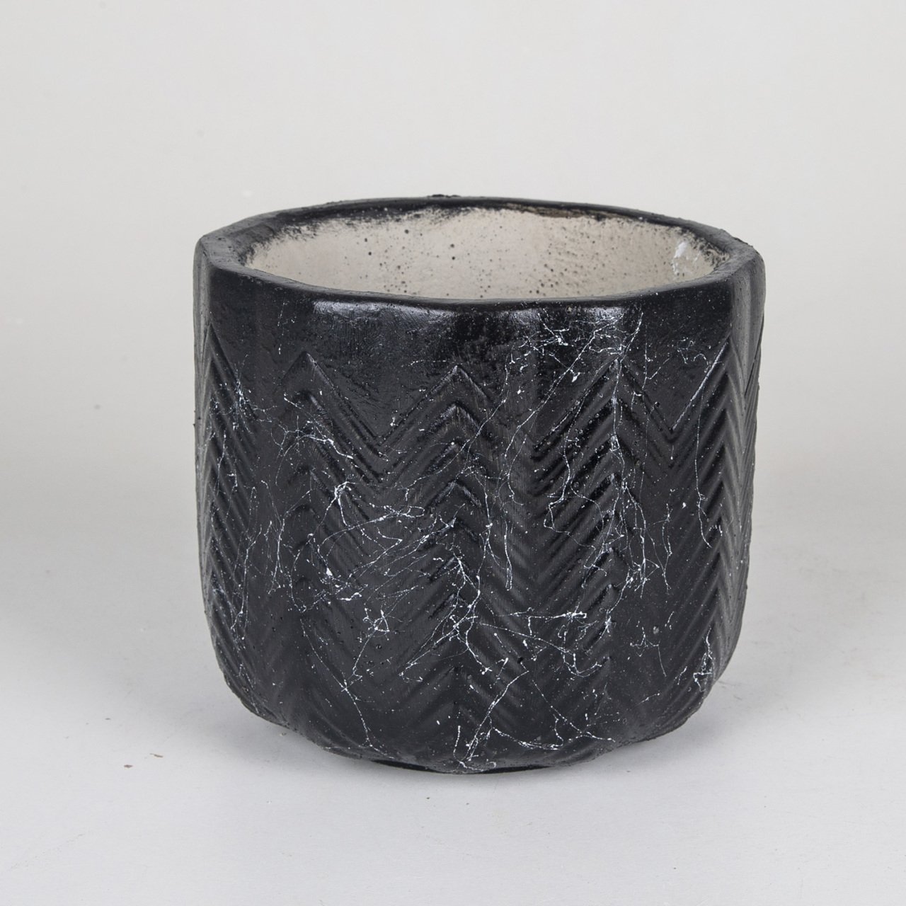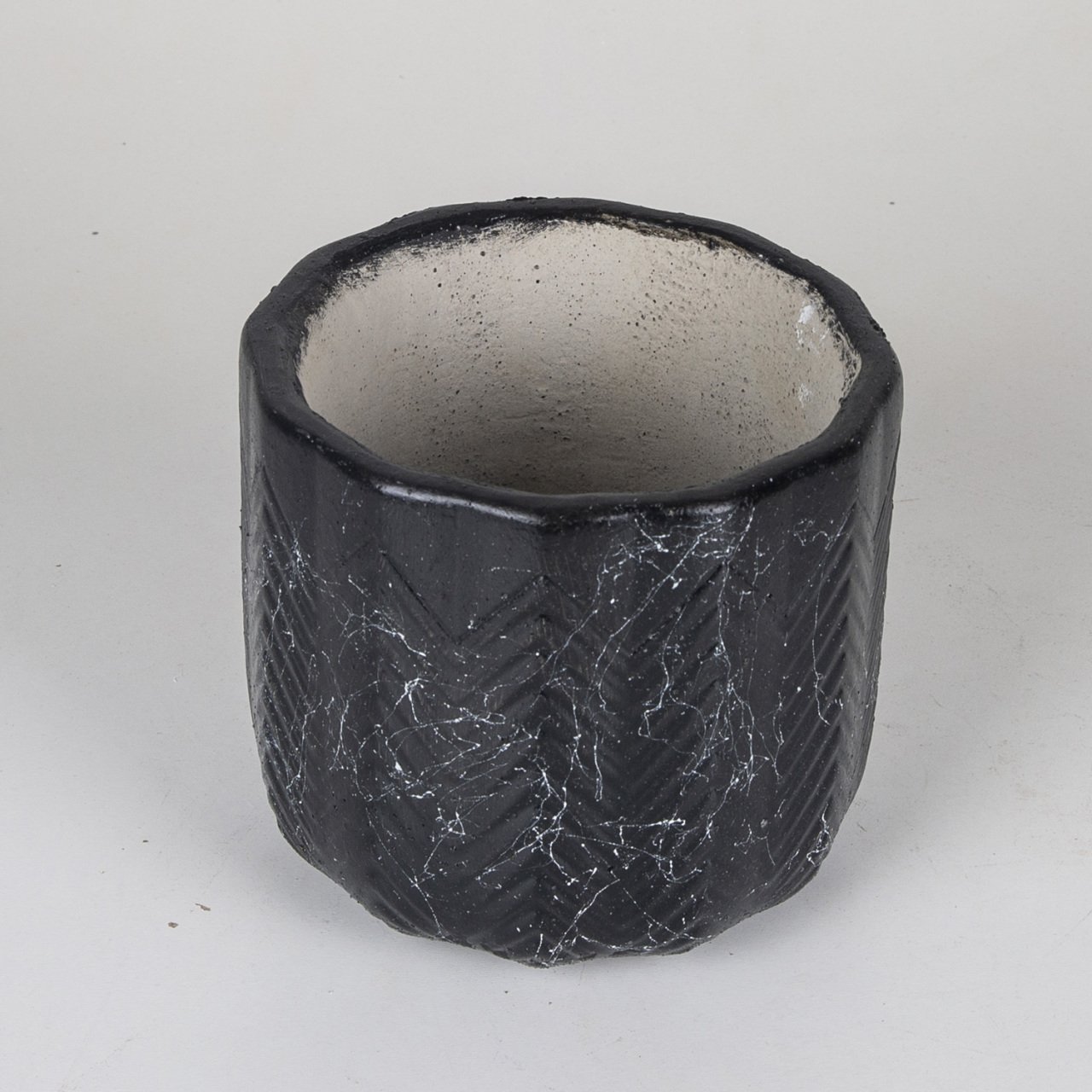 Çam Motifli Mermer Desen Siyah Beton Saksı 2 Lt