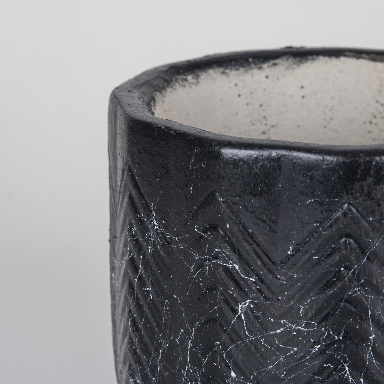 Çam Motifli Mermer Desen Siyah Beton Saksı 2 LT