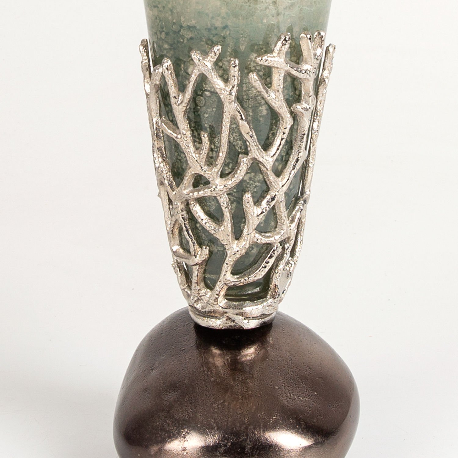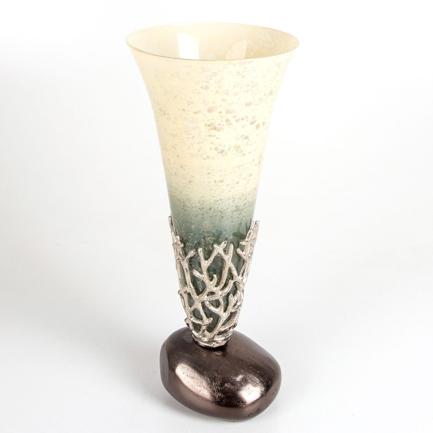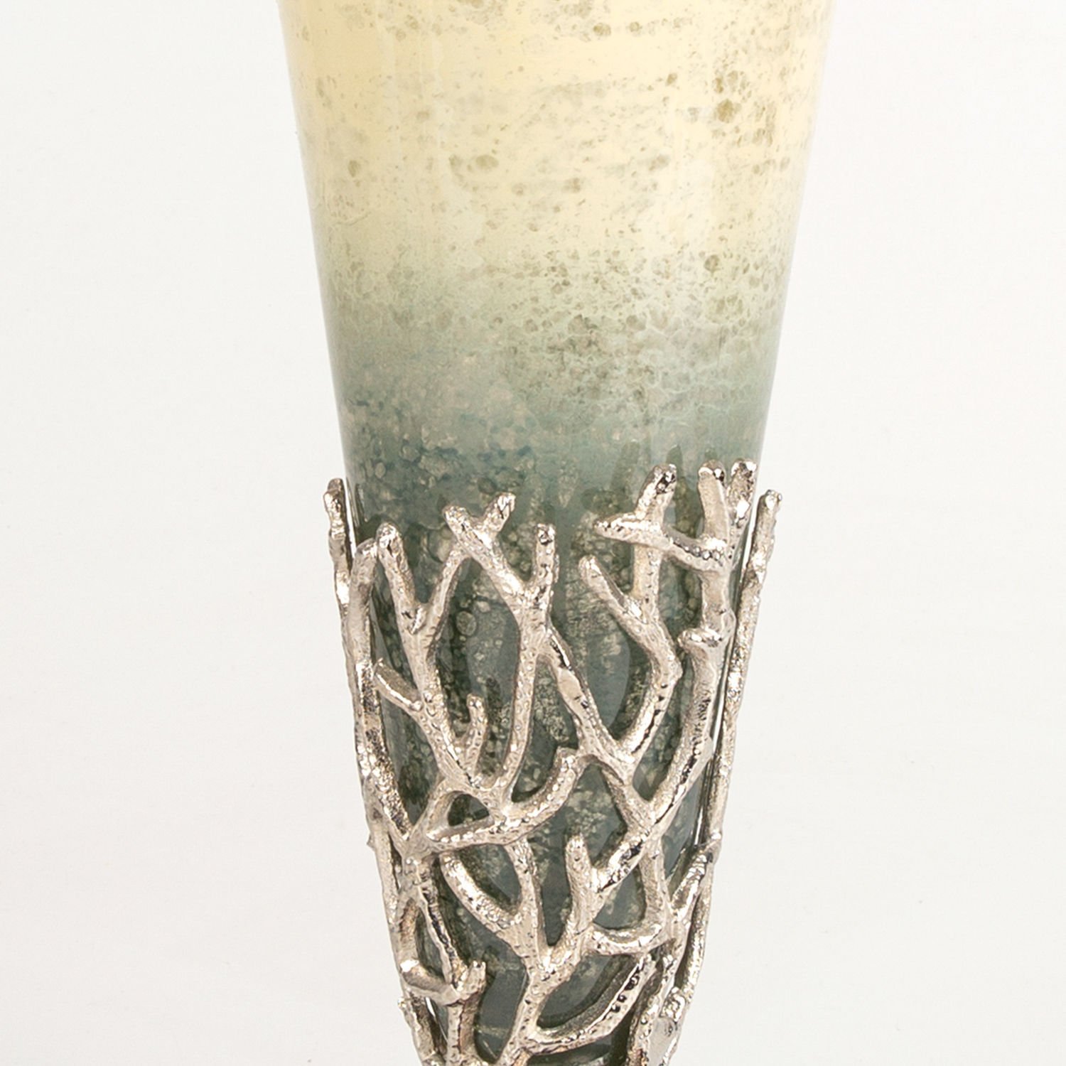 Cam Vazo, Metal Mercan Kılıflı, Krem-Gri - 17x40,5x17 cm